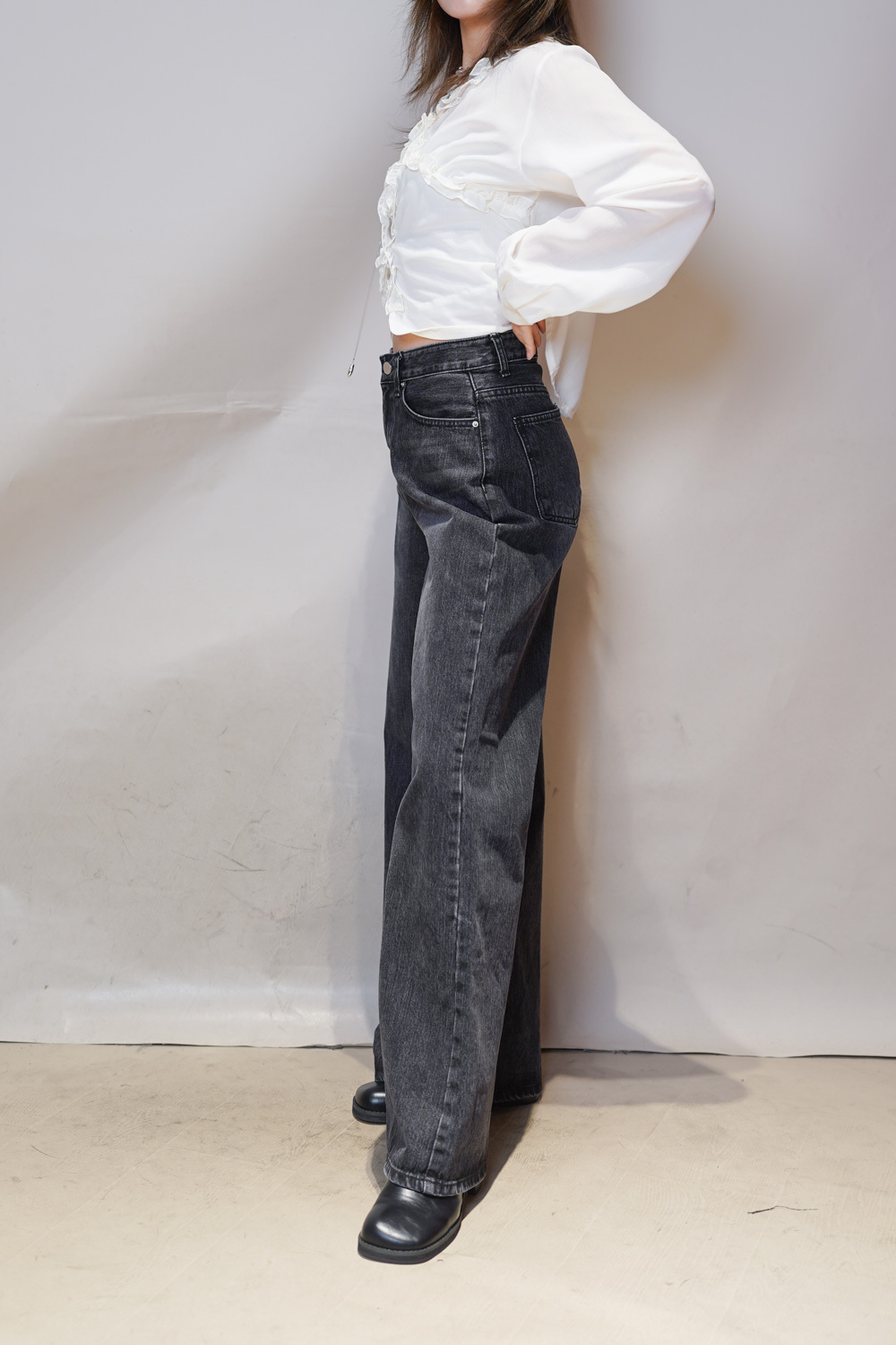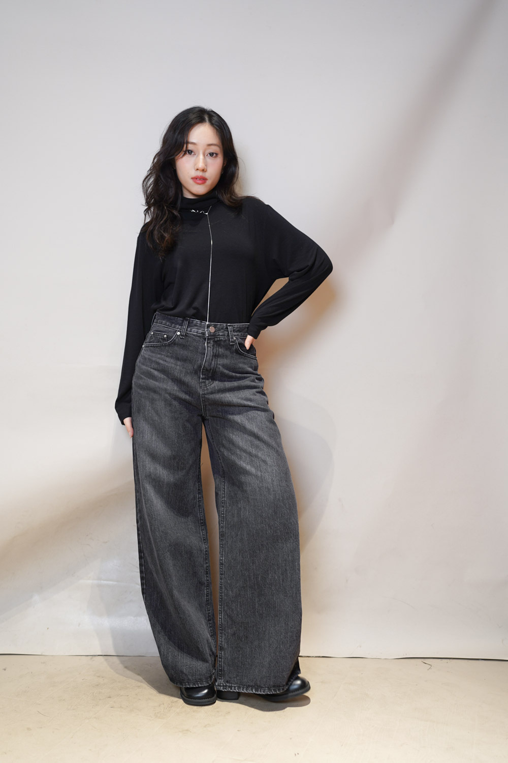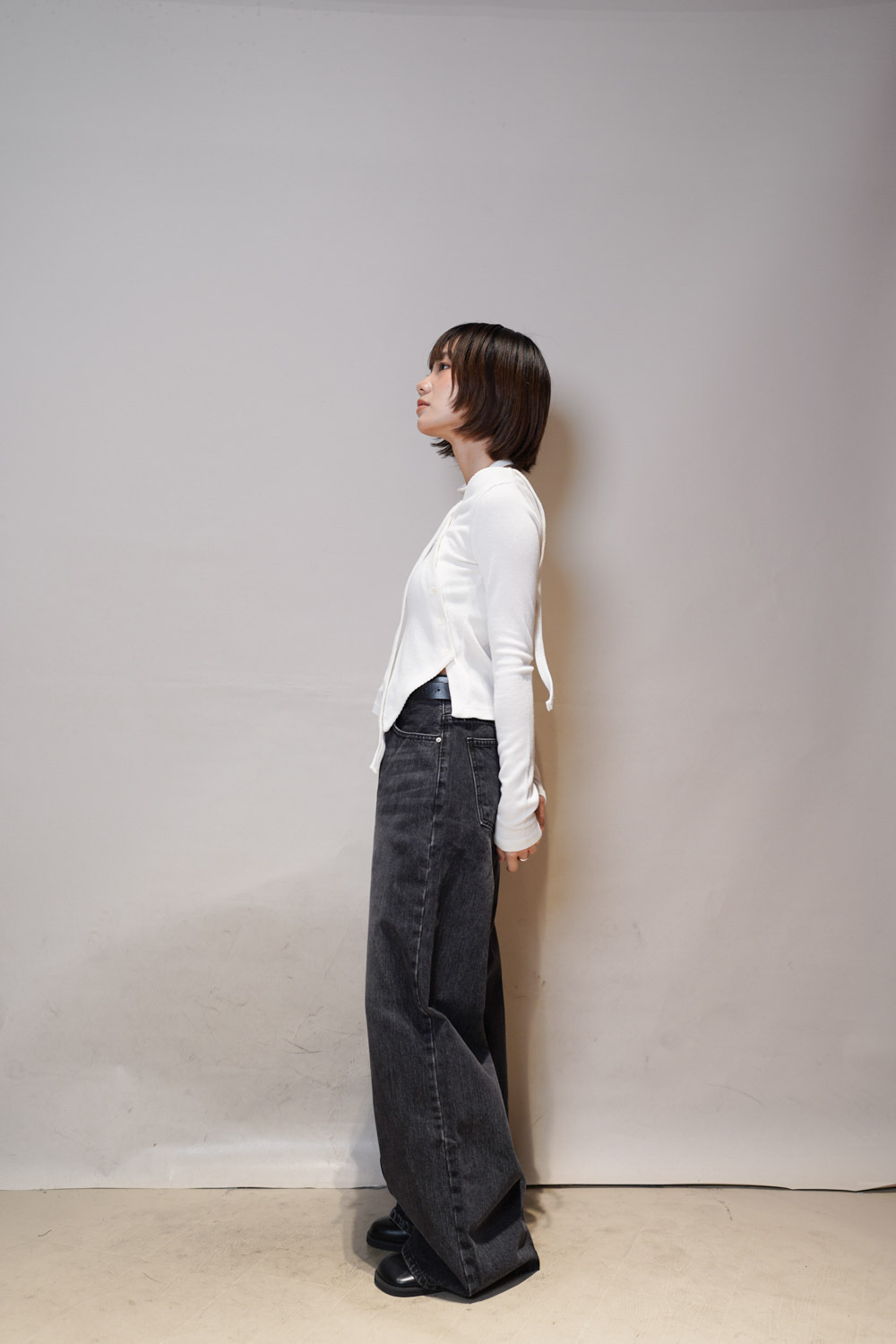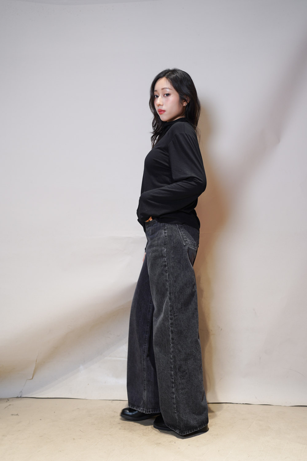 M: Waist: 72cm (28.5”) / Hip: 100cm (40”) / Rise: 33cm / Thigh: 64cm / Hem: 62cm / Length: 106cm