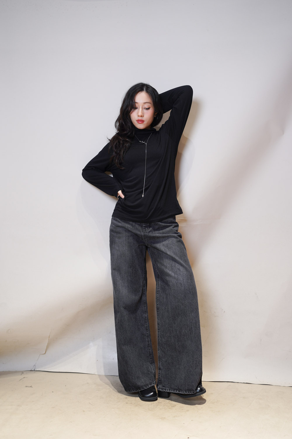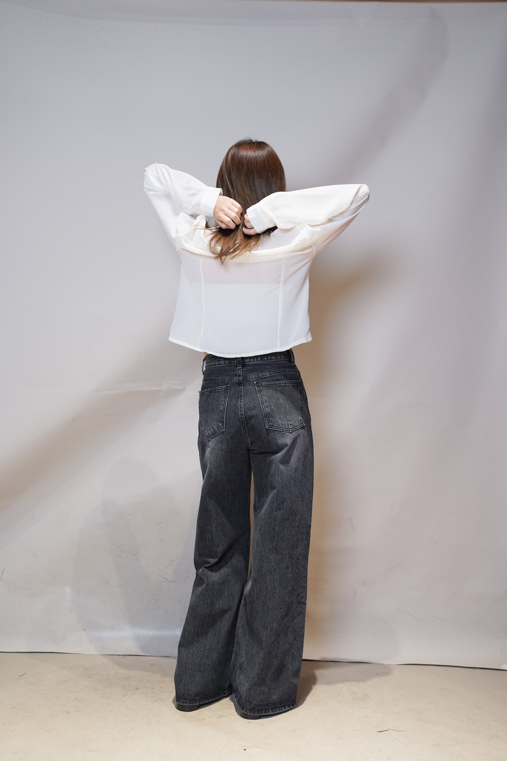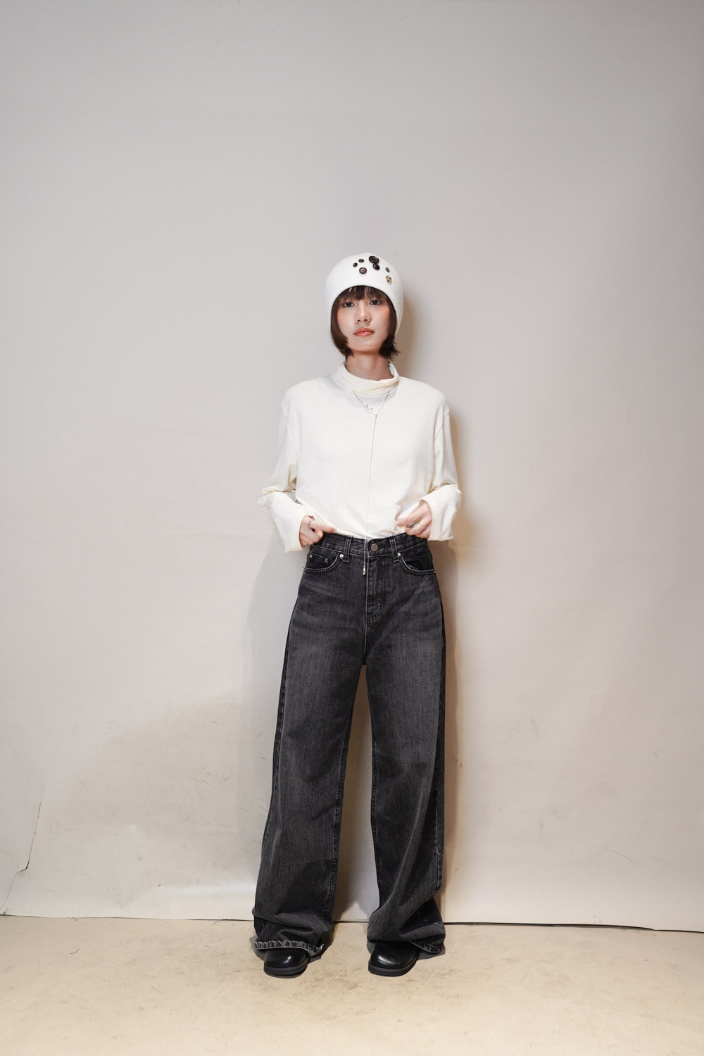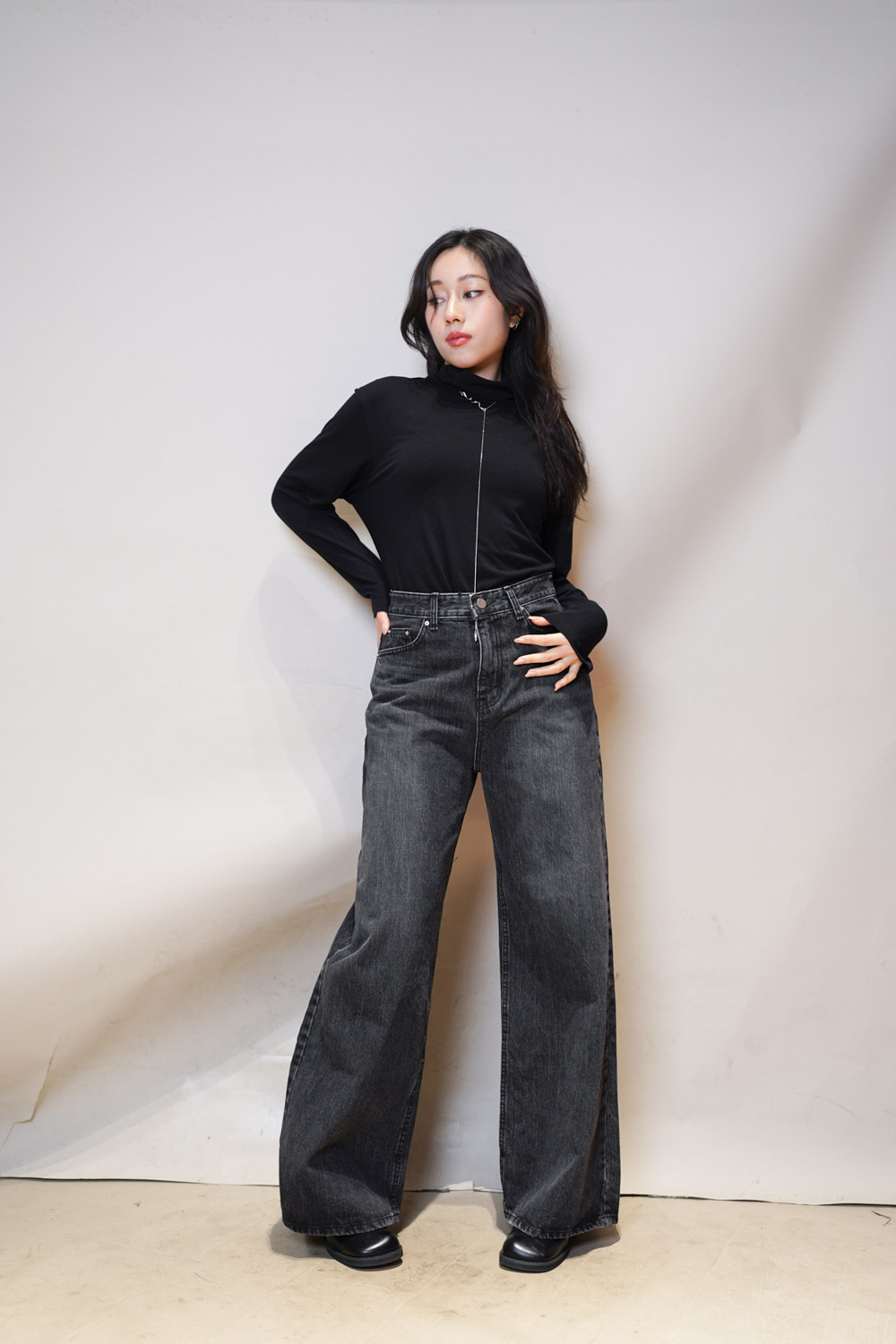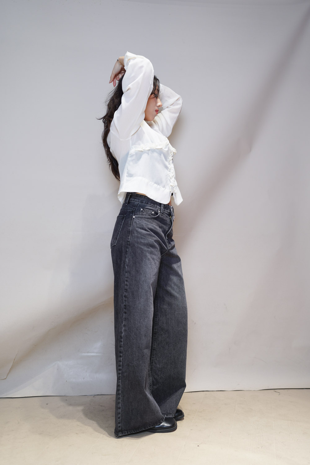 M: Waist: 72cm (28.5”) / Hip: 100cm (40”) / Rise: 33cm / Thigh: 64cm / Hem: 62cm / Length: 106cm