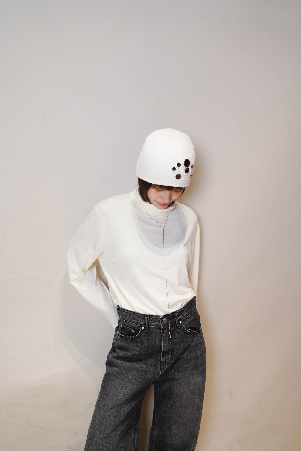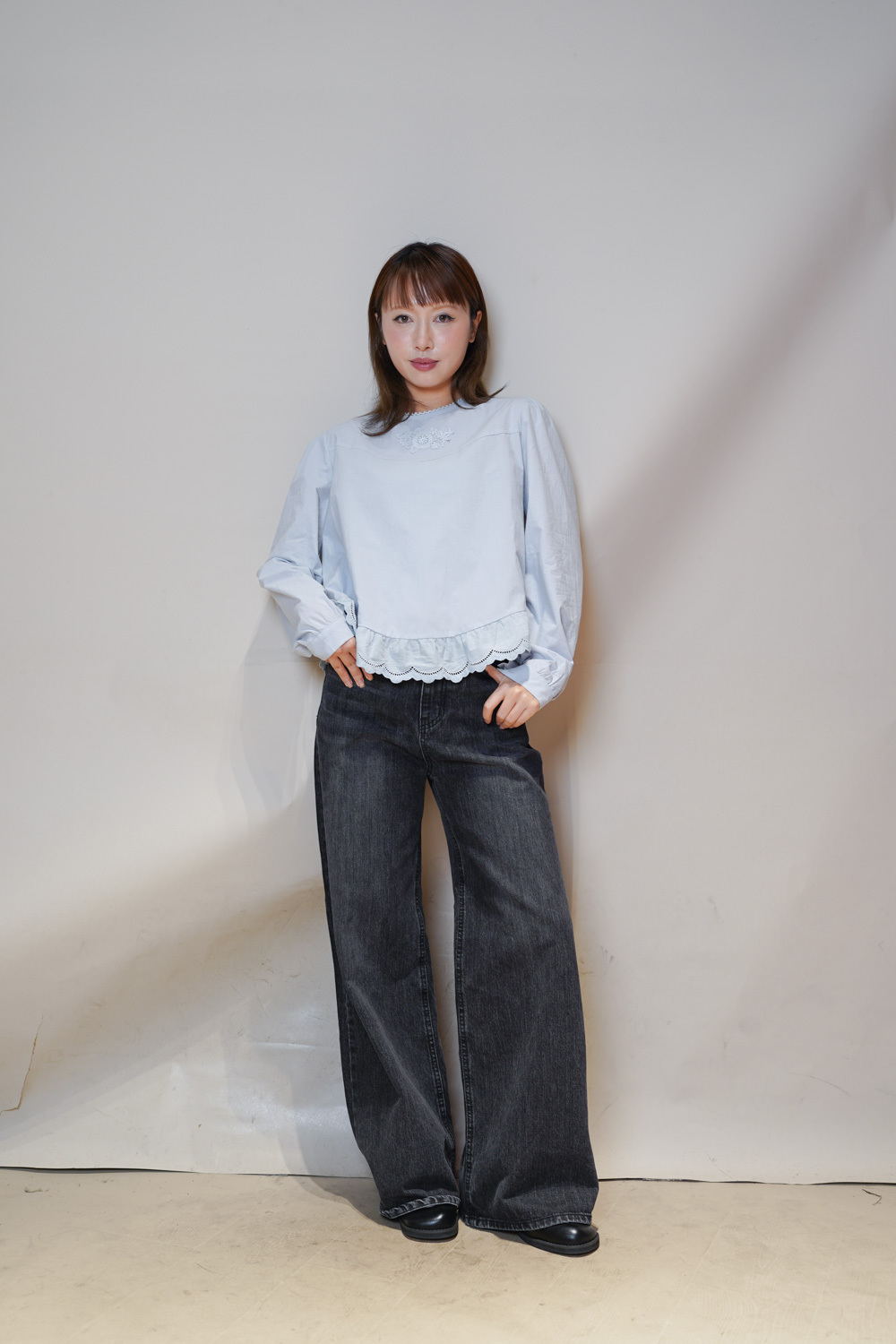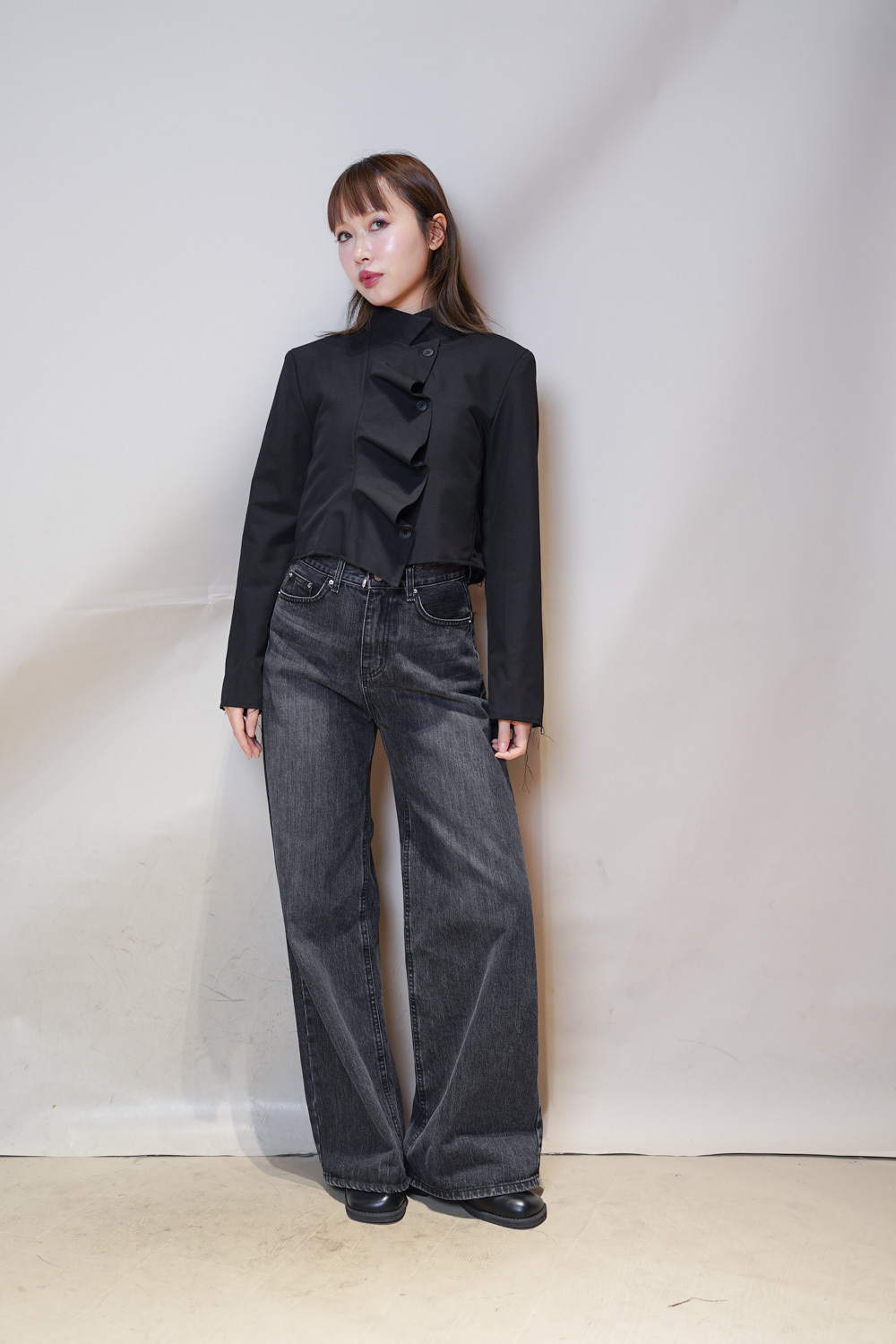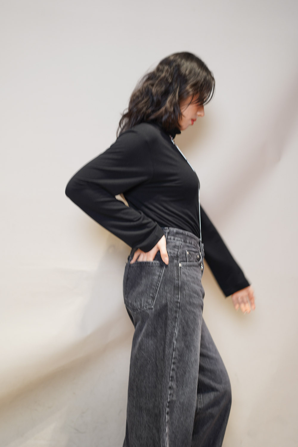M: Waist: 72cm (28.5”) / Hip: 100cm (40”) / Rise: 33cm / Thigh: 64cm / Hem: 62cm / Length: 106cm