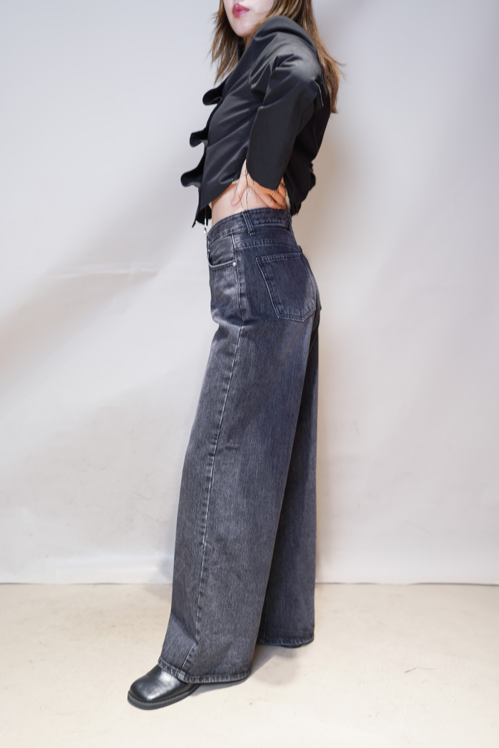 S: Waist: 70cm (26”) / Hip: 96cm (38”) / Rise: 32cm / Thigh: 62cm / Hem: 60cm / Length: 105cm
