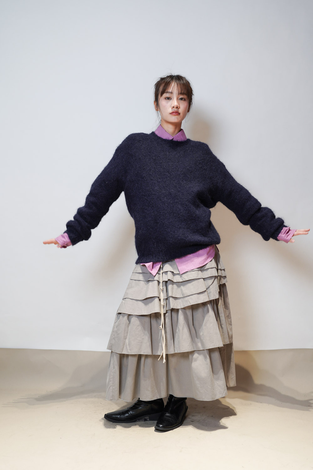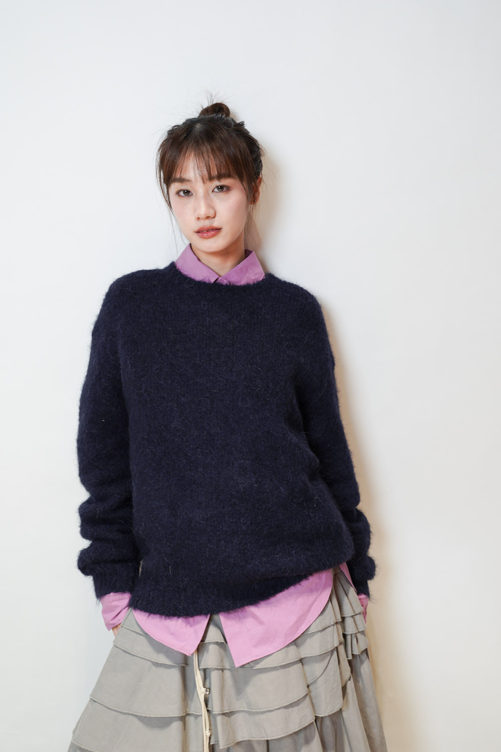 搭配高領打底作層次穿搭 /