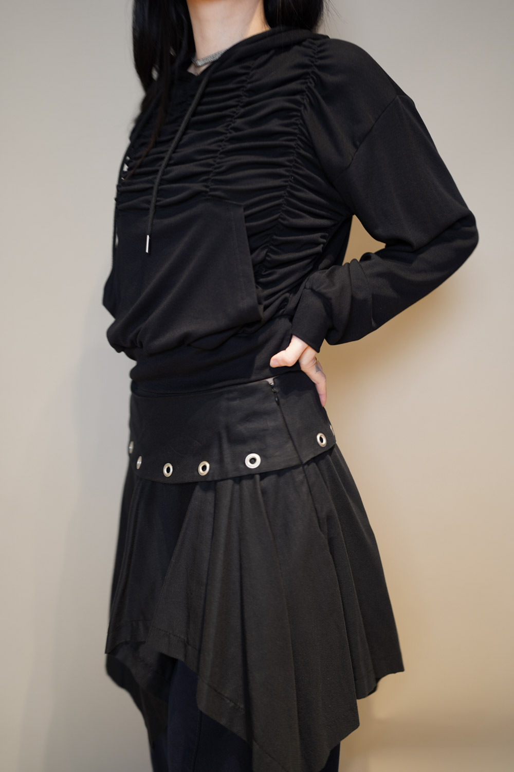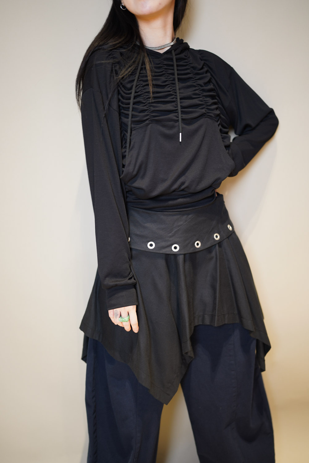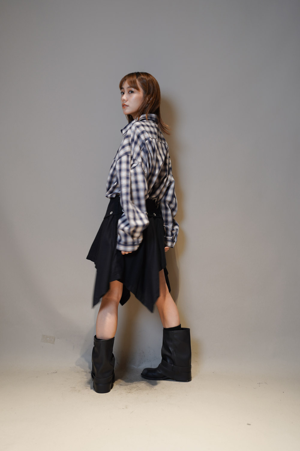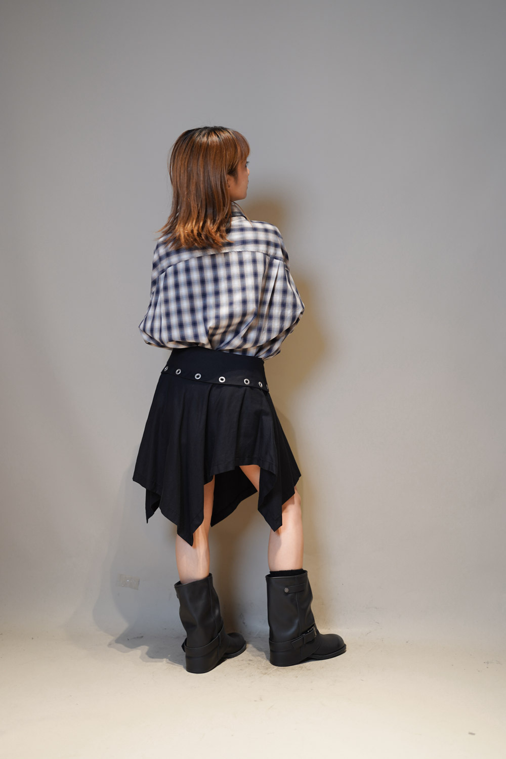 M: Waist: 78cm (30.5”) / Hip: 106cm (41”) / Length: 50cm(side length) / Hem: free