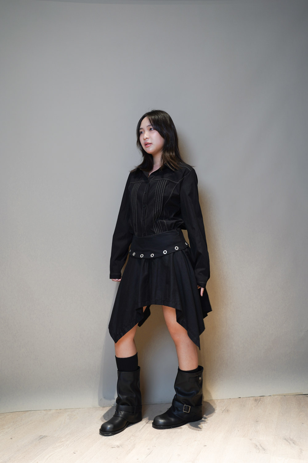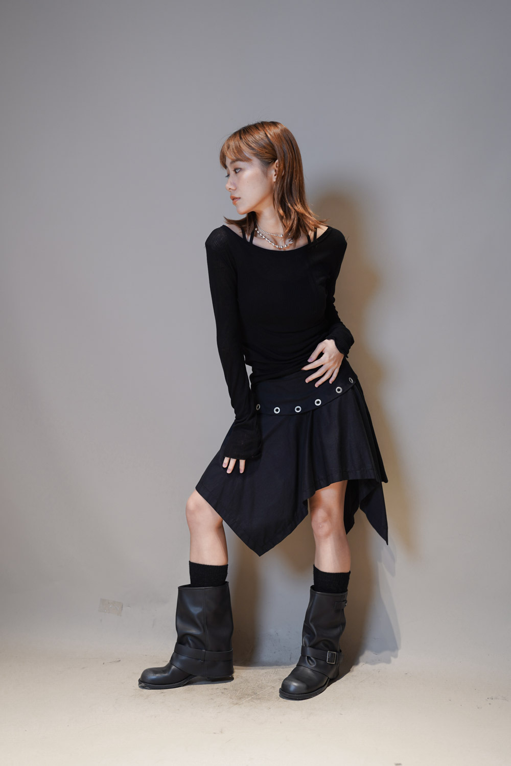 Love~ Irregular eyelet skirt (WHITE/BLACK) - S/M