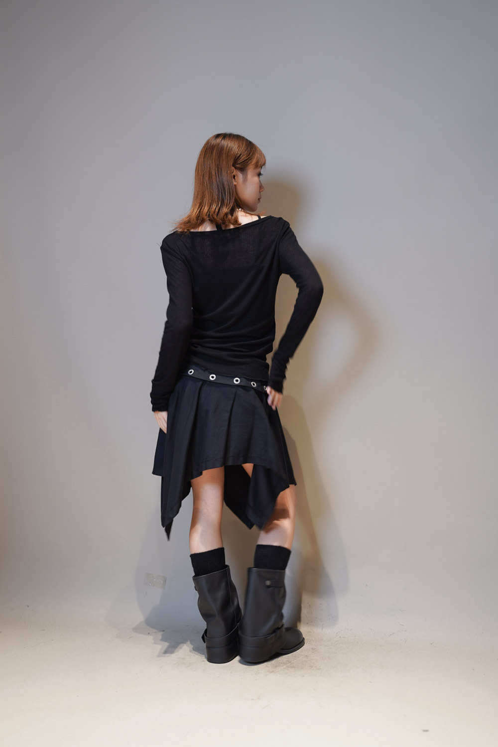 S: Waist: 72cm (28.5”) / Hip: 102cm (40”) / Length: 50cm(side length) / Hem: free