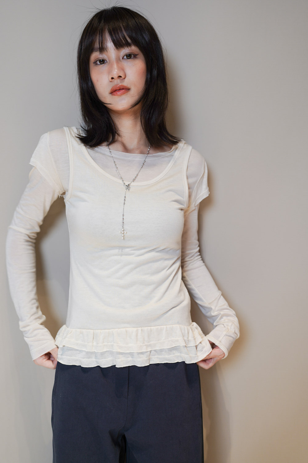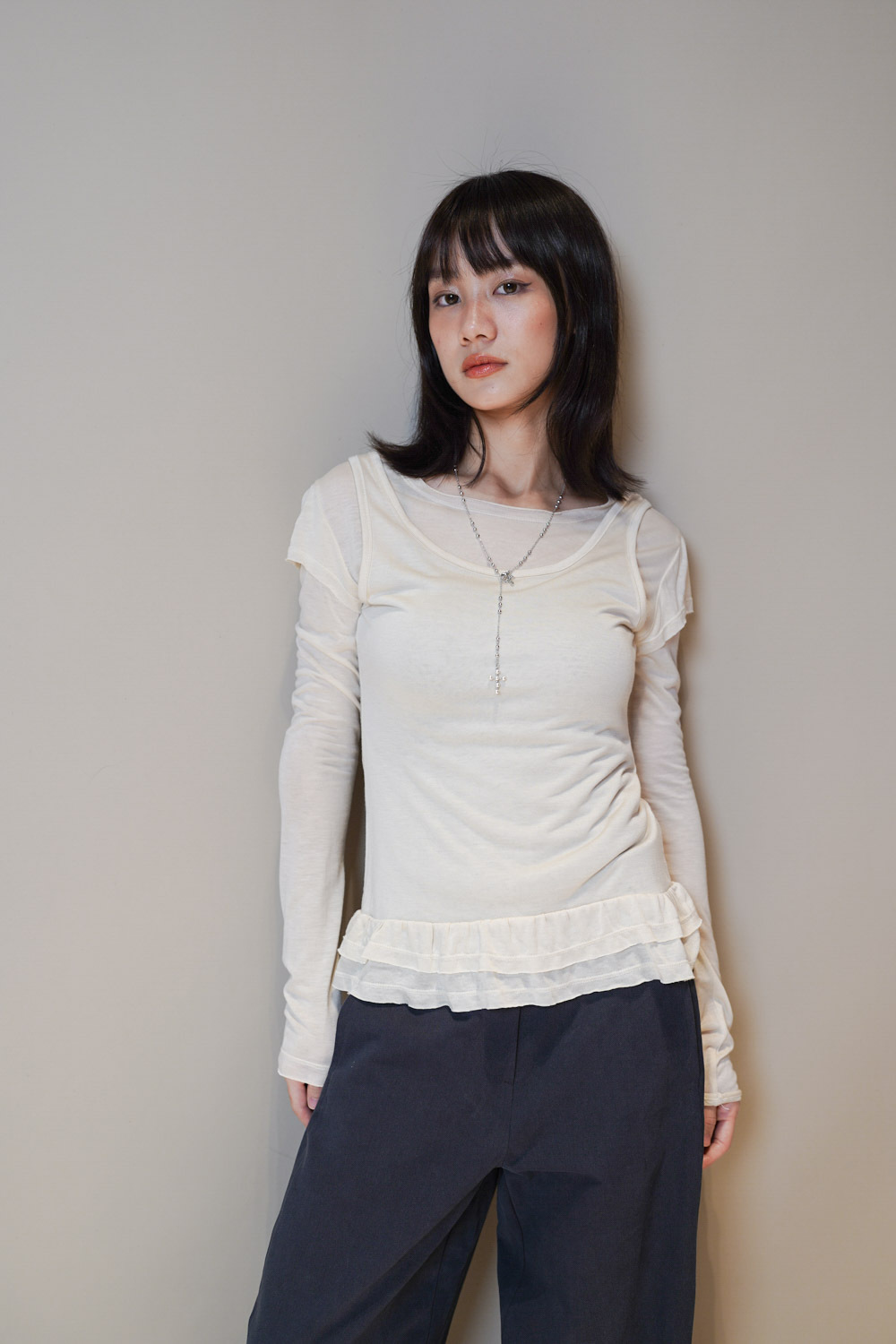 型格性感 不俗氣/ 衫尾雙層ruffle邊 單穿不單調/