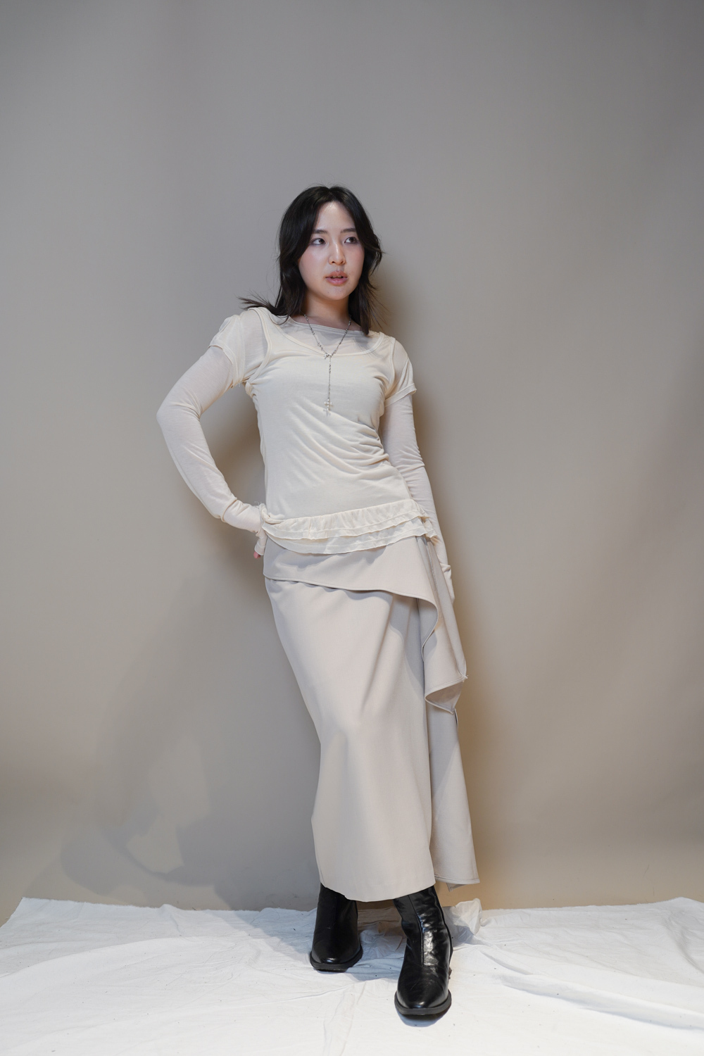 Love~ layered princess top (WHITE/BEIGE/BLACK)