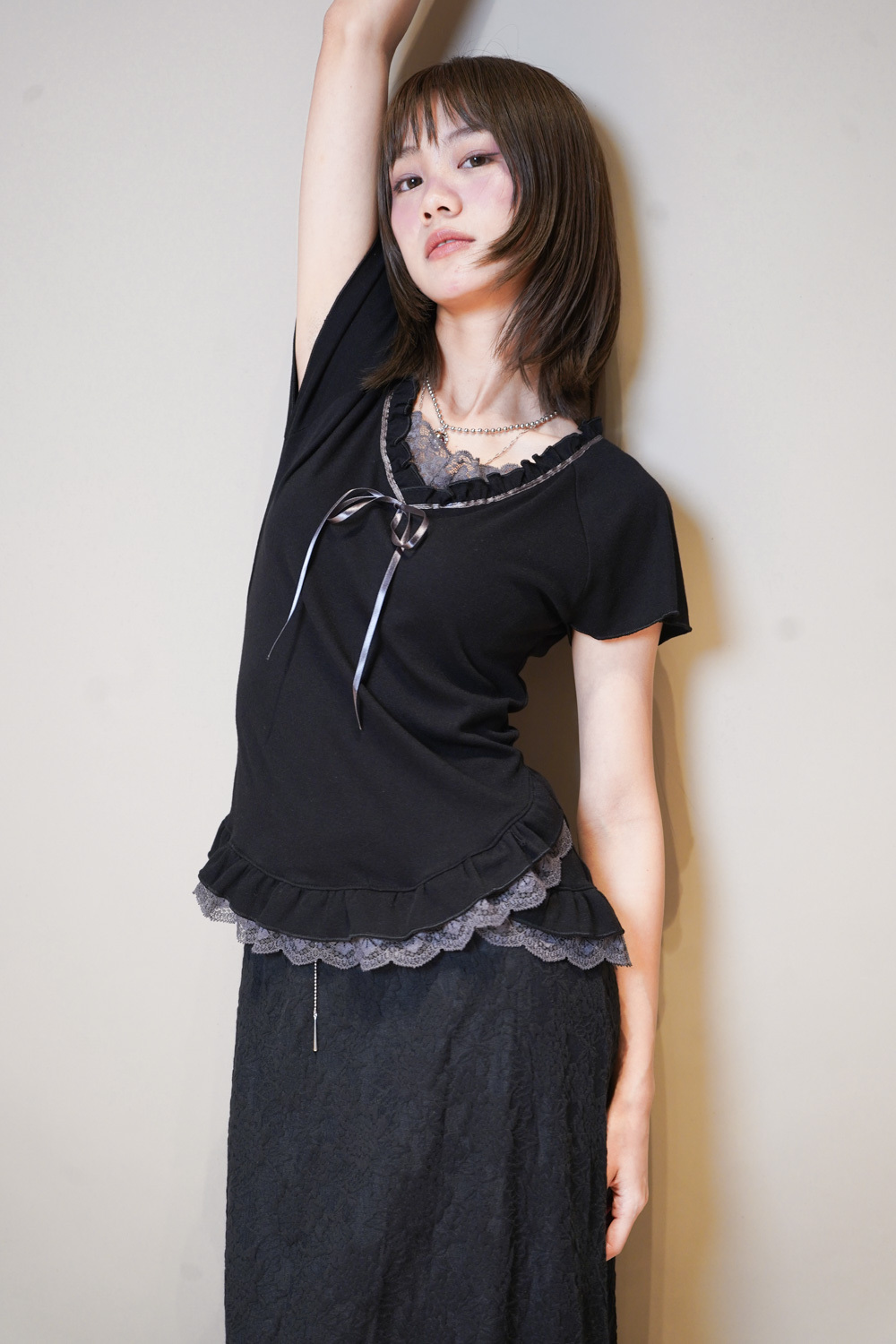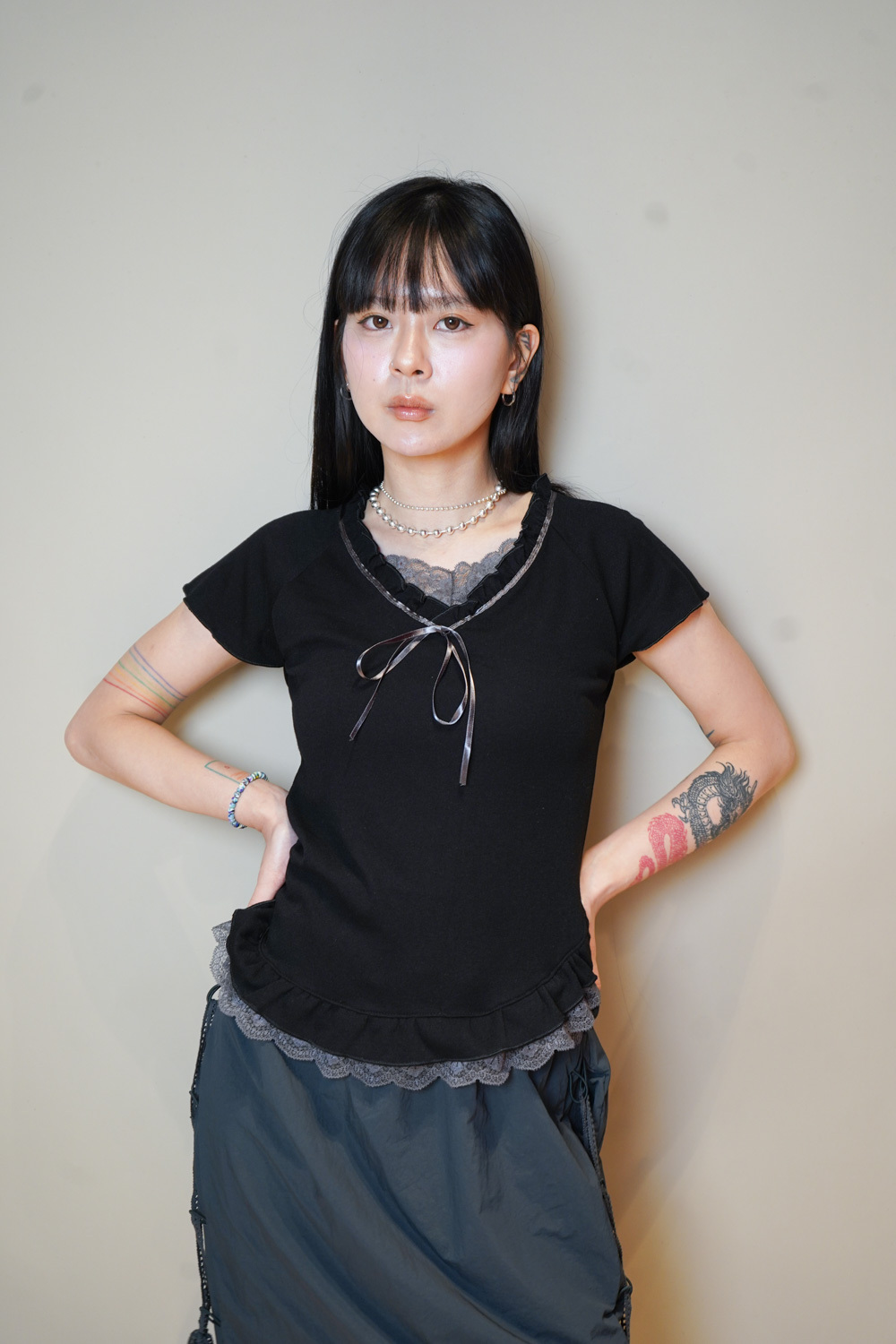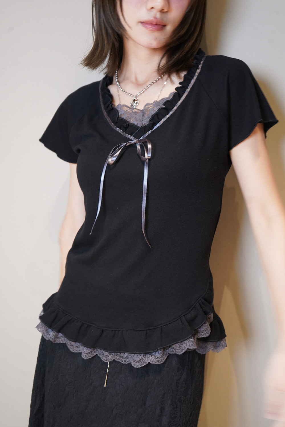Special made~ Love!~ layers lace ribbon tee (BROWN/ WHITE/ BLACK)