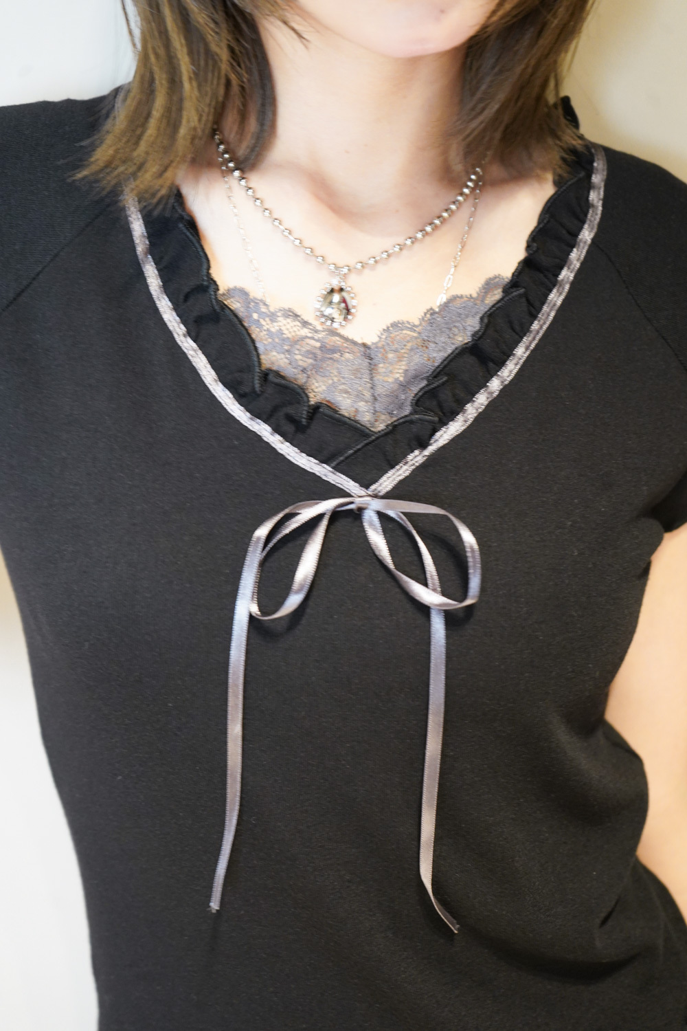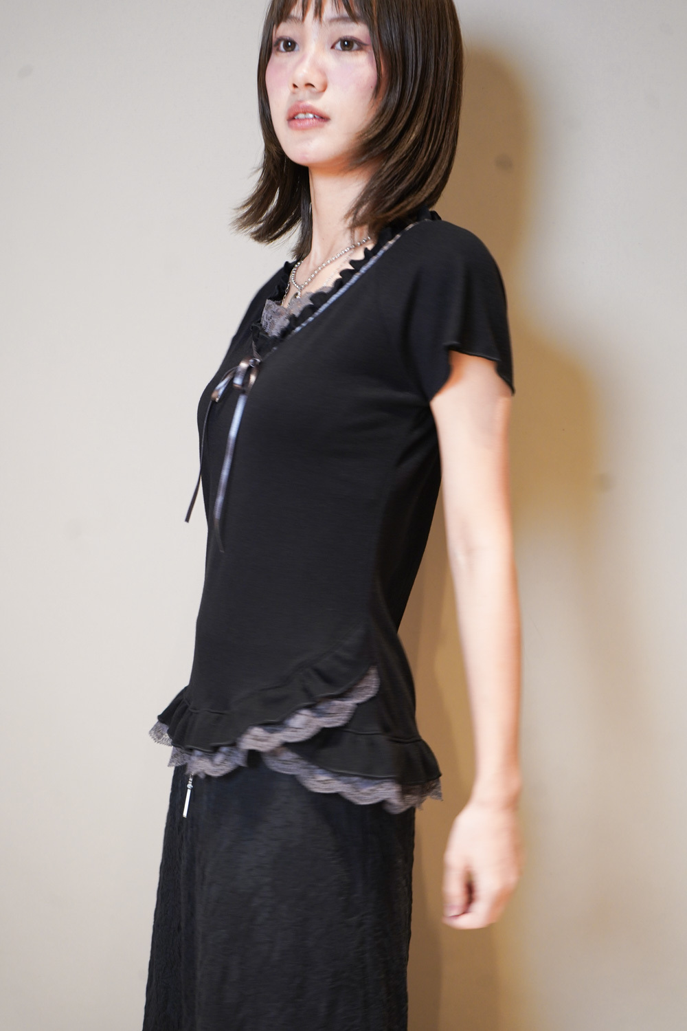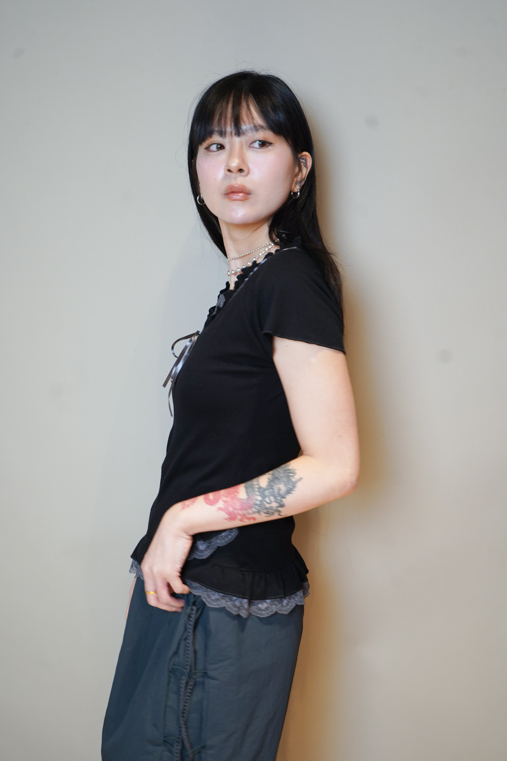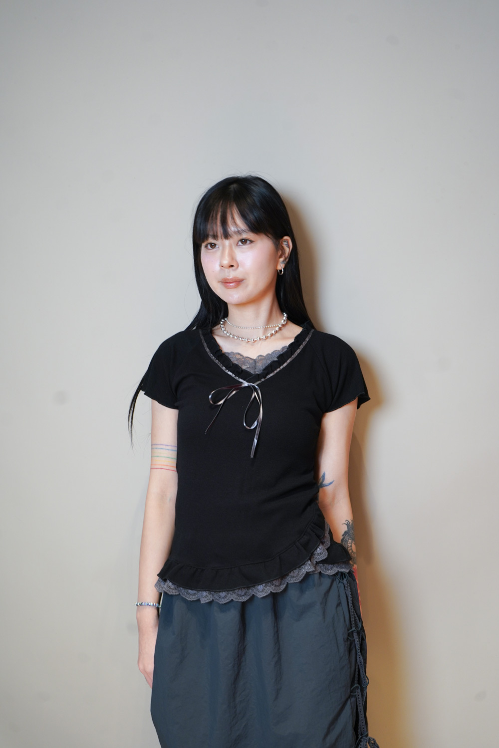 Special made~ Love!~ layers lace ribbon tee (BROWN/ WHITE/ BLACK)