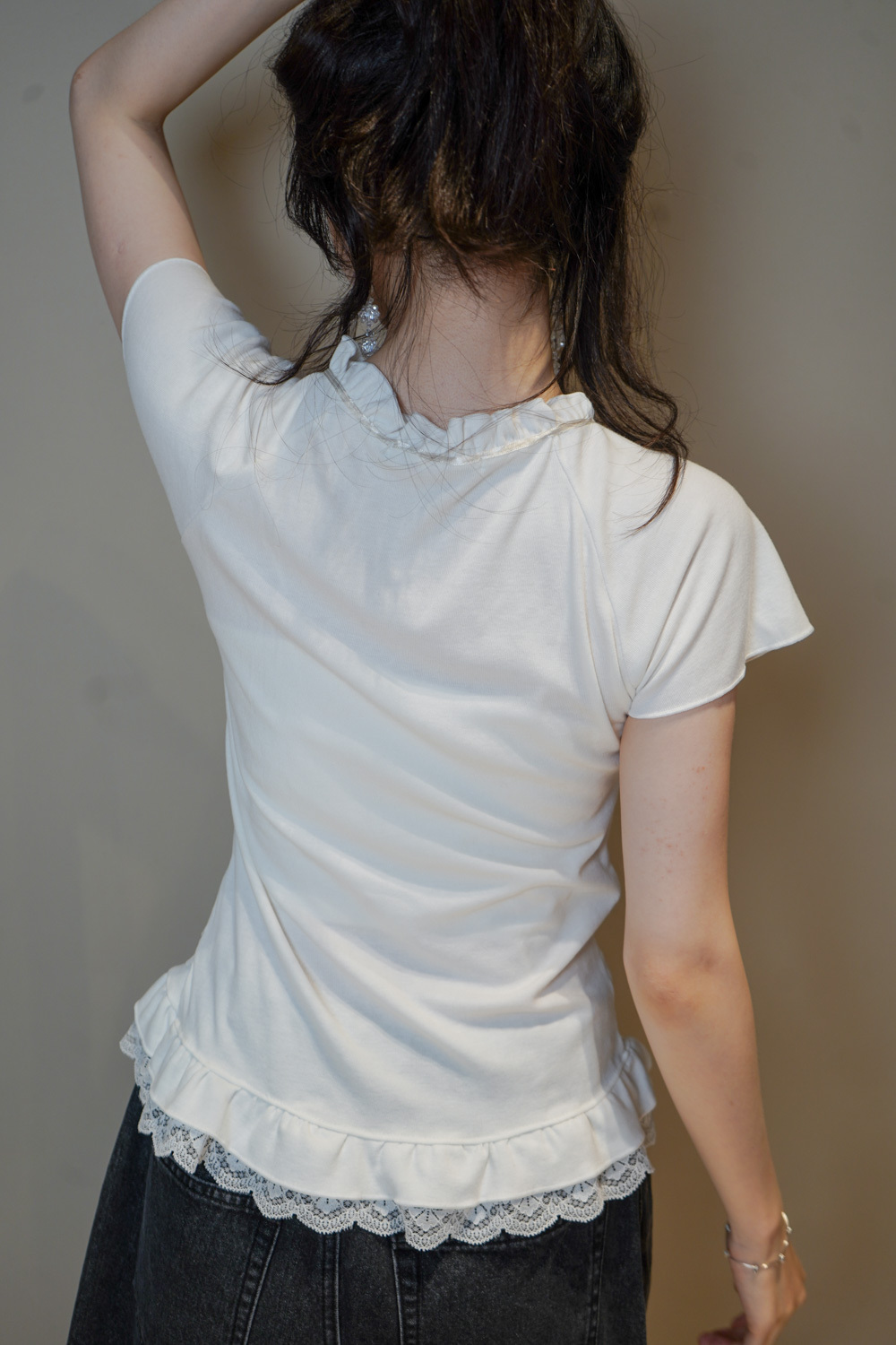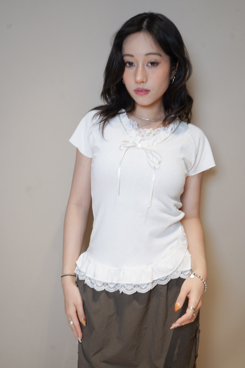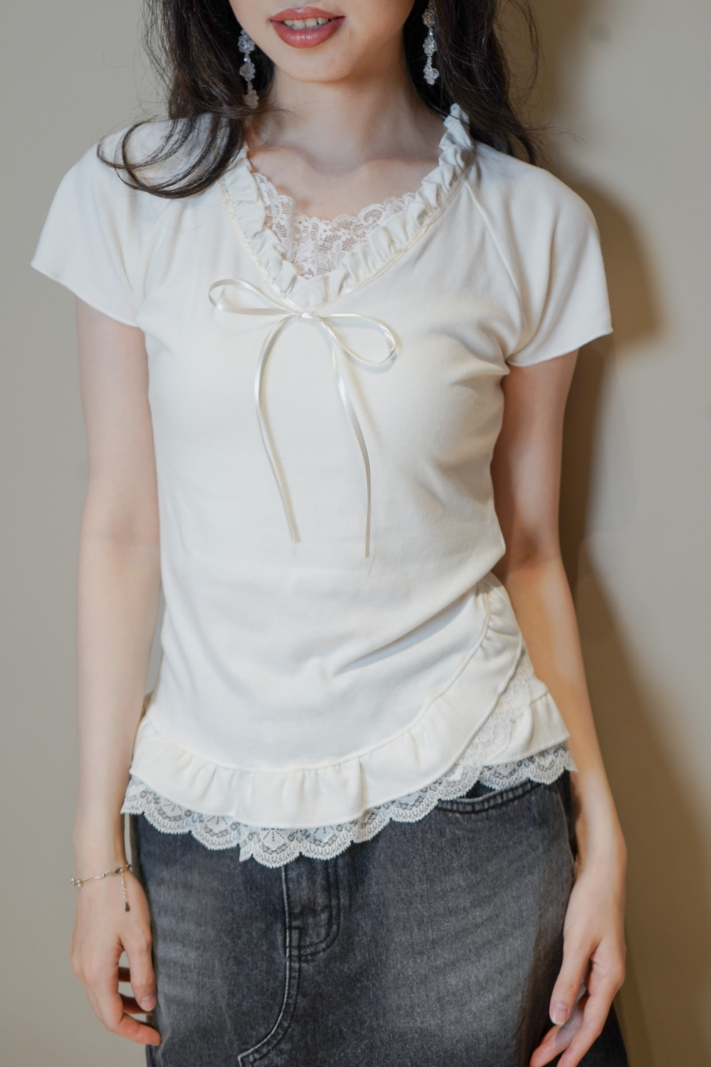 Love!~ layers lace ribbon tee (BROWN/WHITE/BLACK)
