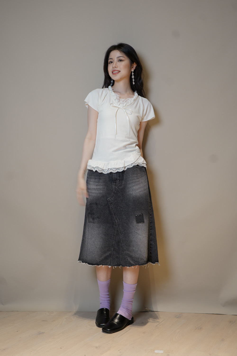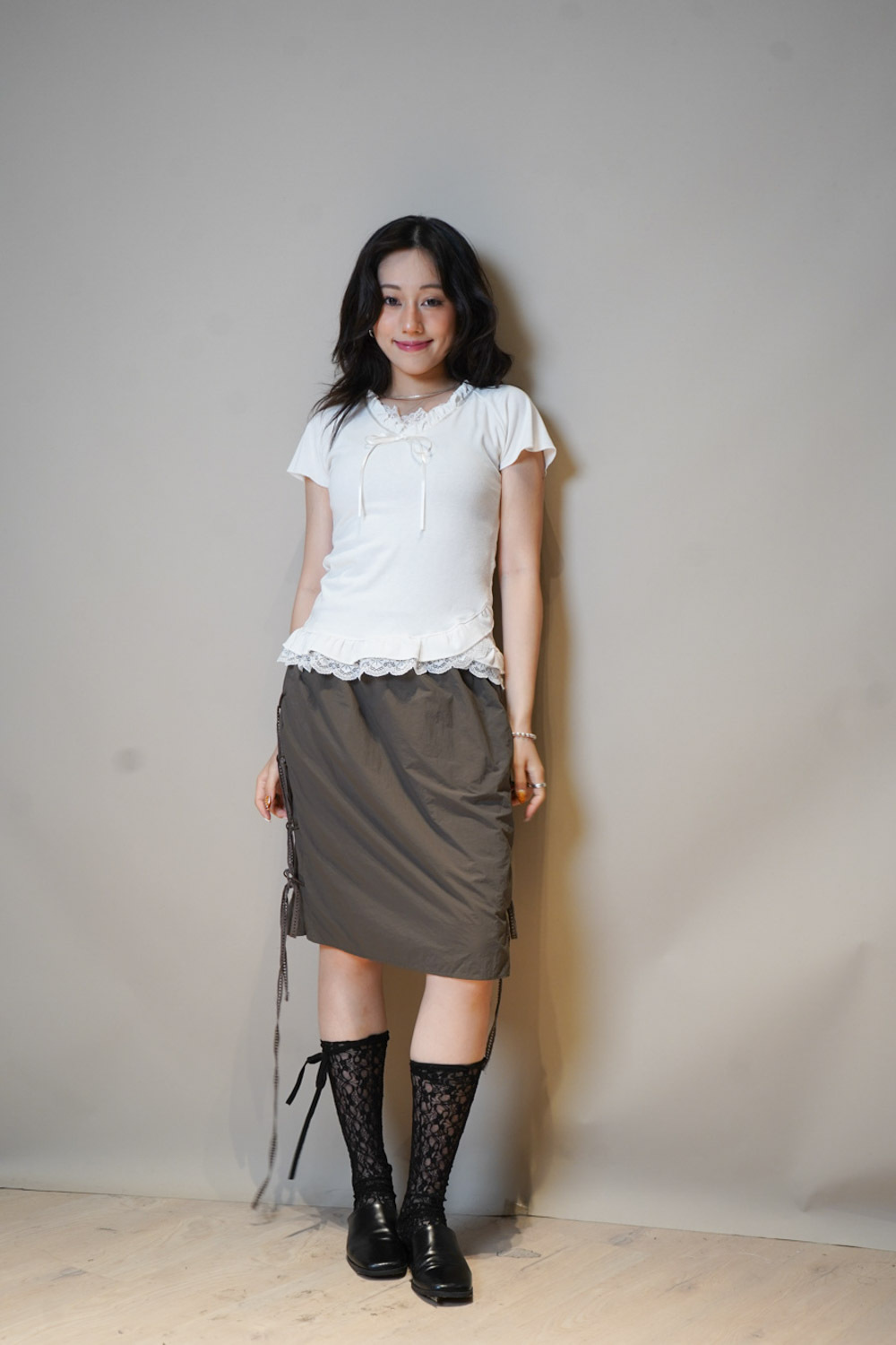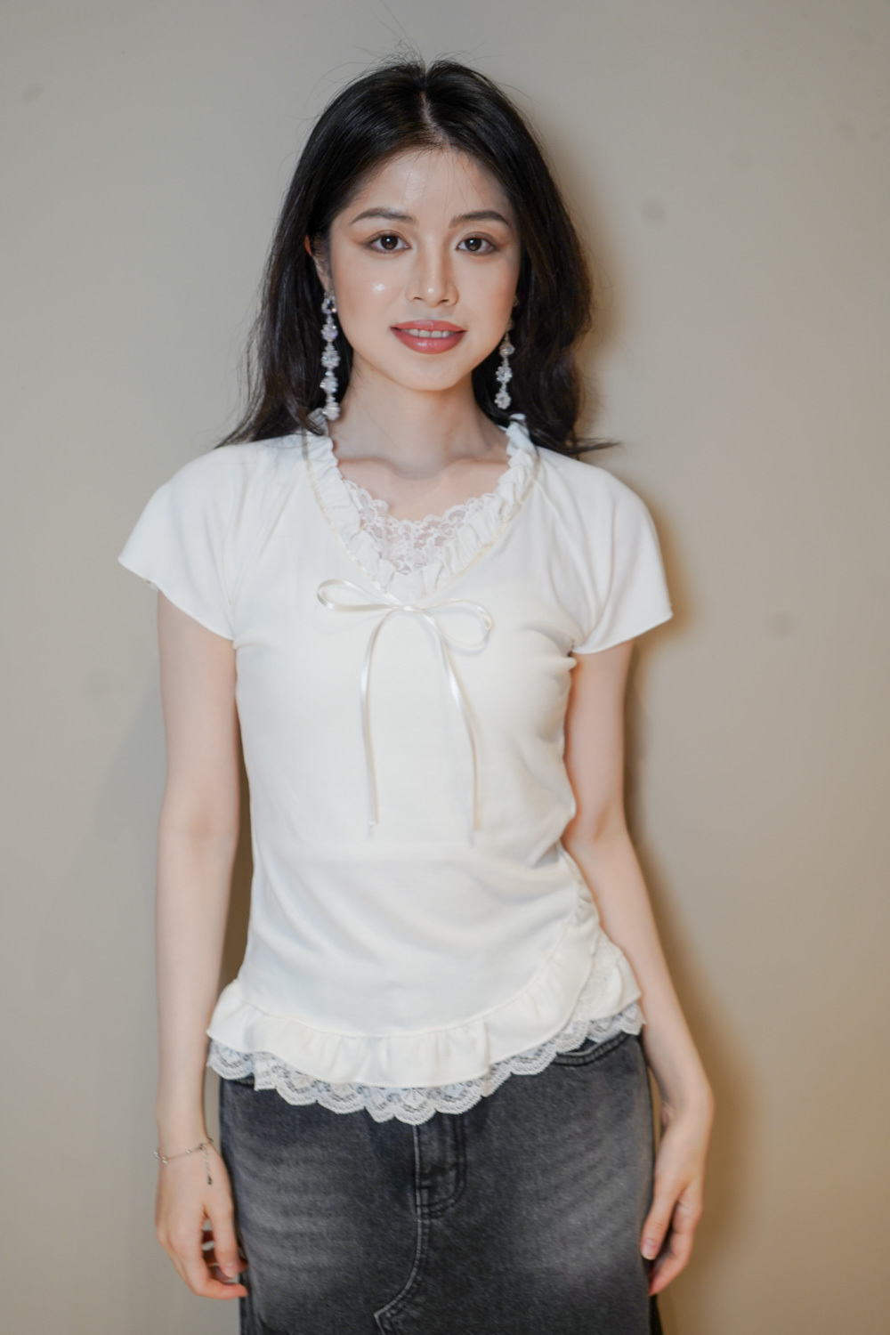 Love!~ layers lace ribbon tee (BROWN/WHITE/BLACK)