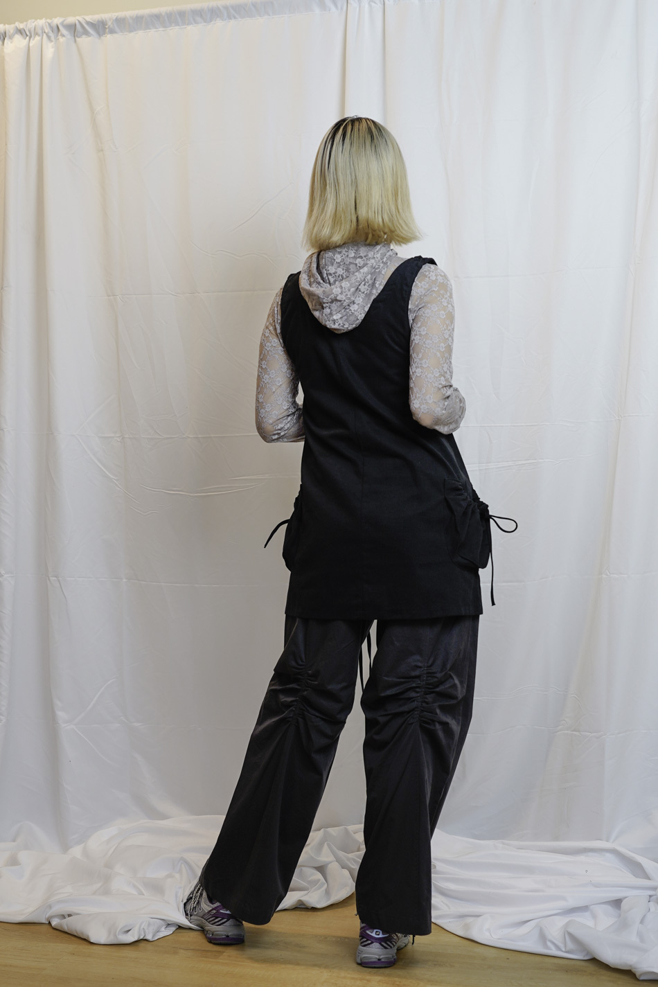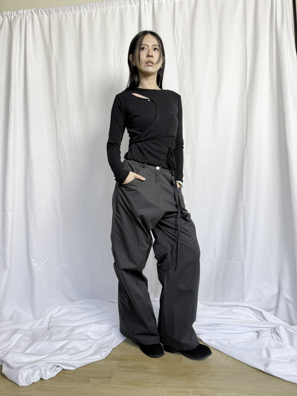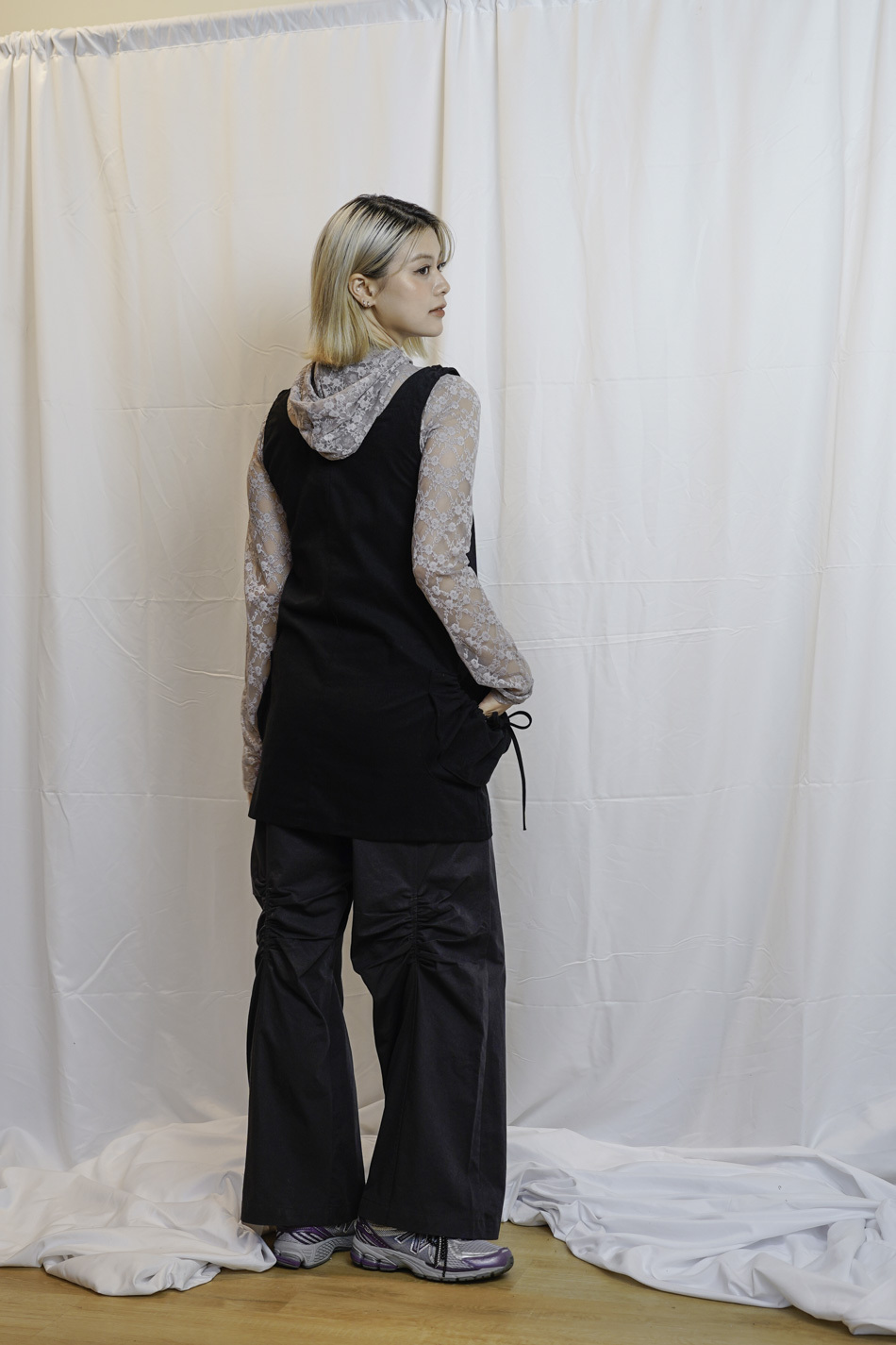 Waist: 67-77cm (26”-30”) / Hip: 102cm (40”)/ Rise: 35cm / Length: 106cm / Thigh: 75cm / Hem:64cm