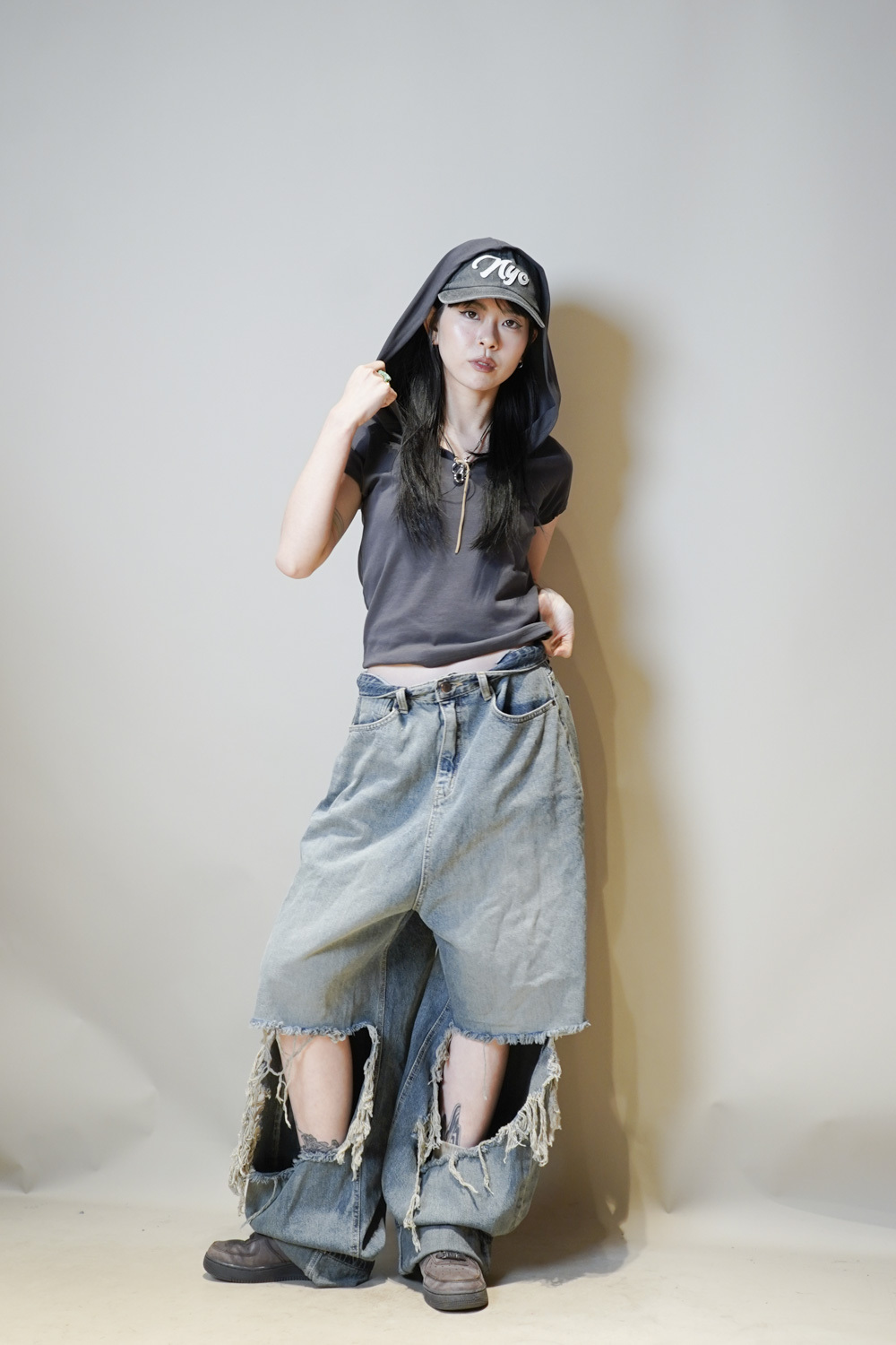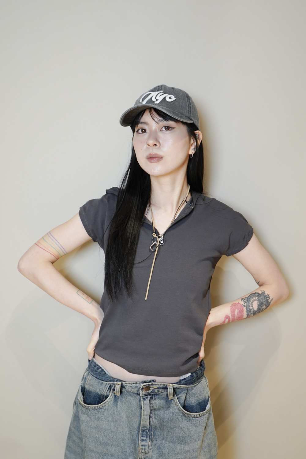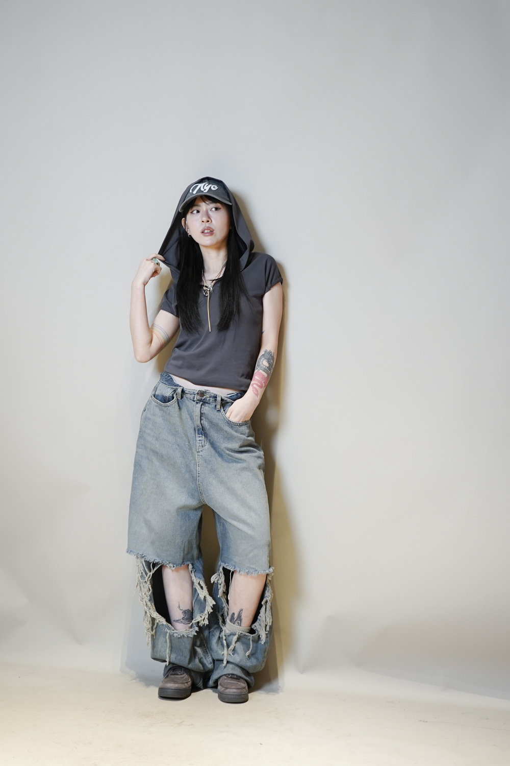 領口半拉鍊設計/穿著時拉開拉鍊/鬆弛感滿滿