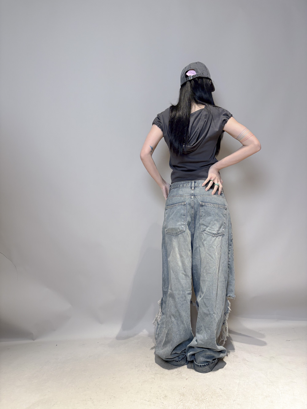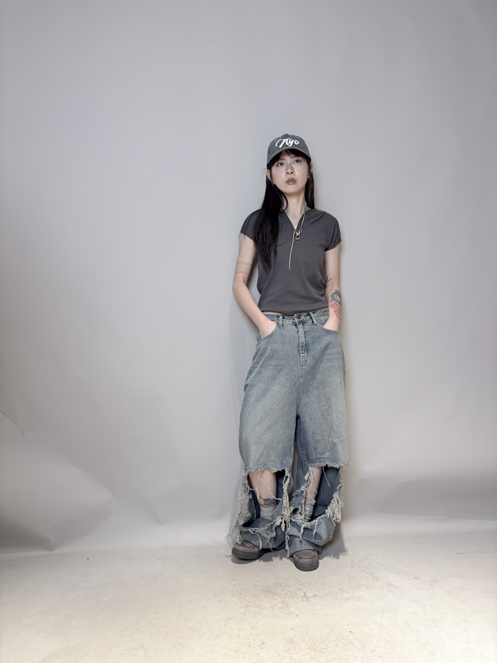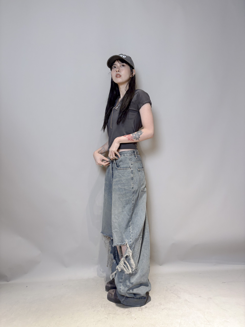 領口半拉鍊設計/穿著時拉開拉鍊/鬆弛感滿滿