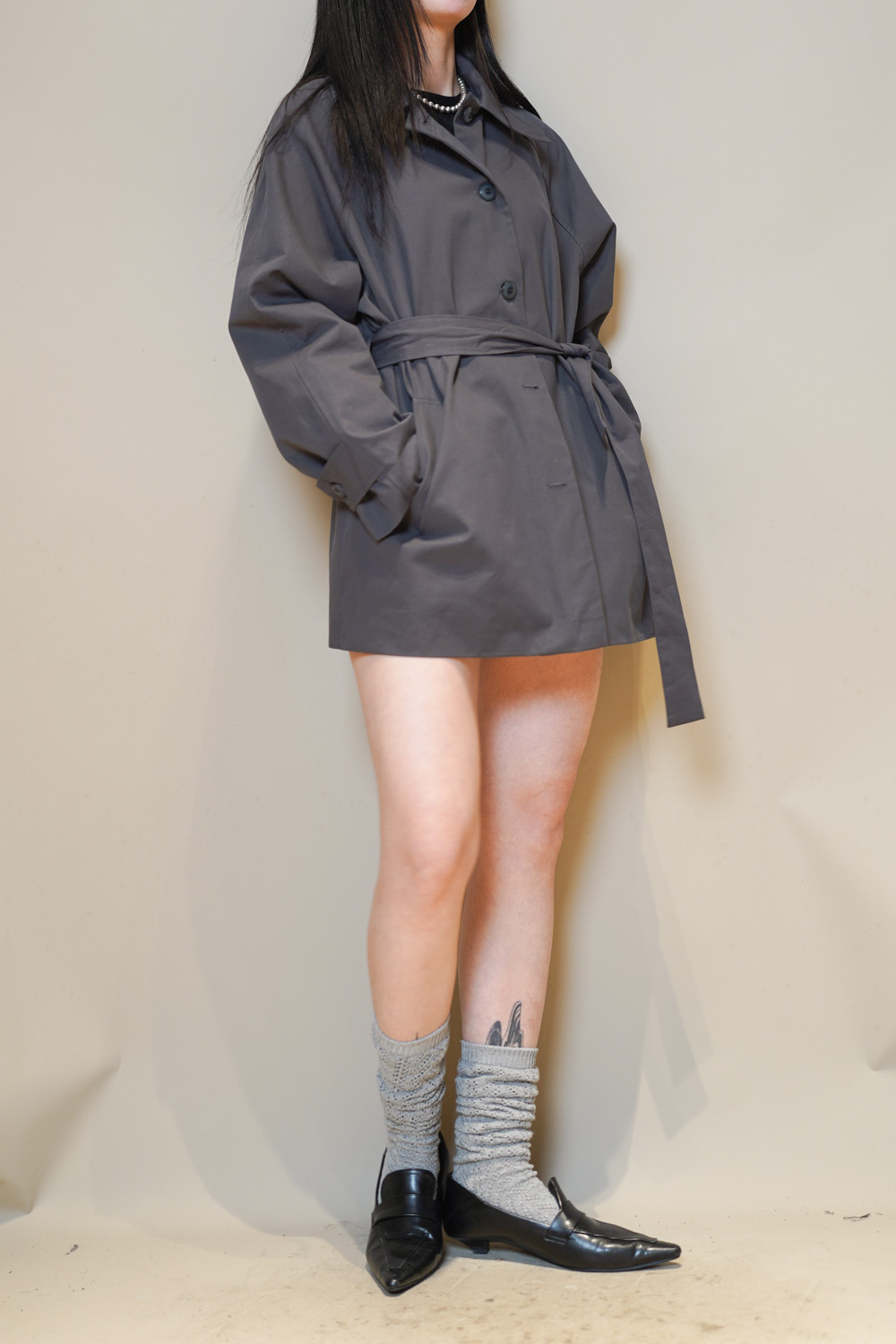 Fall mid length Trench Coat (GREY)