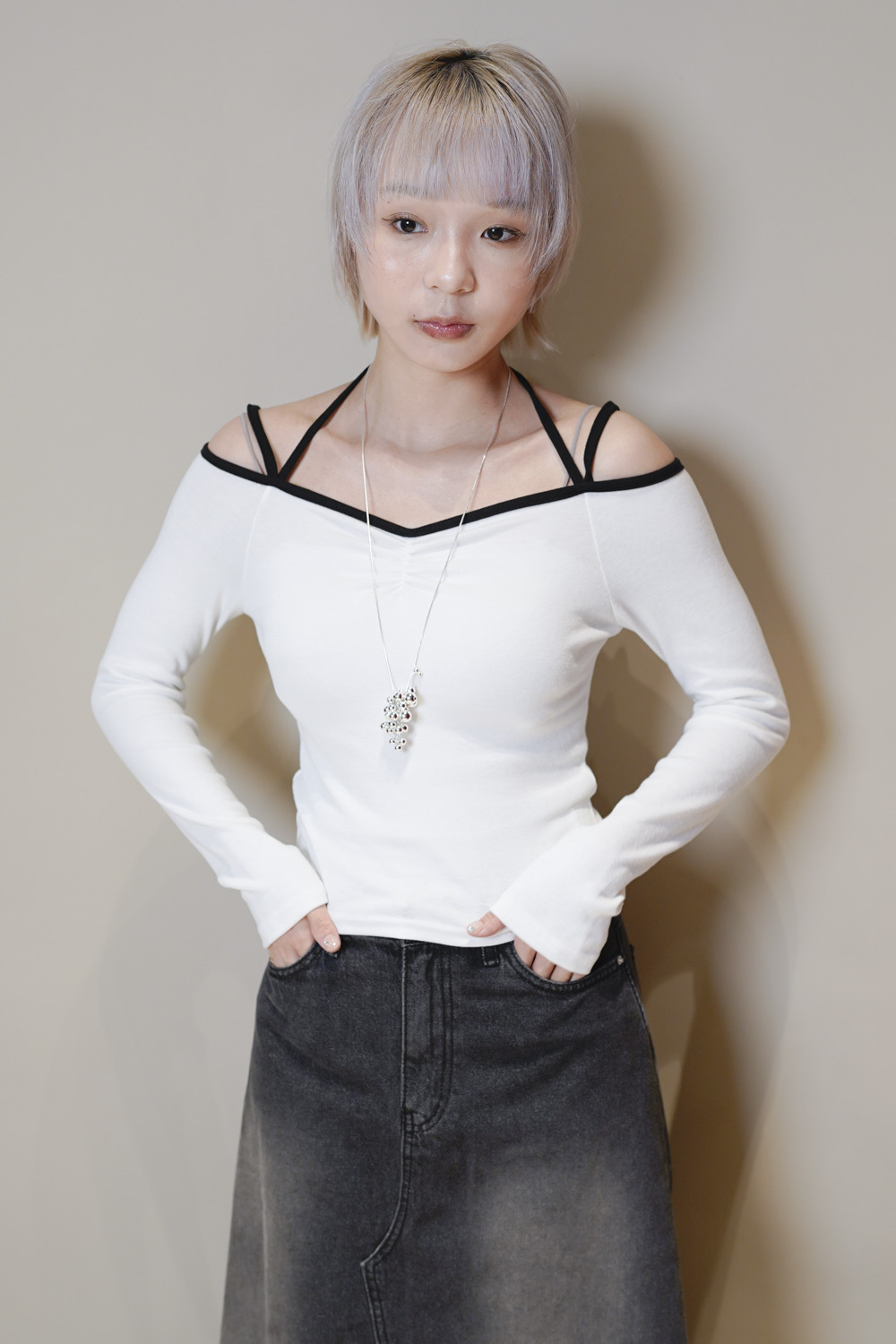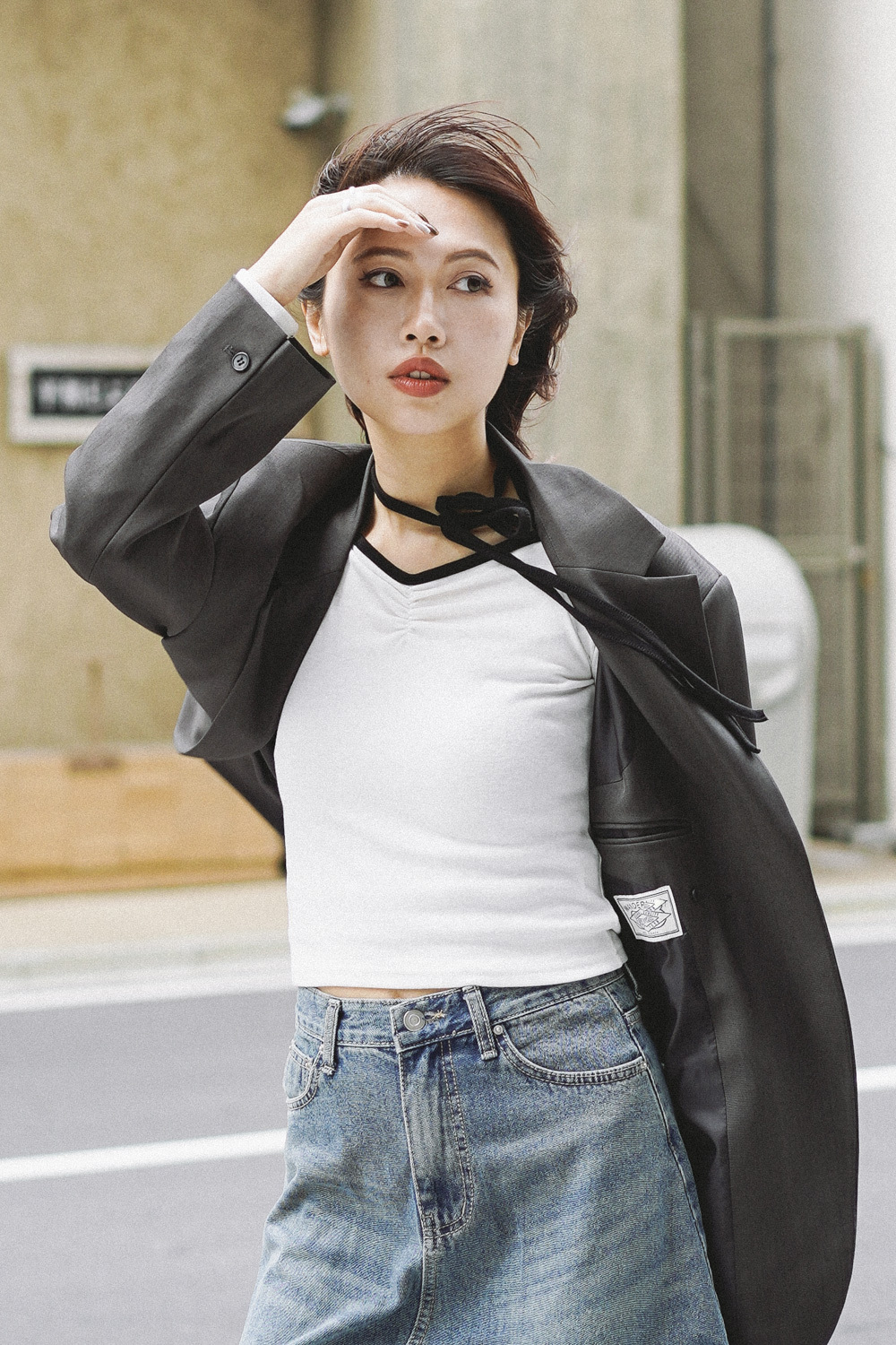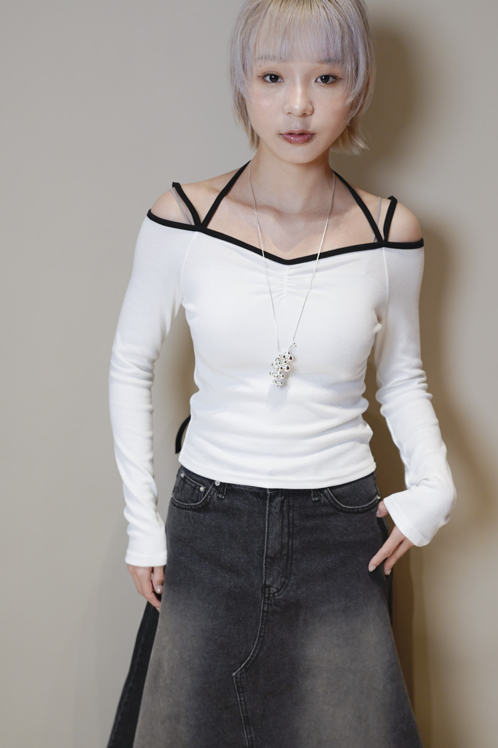 吊帶可掛頸穿搭也可以在胸前纏繞/