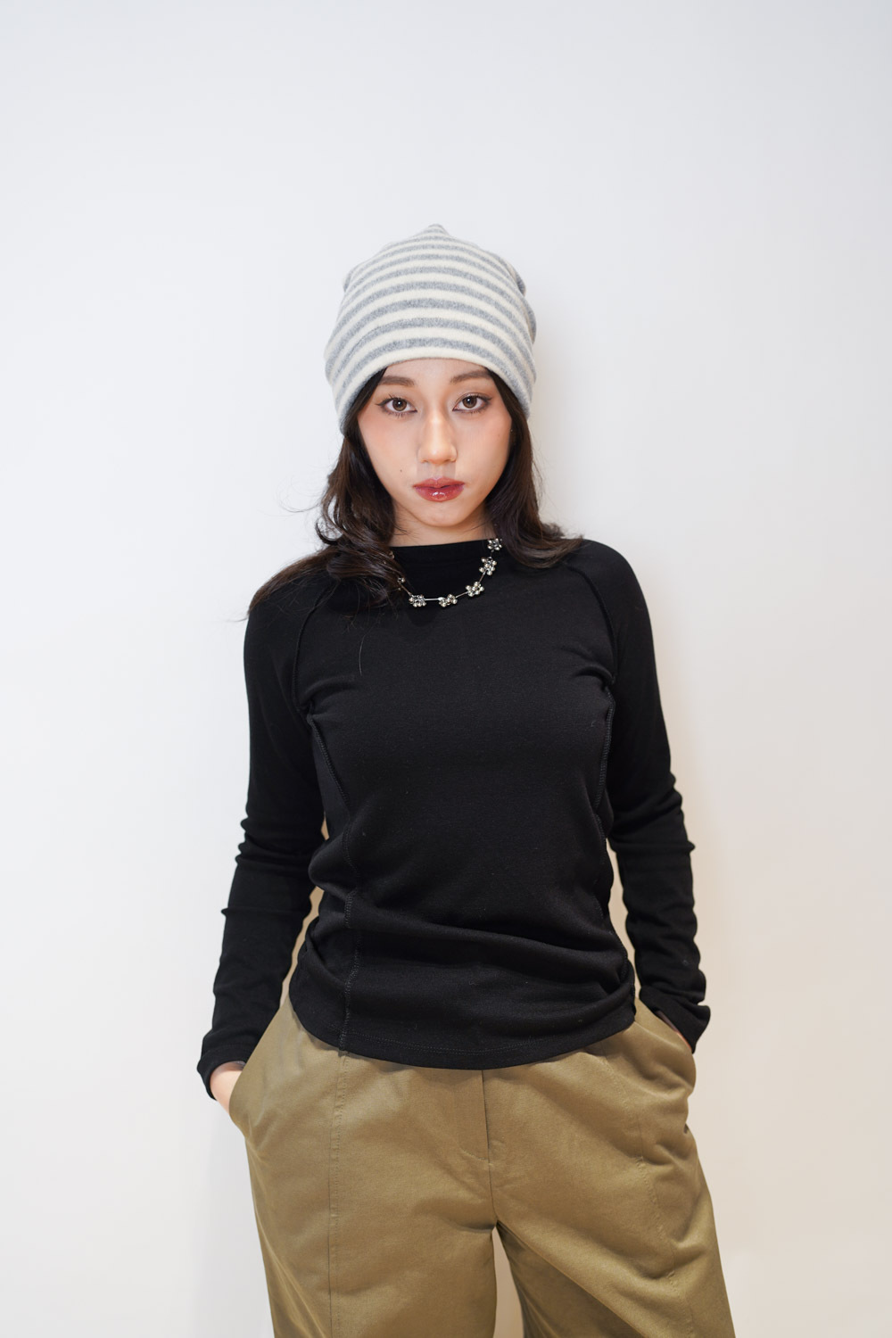 Love~ outline sporty long sleeve top (GREY/BLACK)