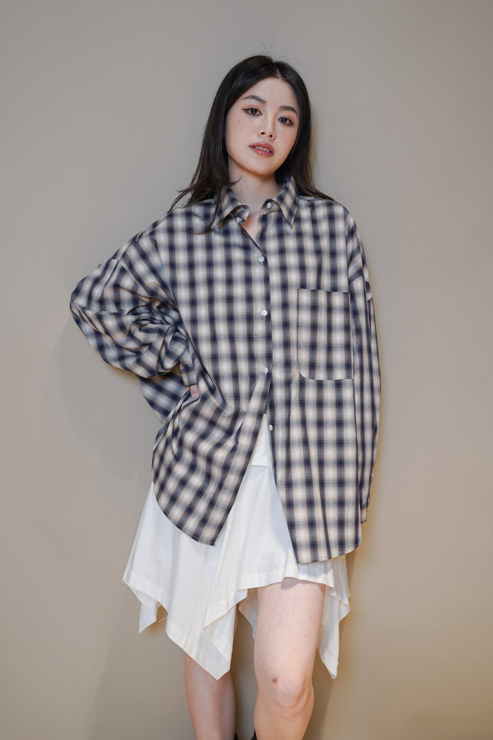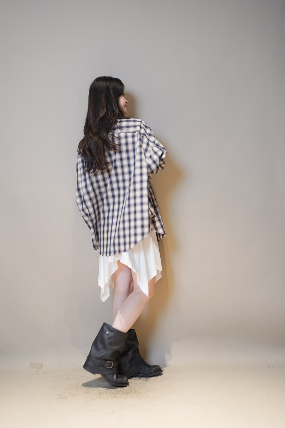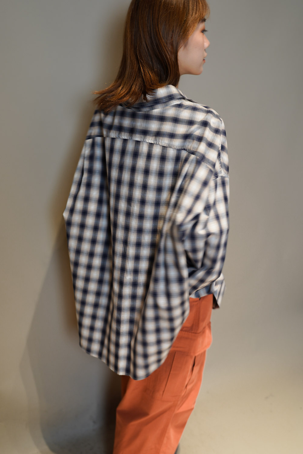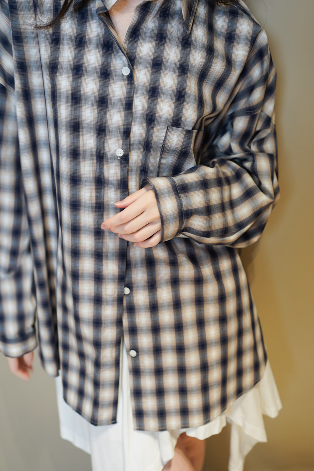 Love~ oversized silhouettes checked shirt (BLUE/ YELLOW /NAVY)