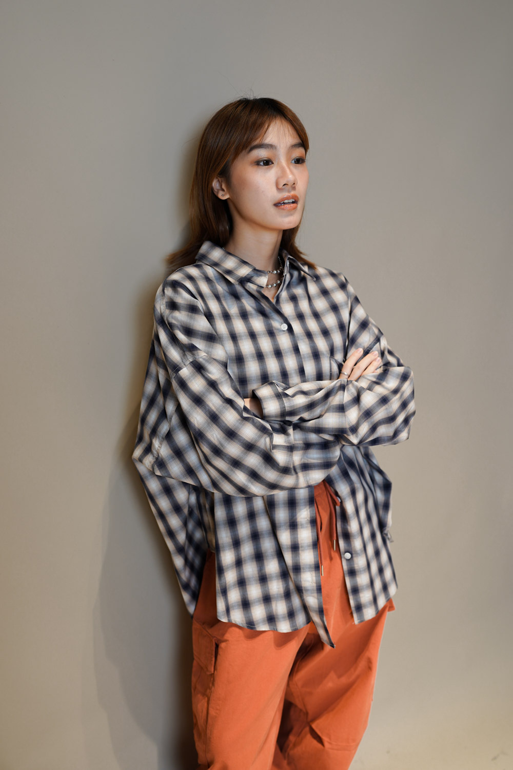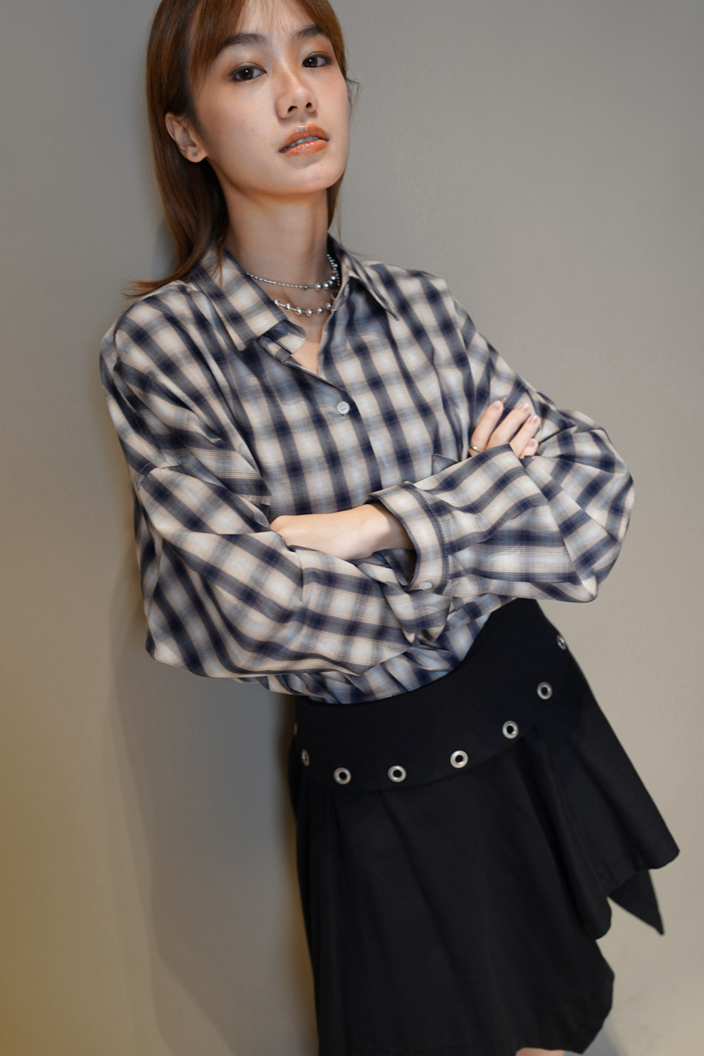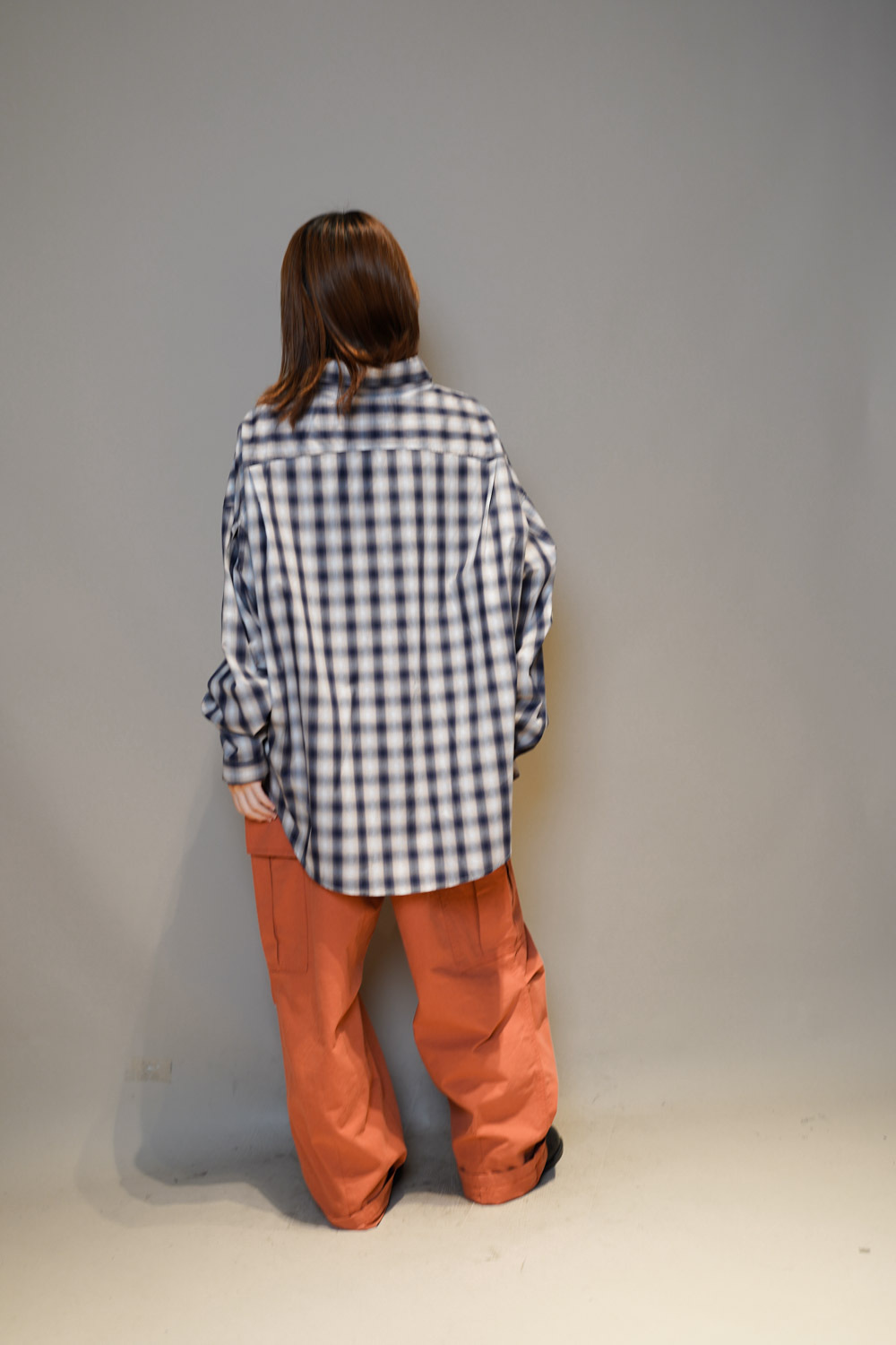 Love~ oversized silhouettes checked shirt (BLUE/ YELLOW /NAVY)