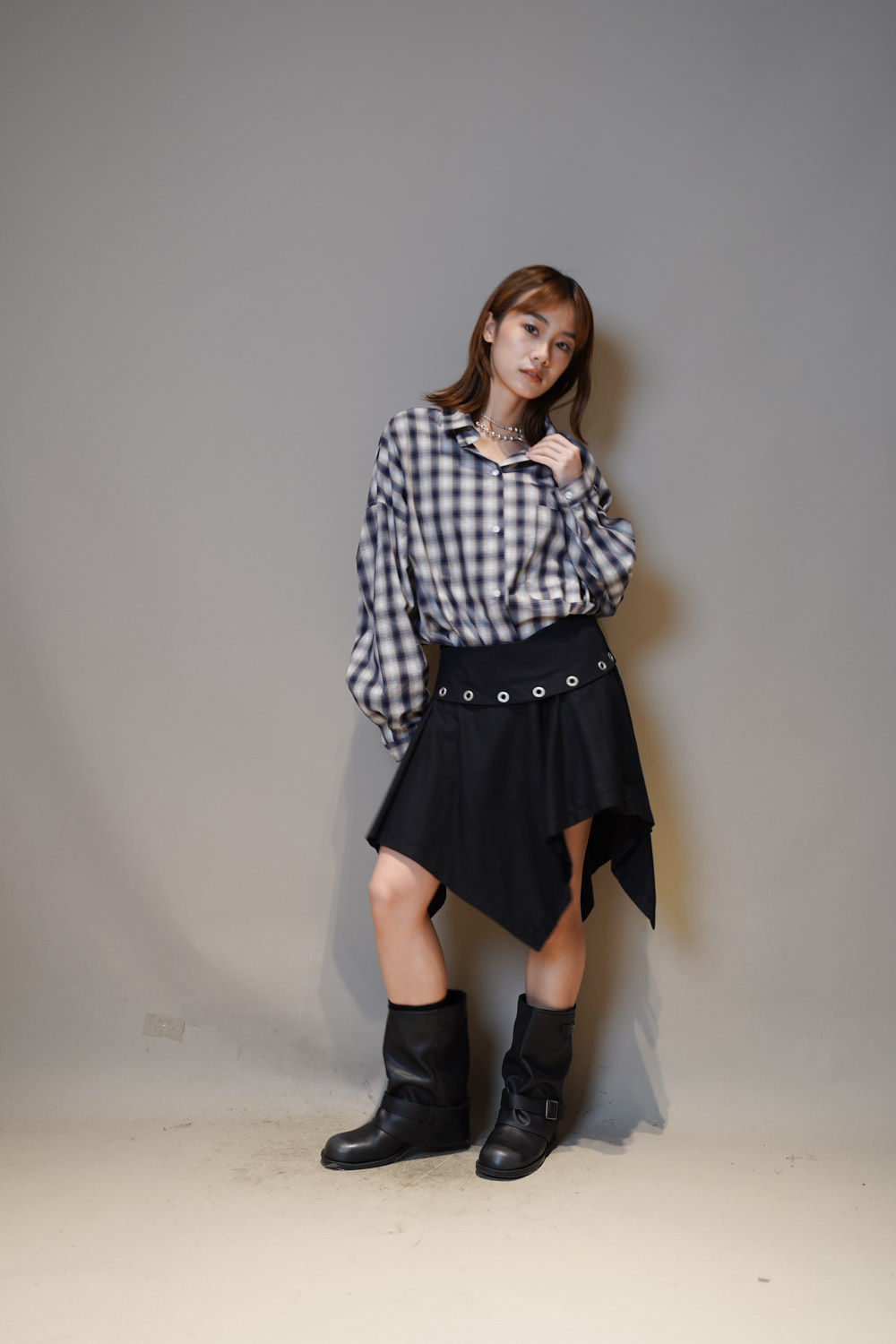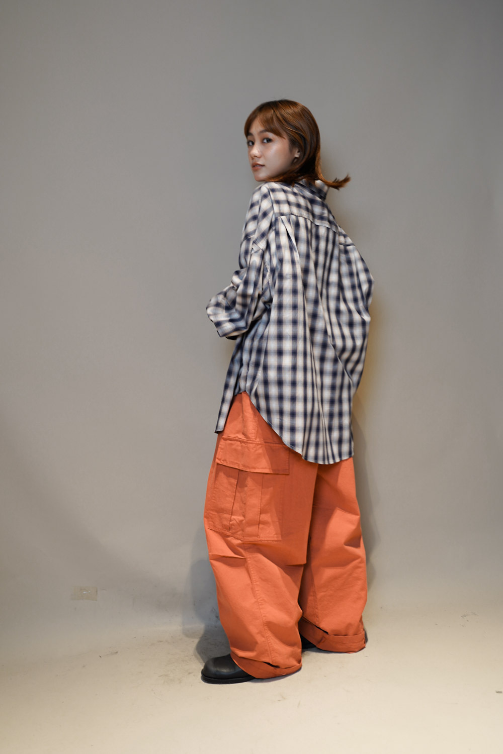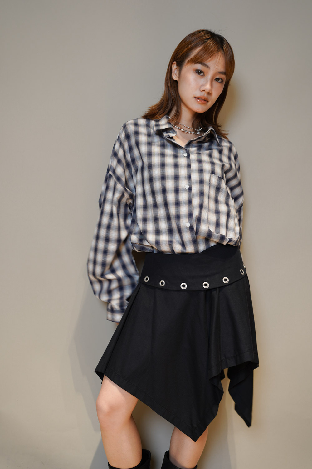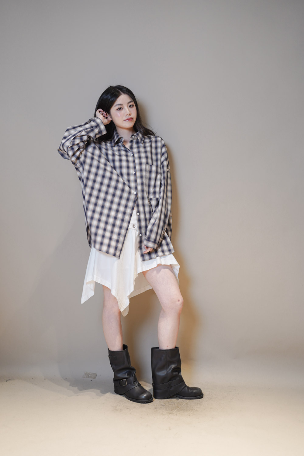 Love~ oversized silhouettes checked shirt (BLUE/ YELLOW /NAVY)