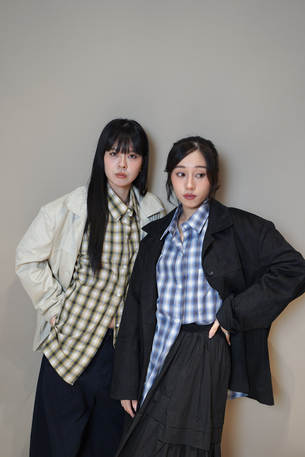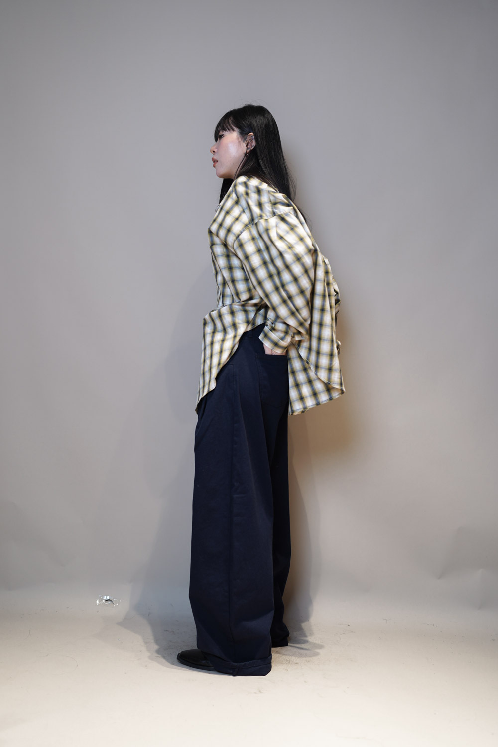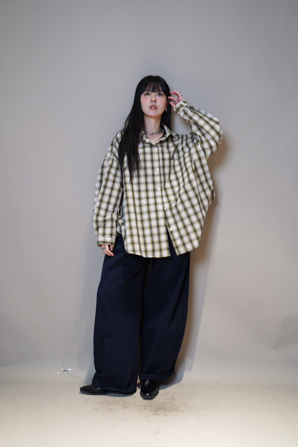 Love~ oversized silhouettes checked shirt (BLUE/ YELLOW /NAVY)