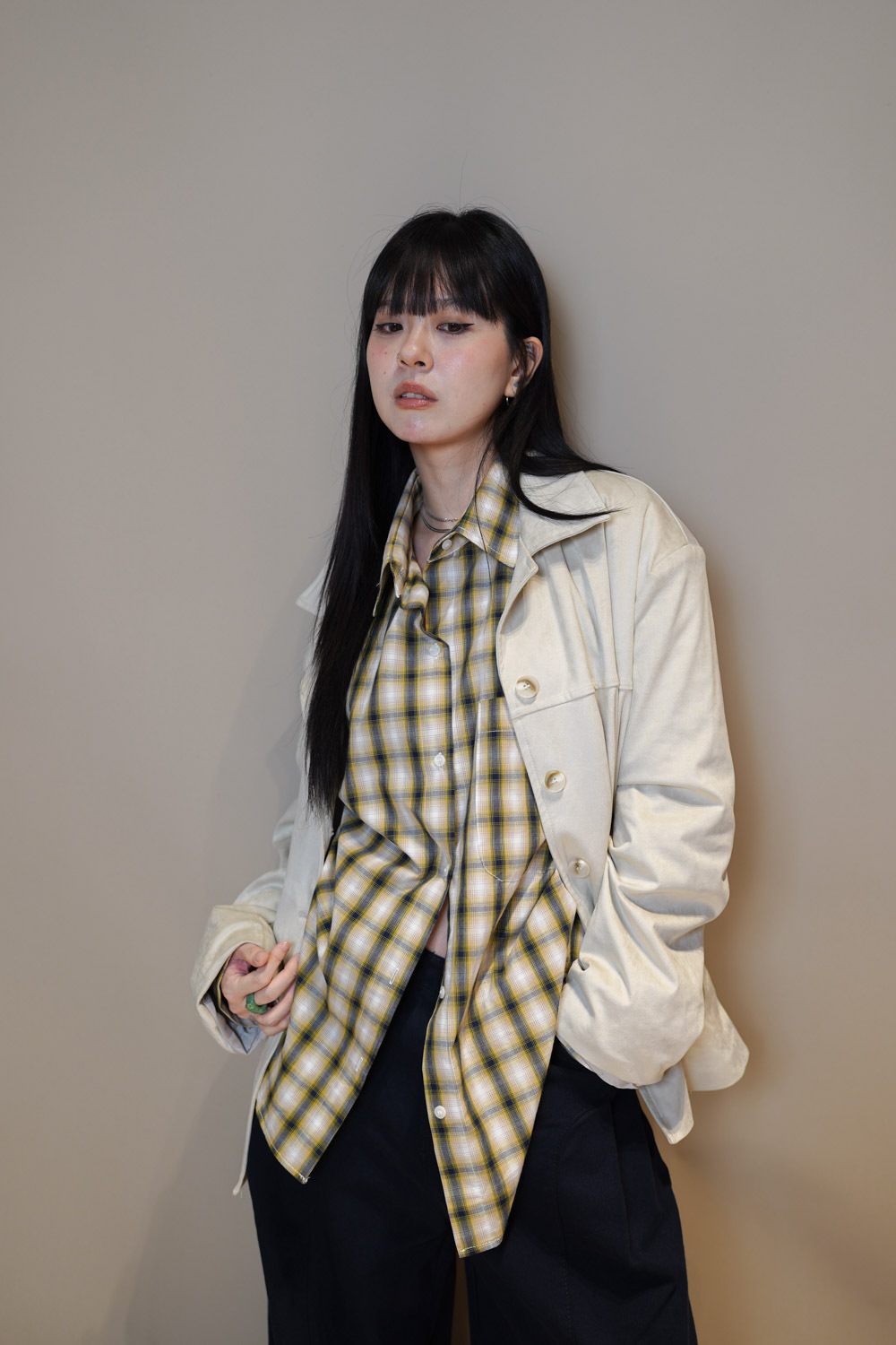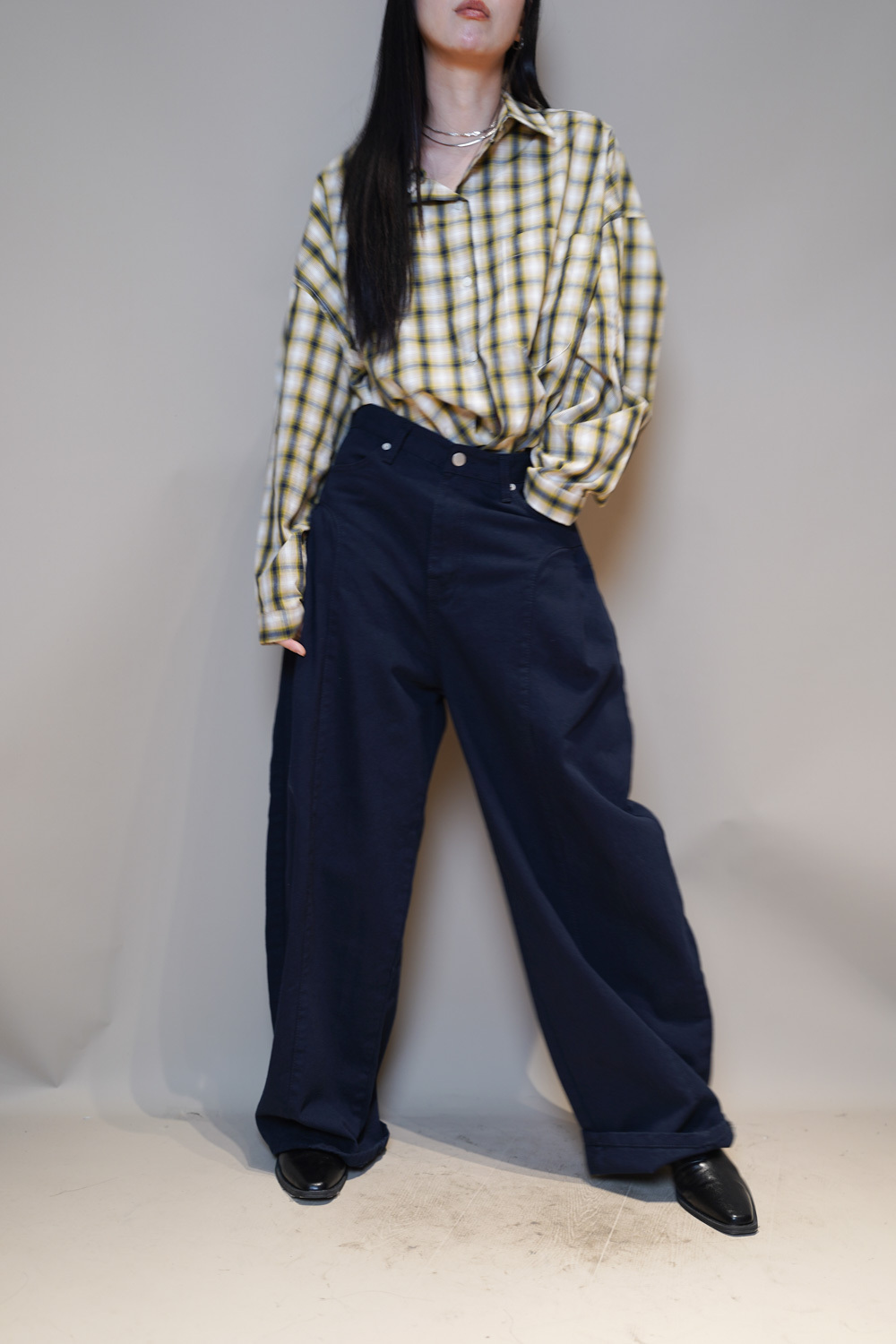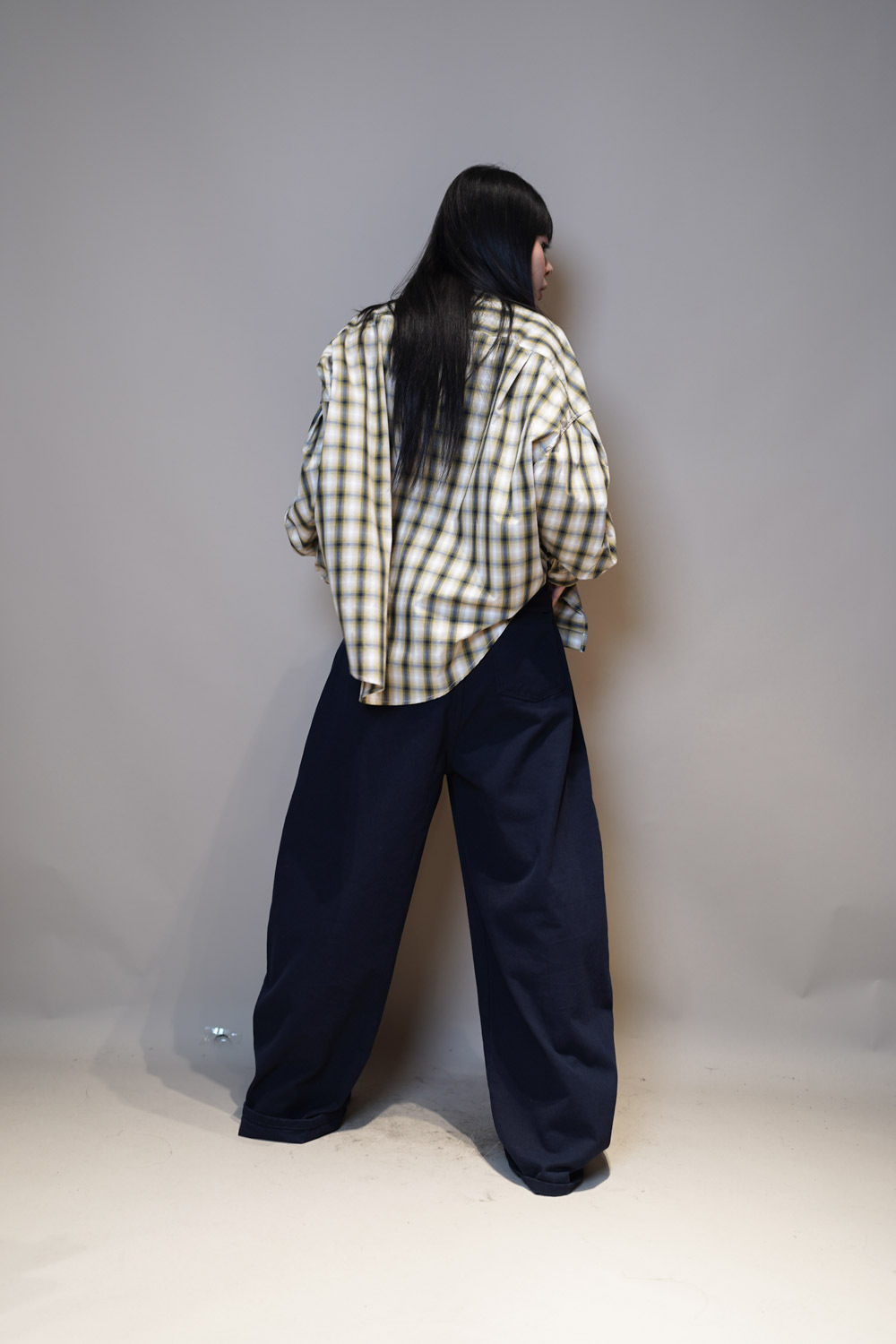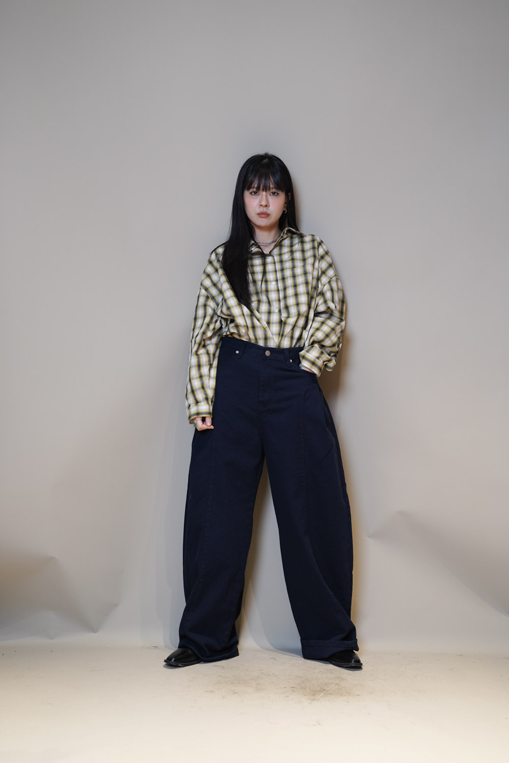 Love~ oversized silhouettes checked shirt (BLUE/ YELLOW /NAVY)