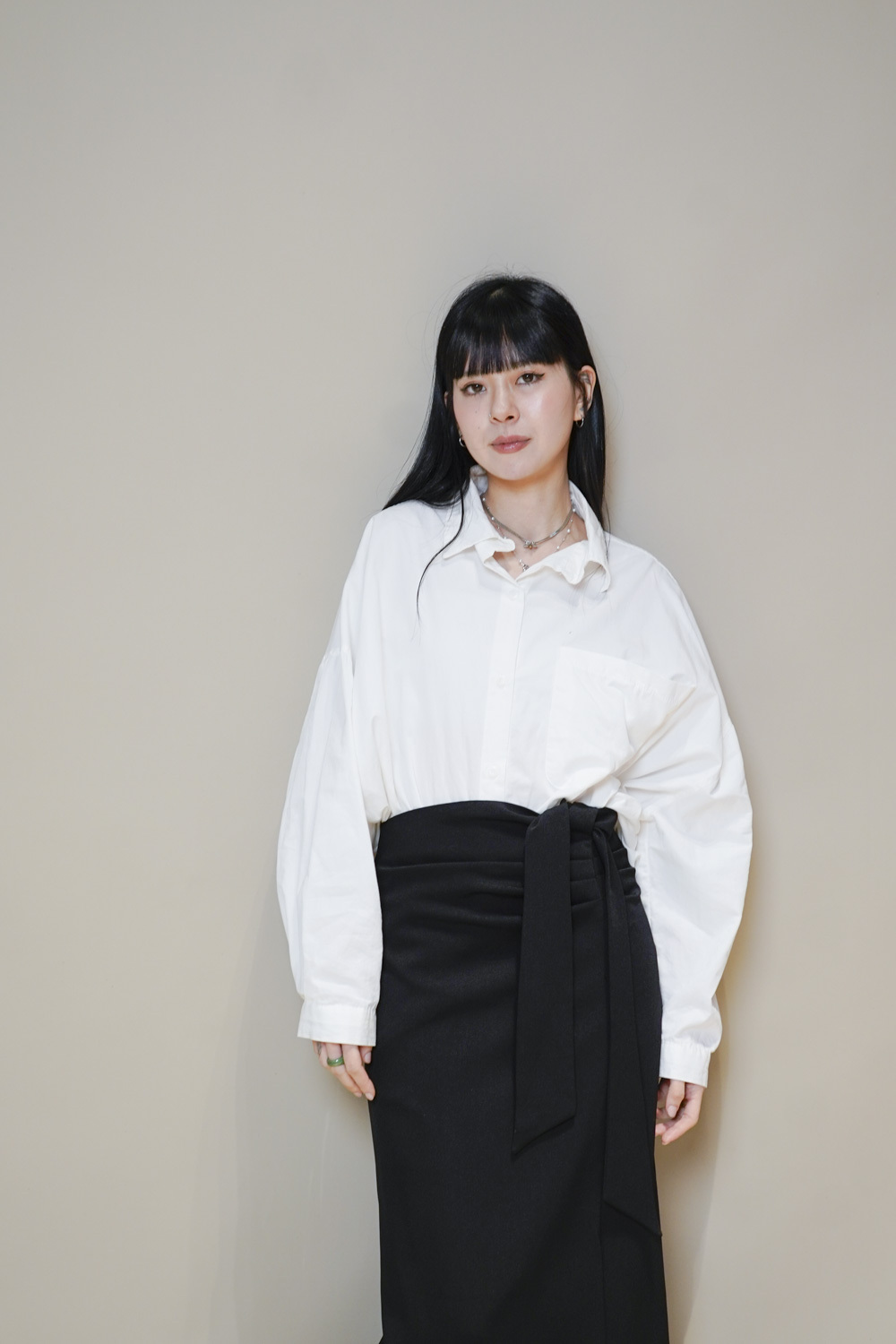 可斜綁襯衫/營造大蝴蝶結/增加造型感