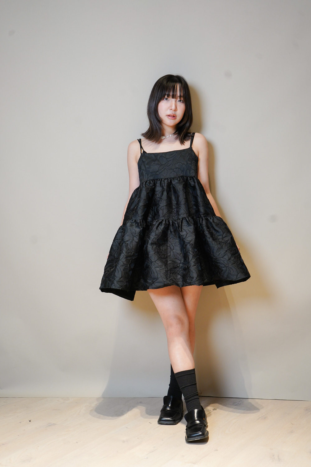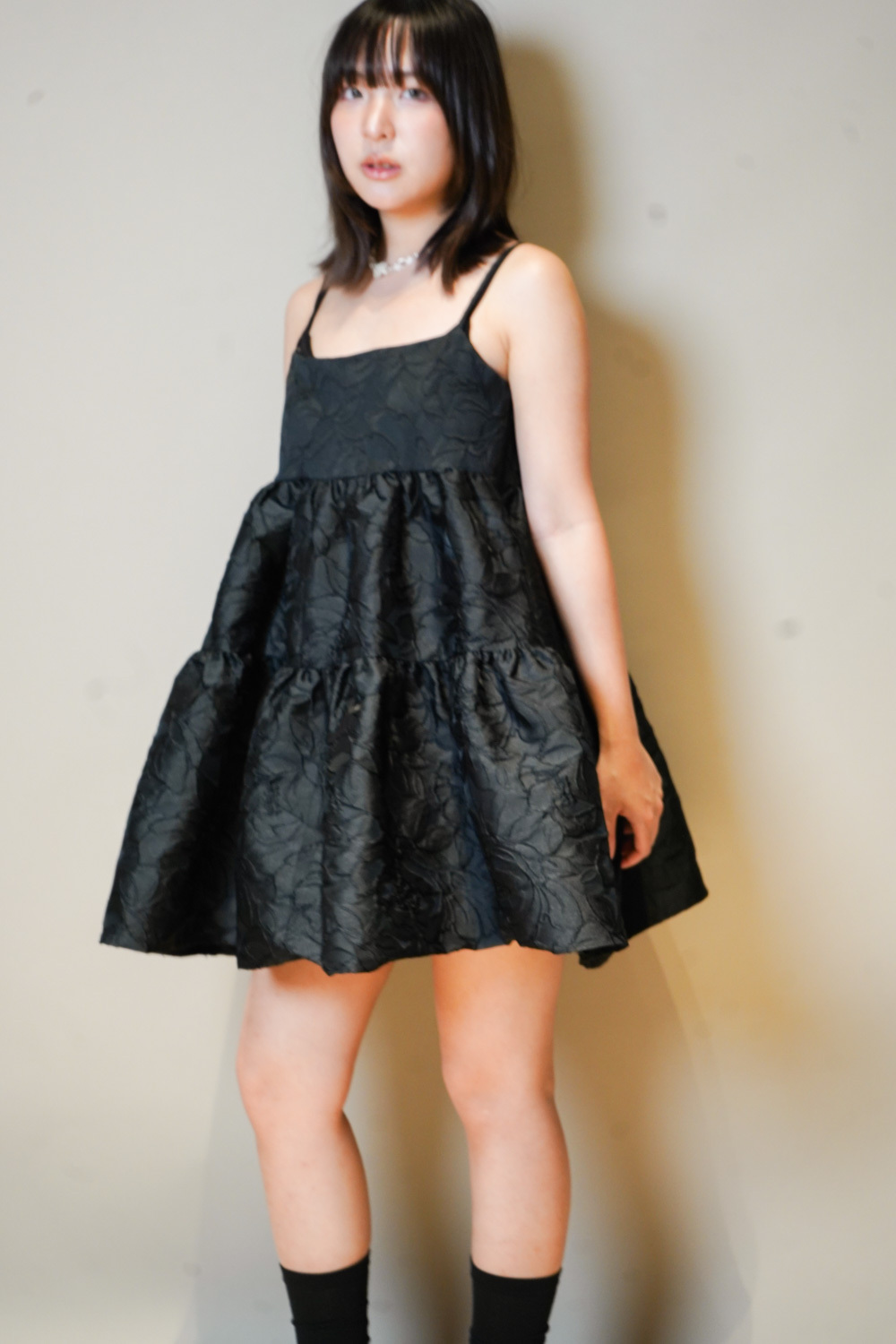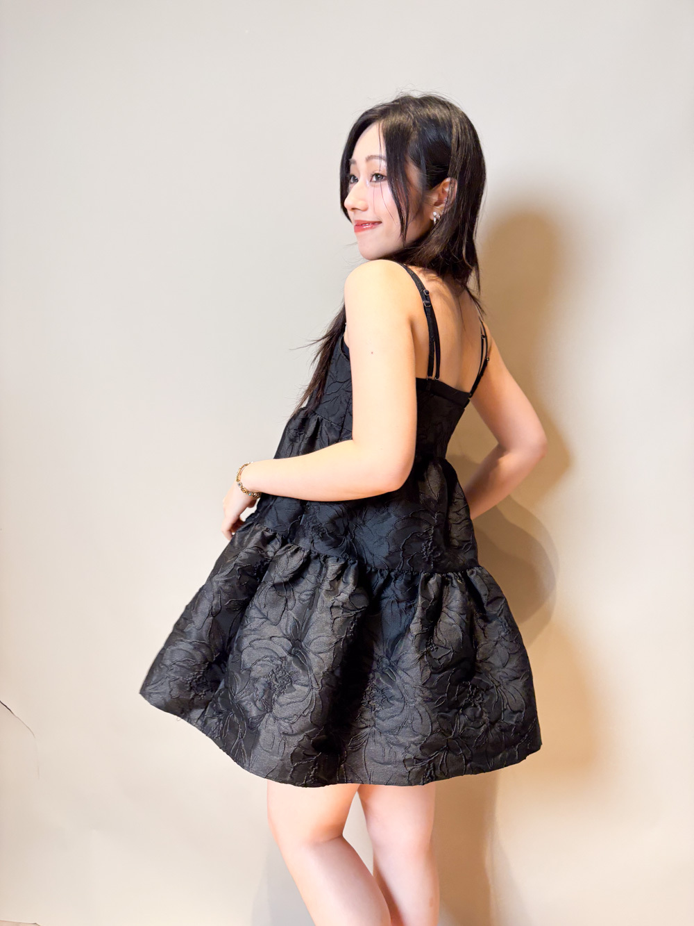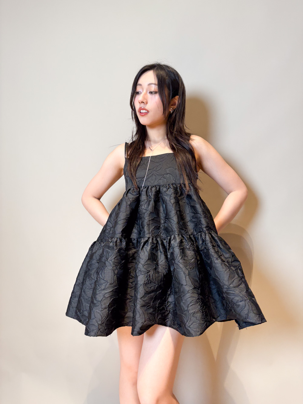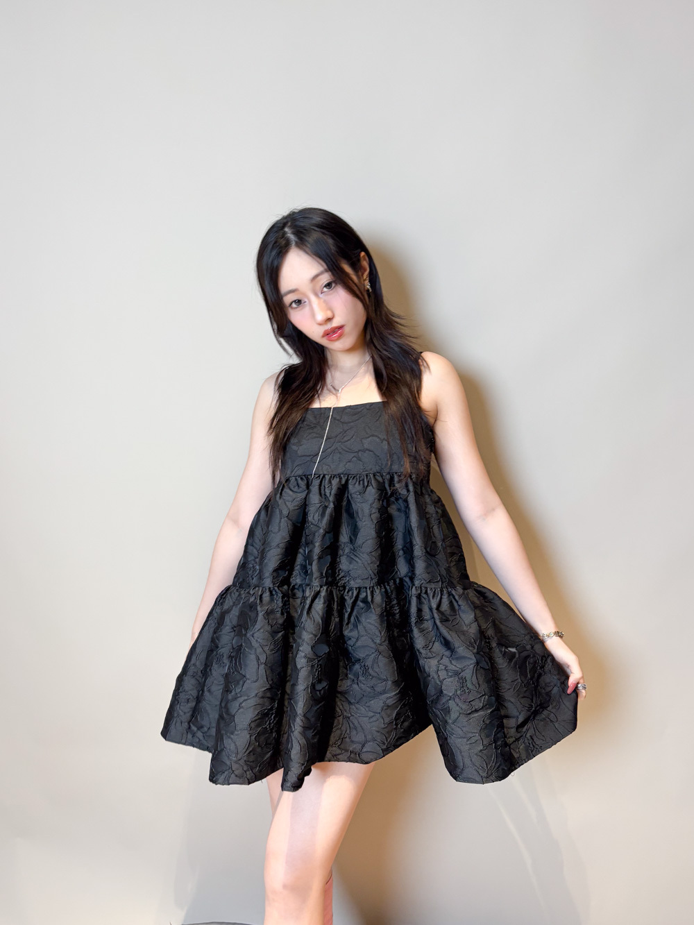 Love~Pearly floral pom pom dress (WHITE / BLACK)