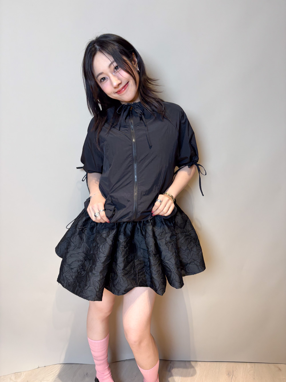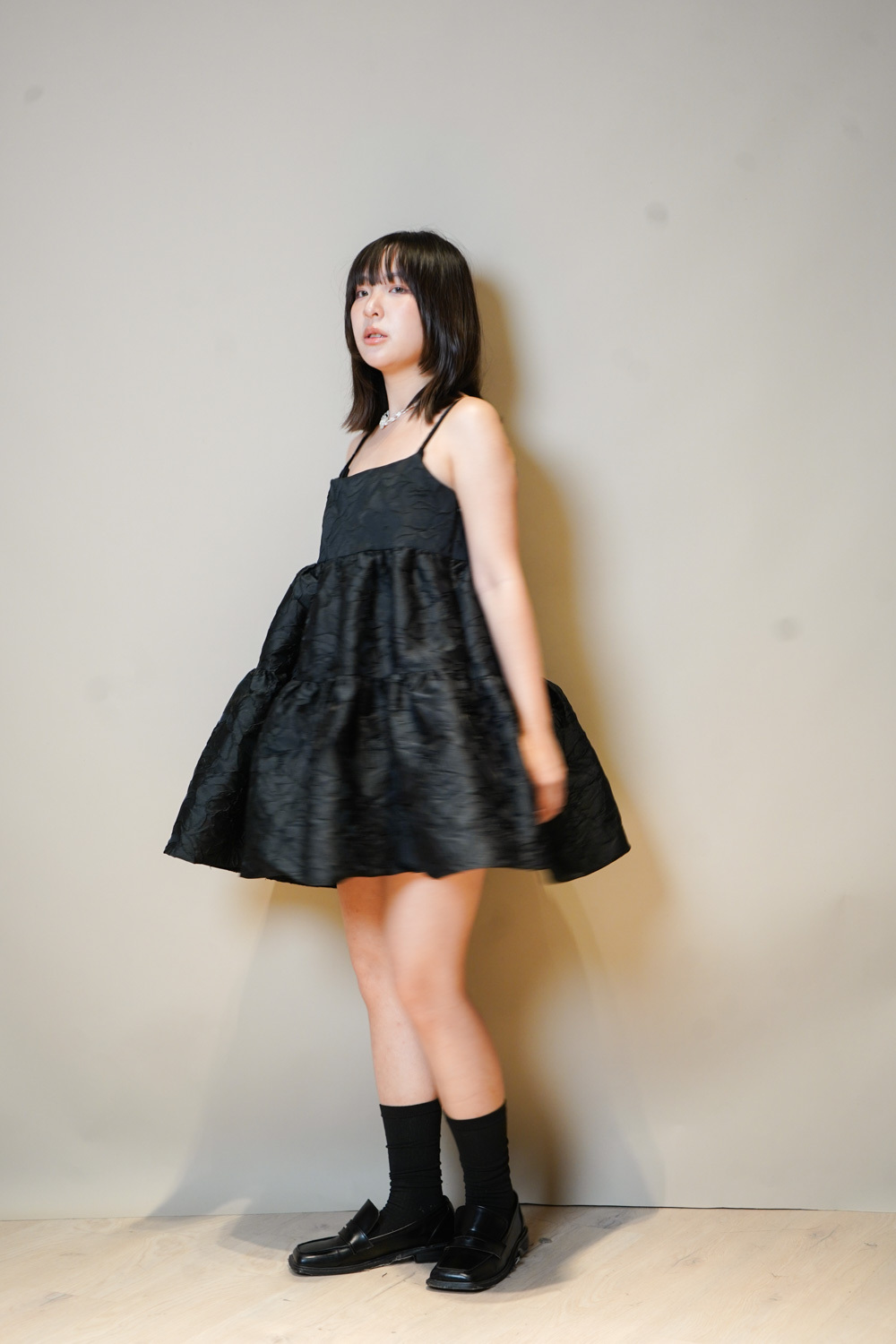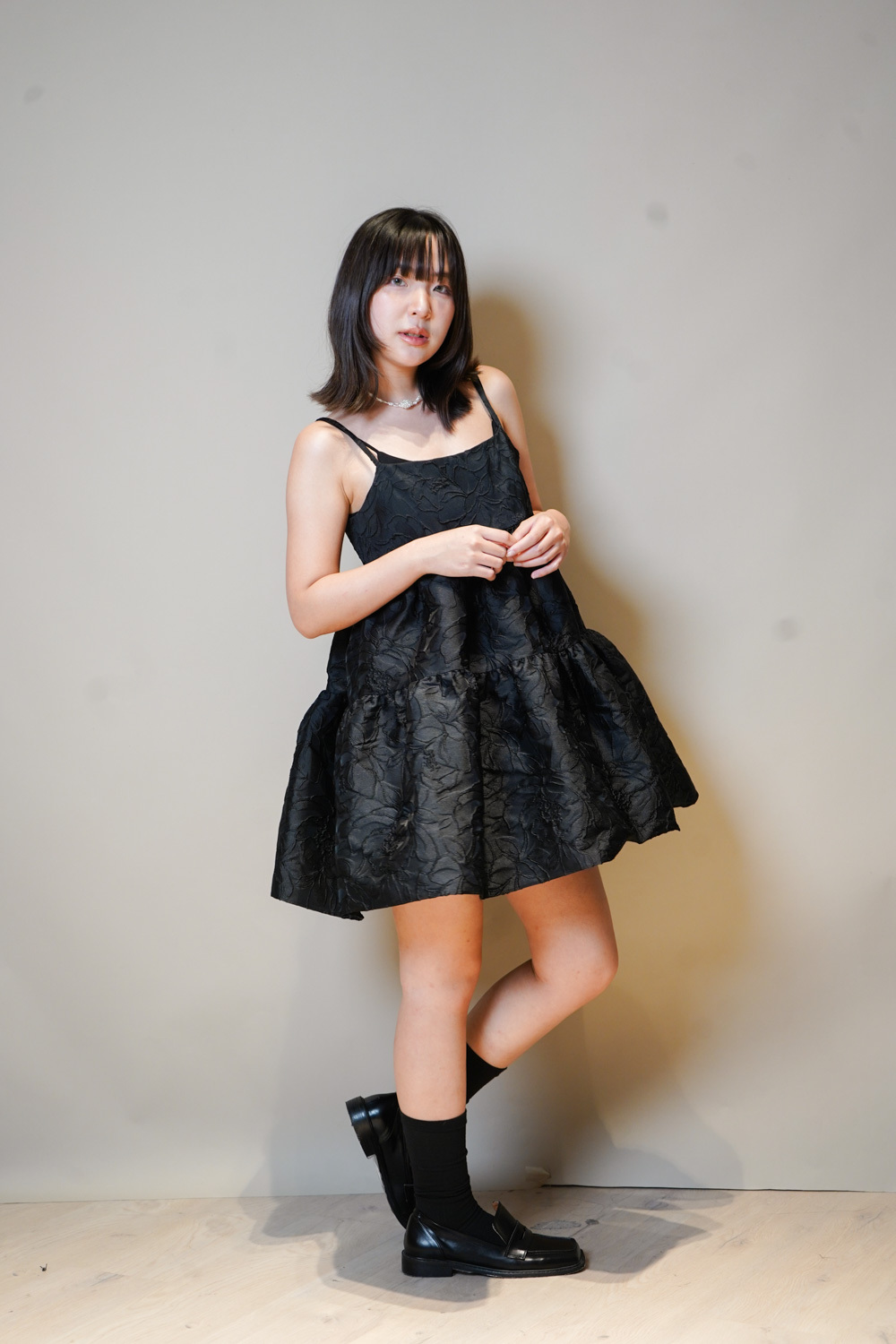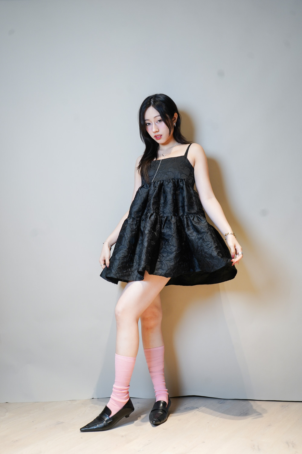 Love~Pearly floral pom pom dress (WHITE / BLACK)