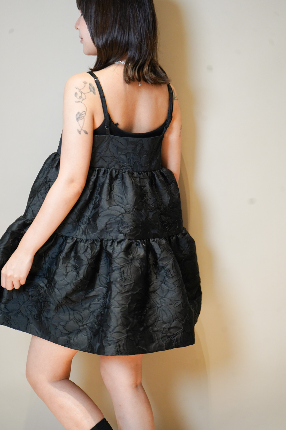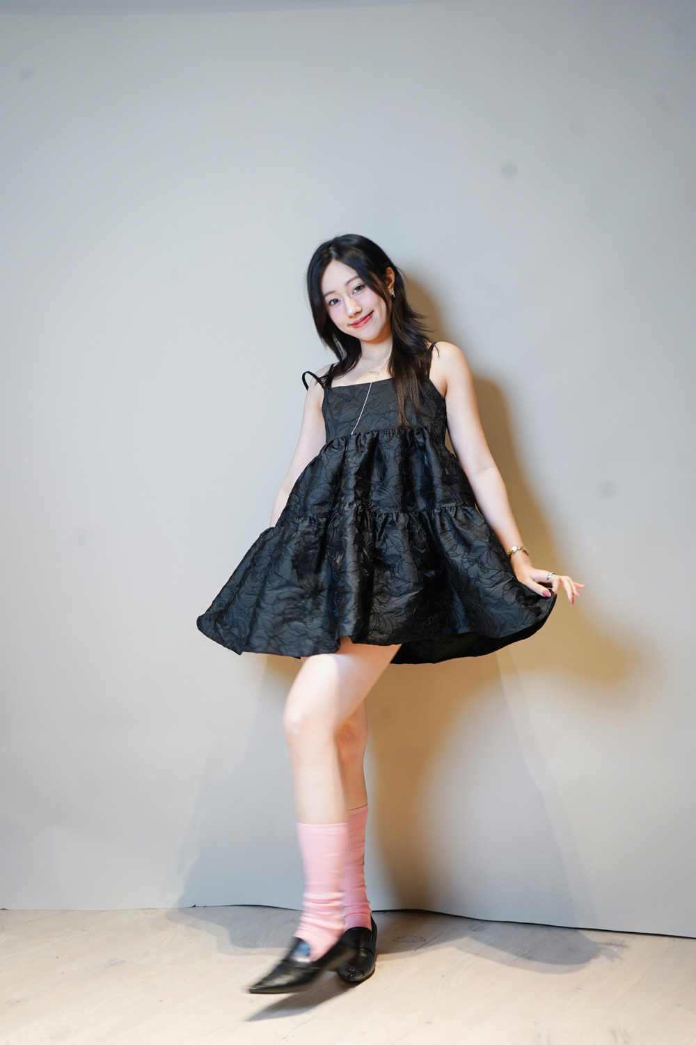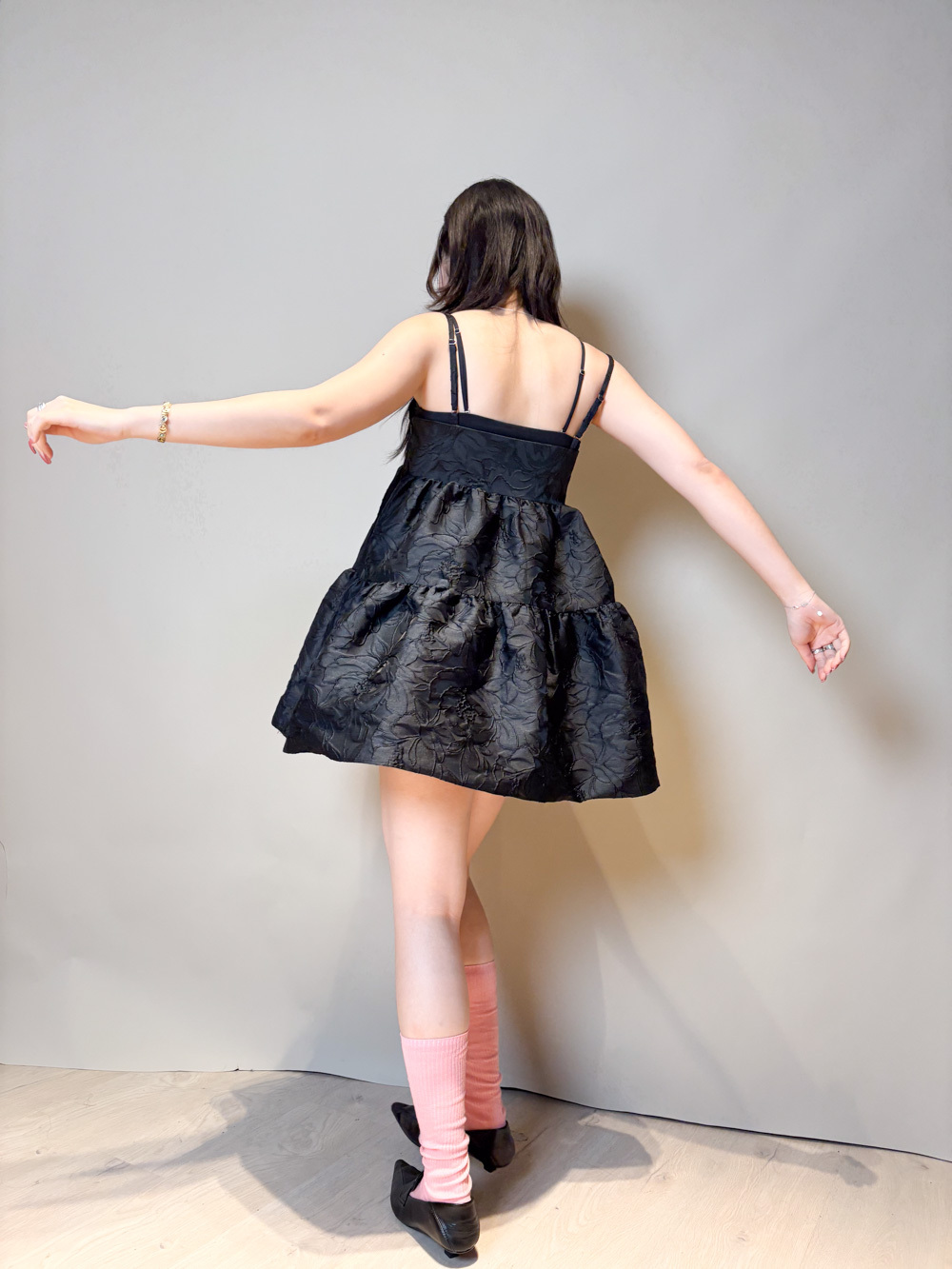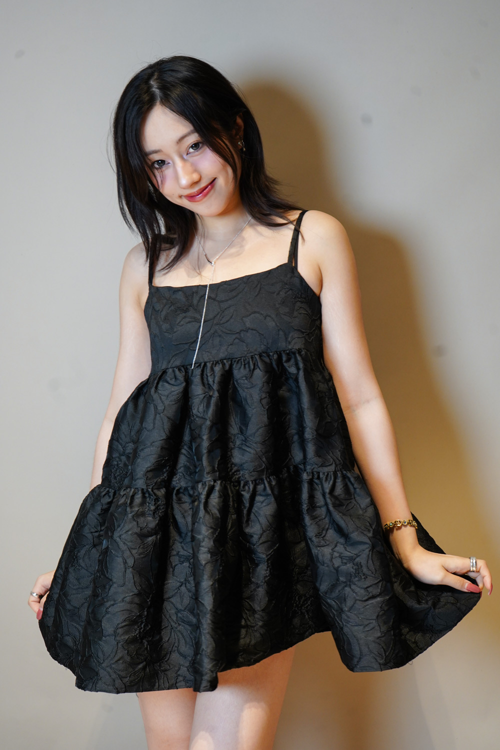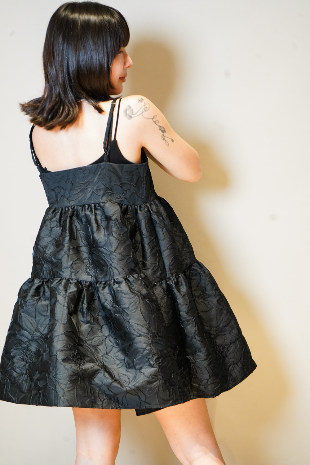 Love~Pearly floral pom pom dress (WHITE / BLACK)