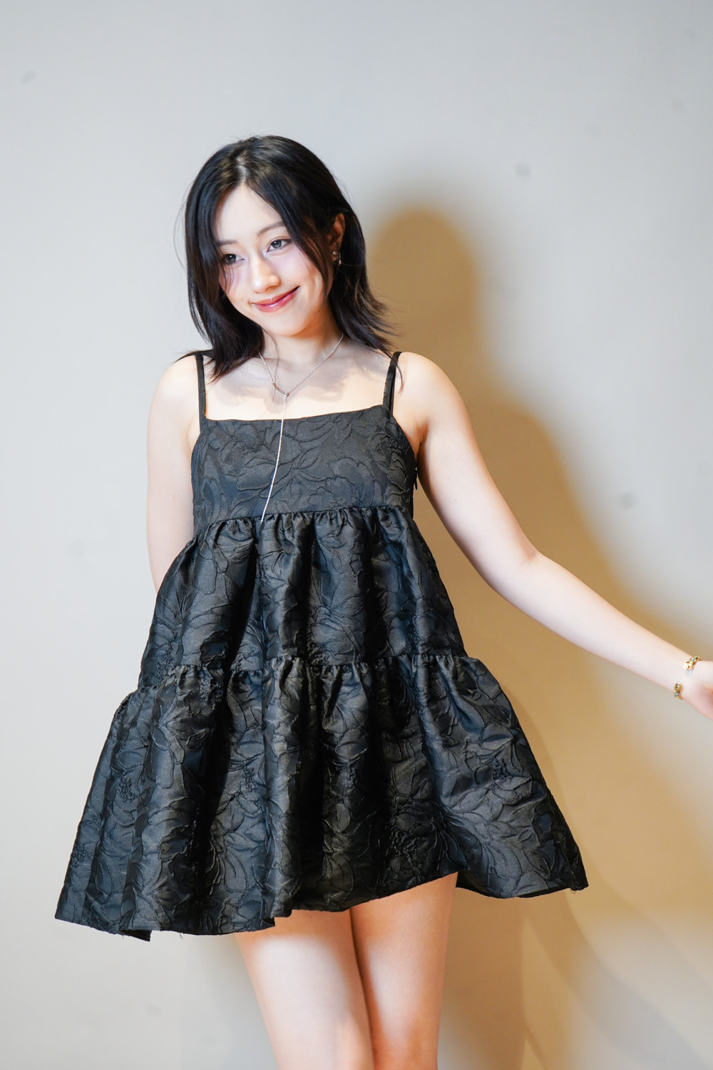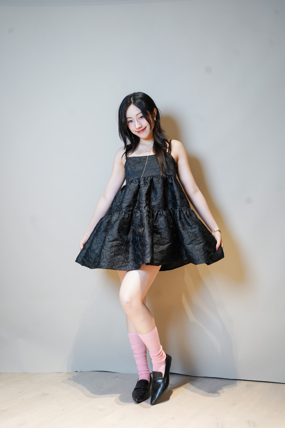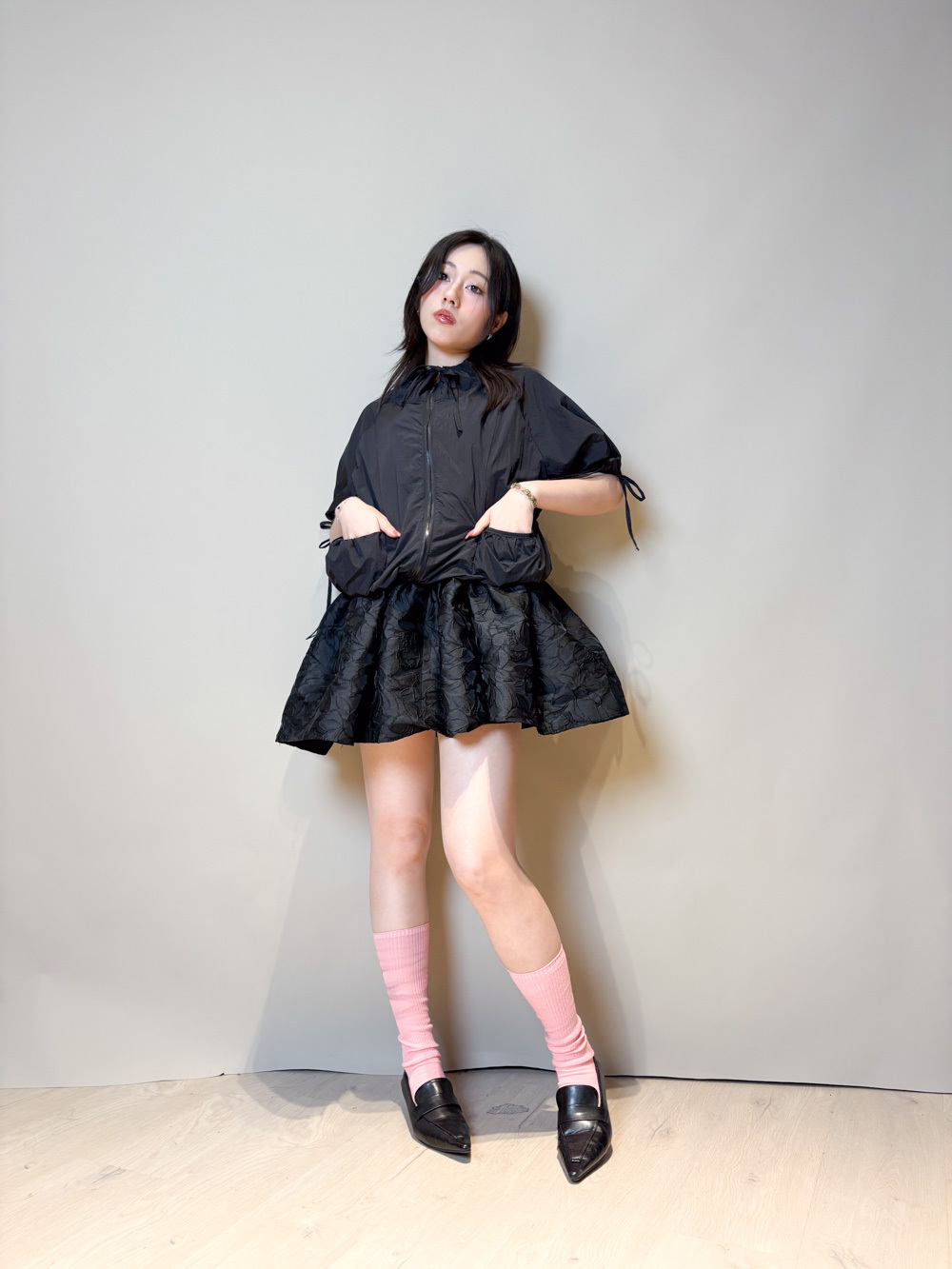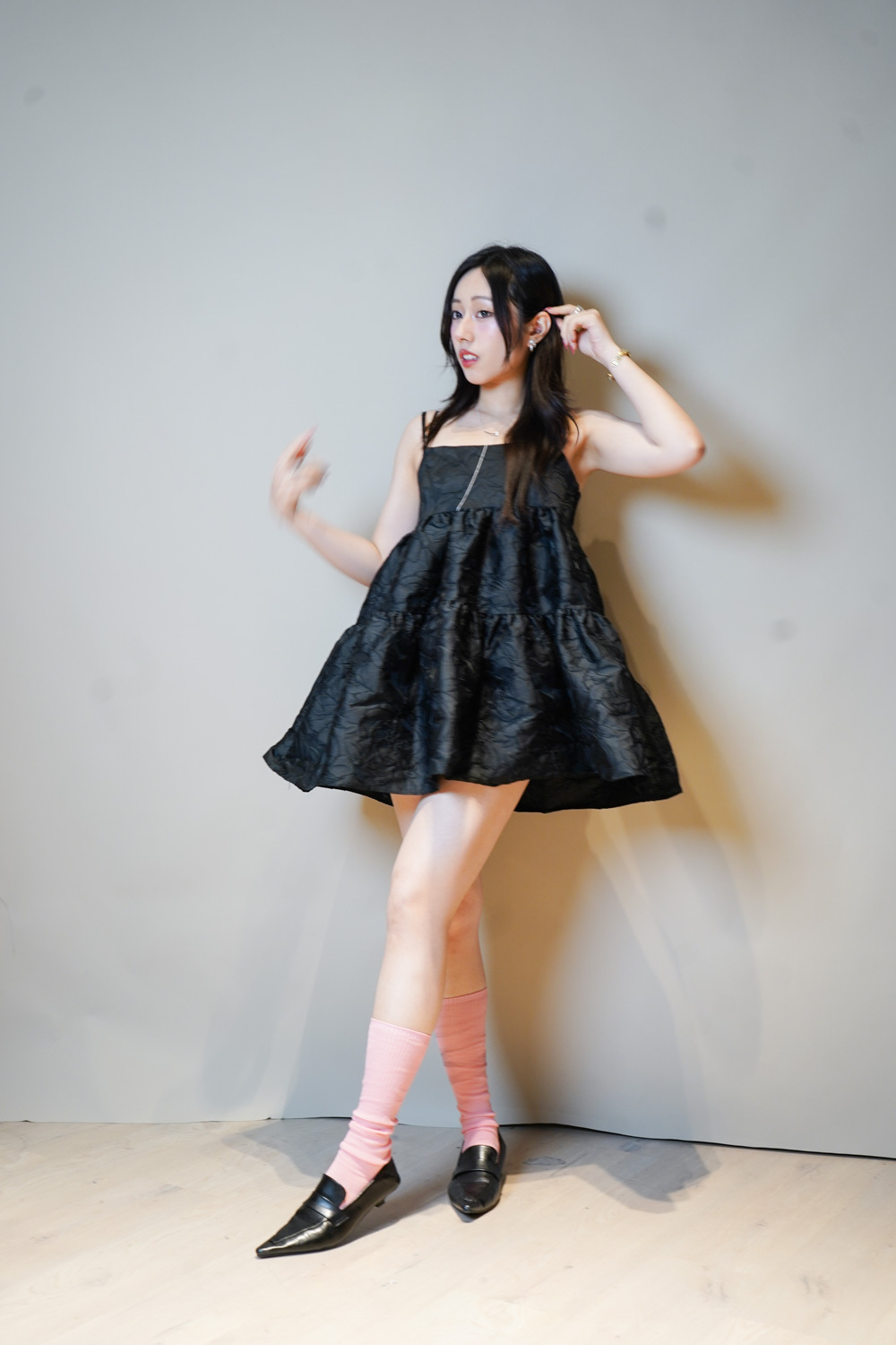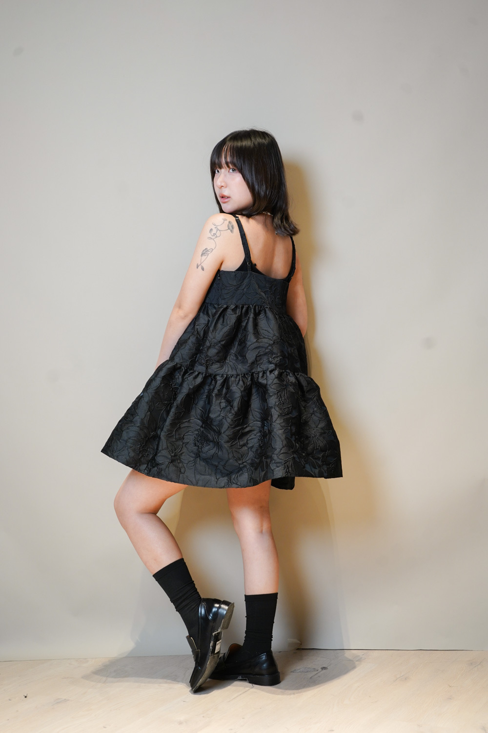 Love~Pearly floral pom pom dress (WHITE / BLACK)