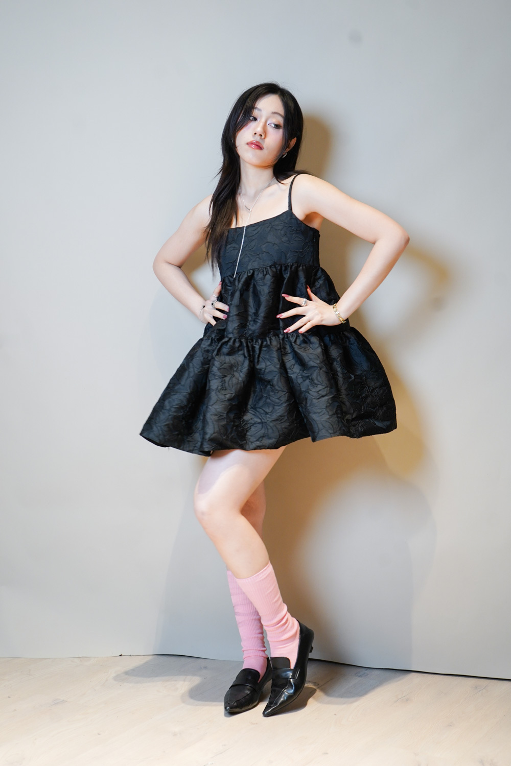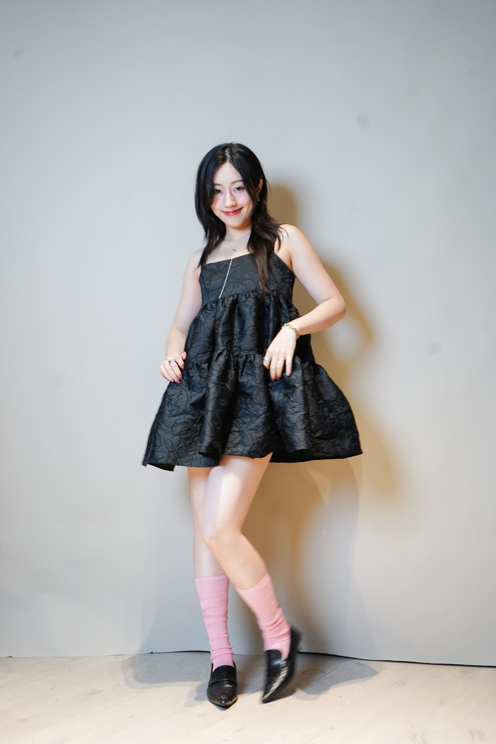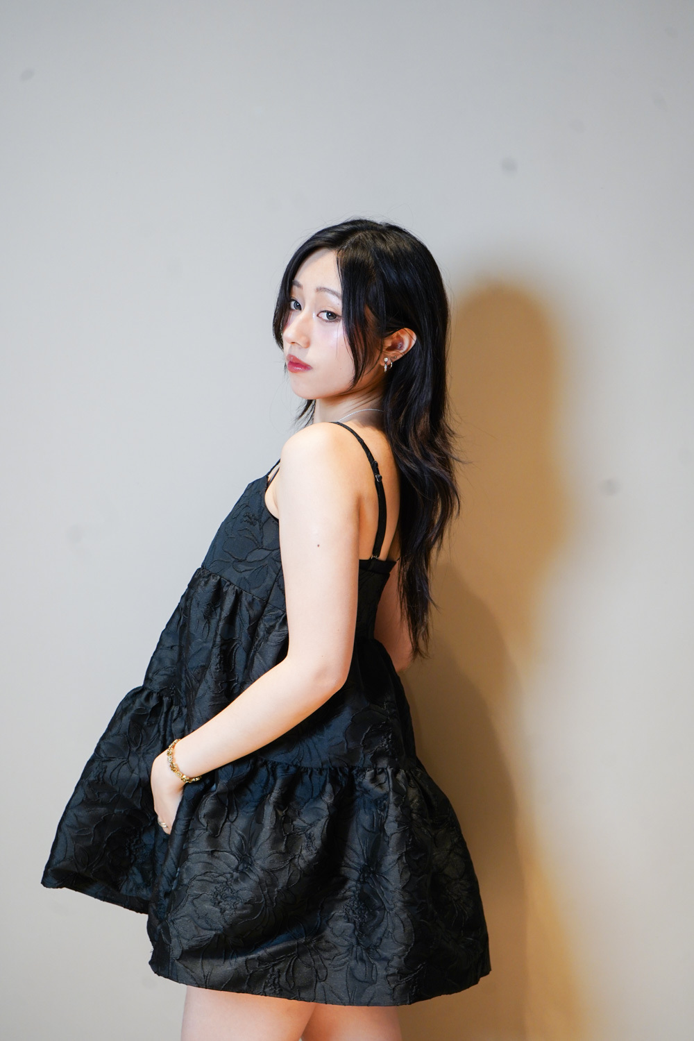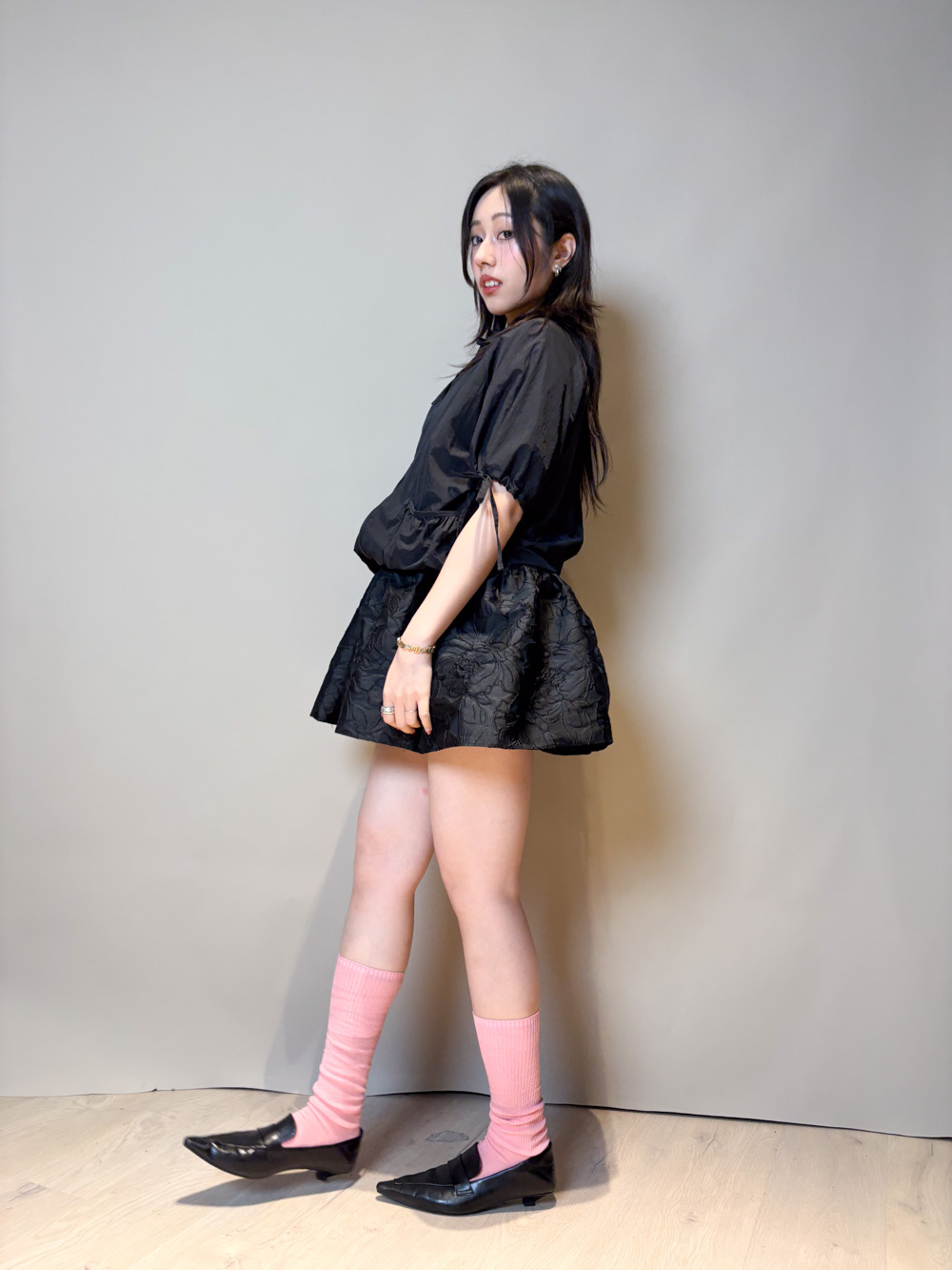Love~Pearly floral pom pom dress (WHITE / BLACK)