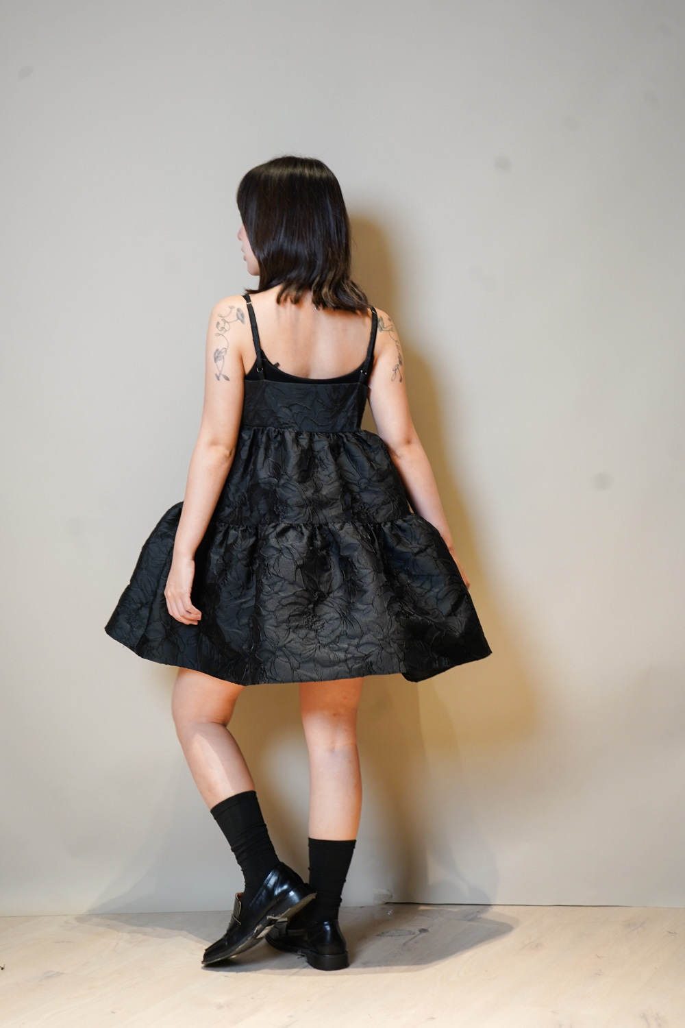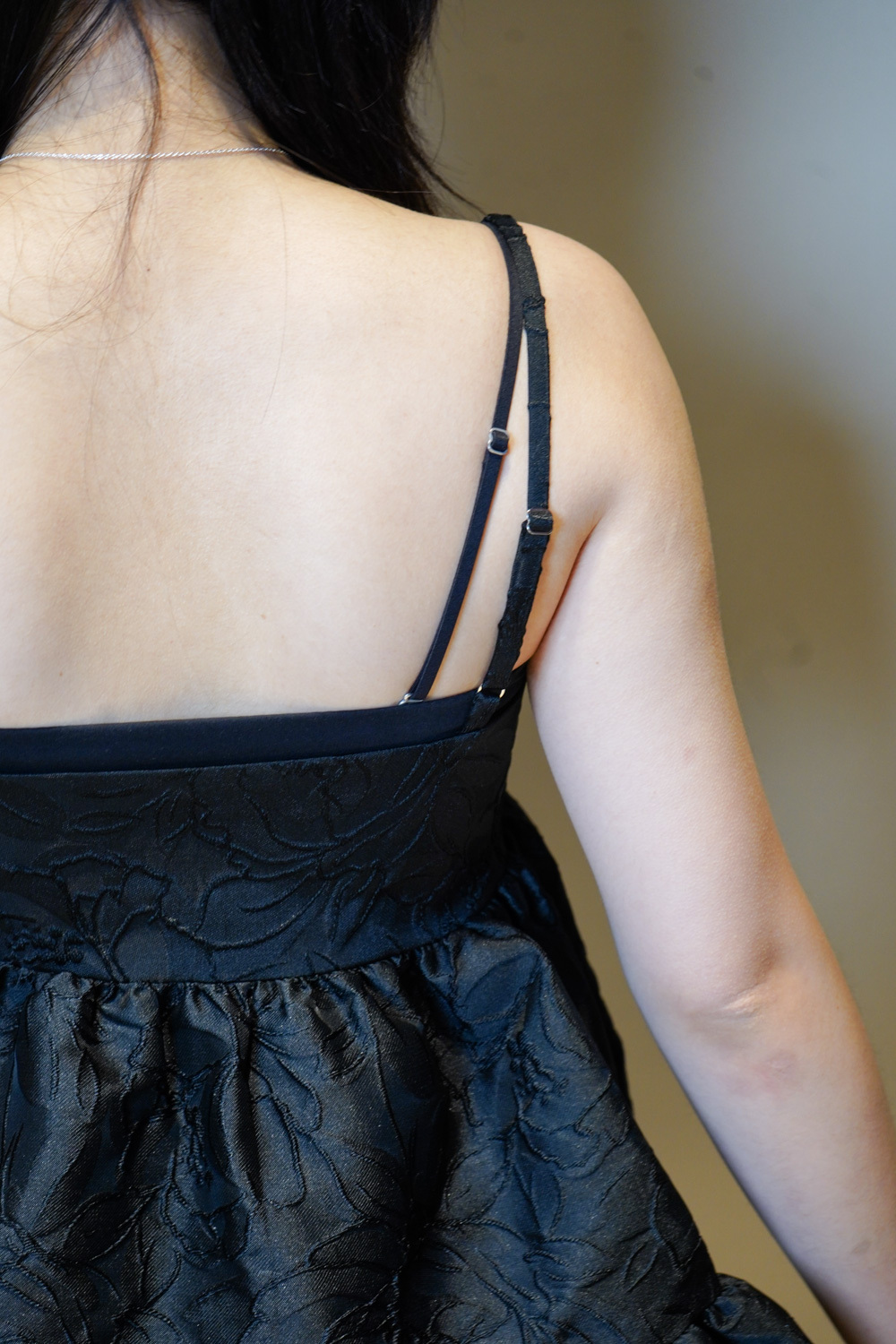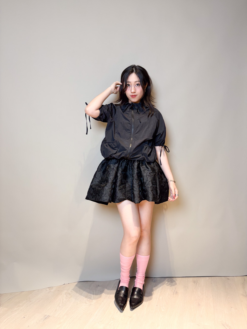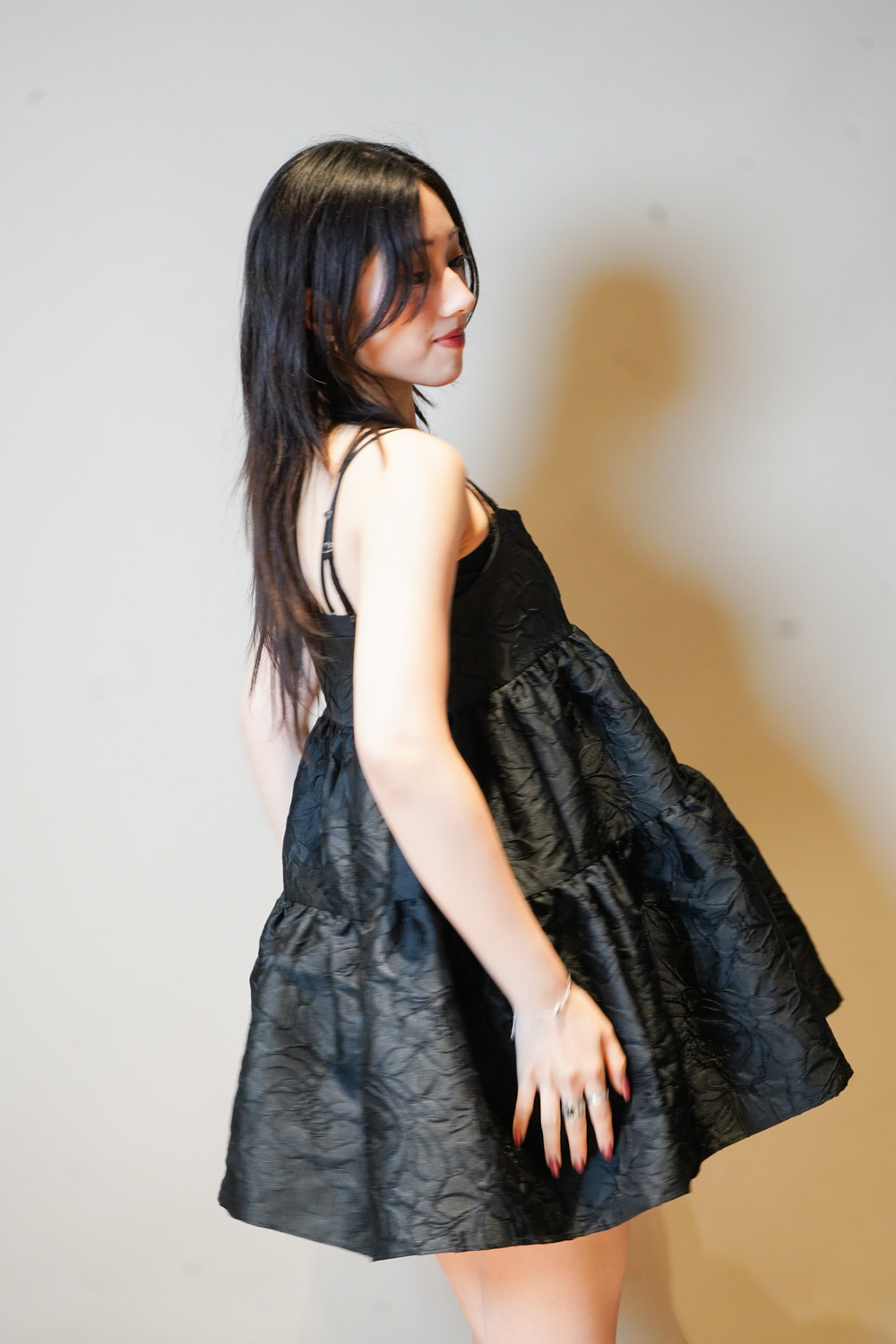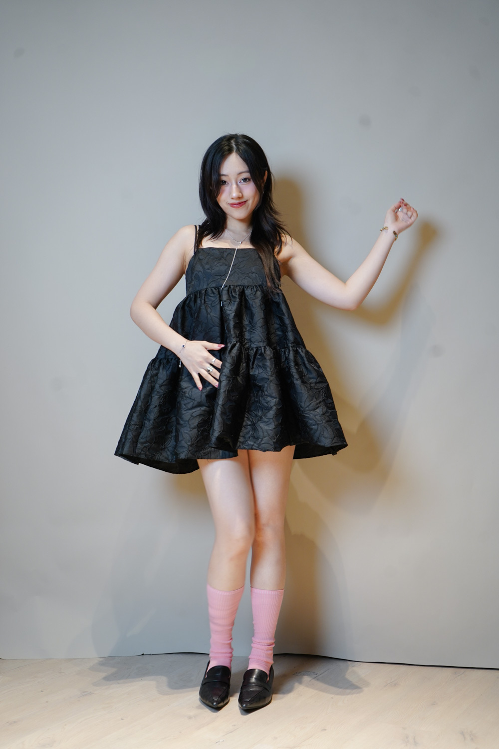 Love~Pearly floral pom pom dress (WHITE / BLACK)