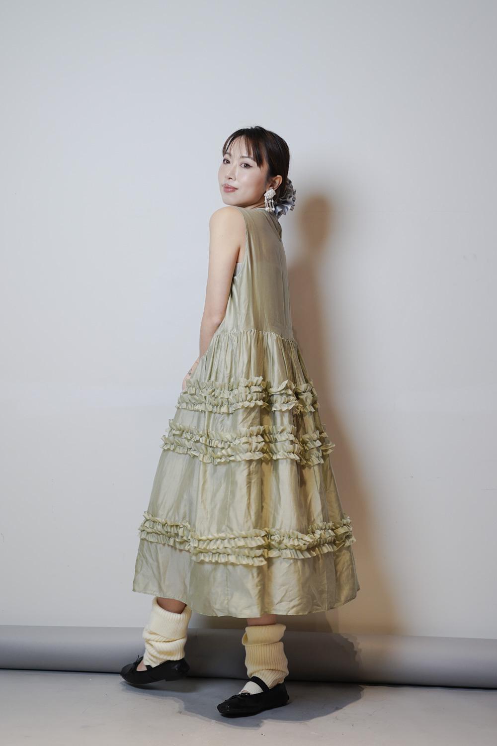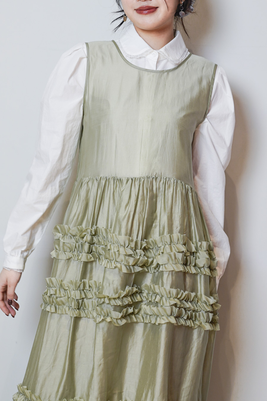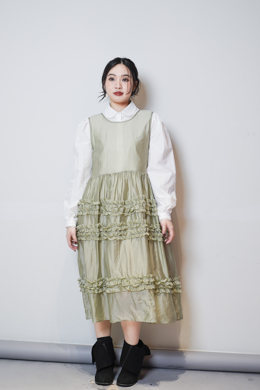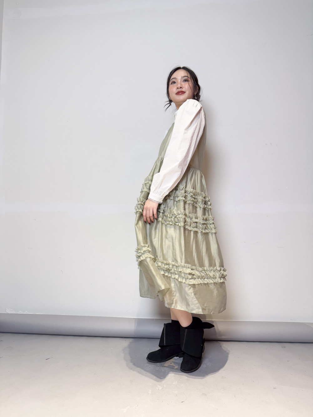 pearly ruffle Mia dress (WHITE/ GREEN)