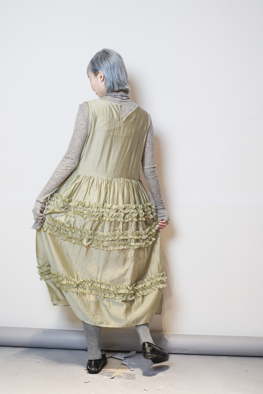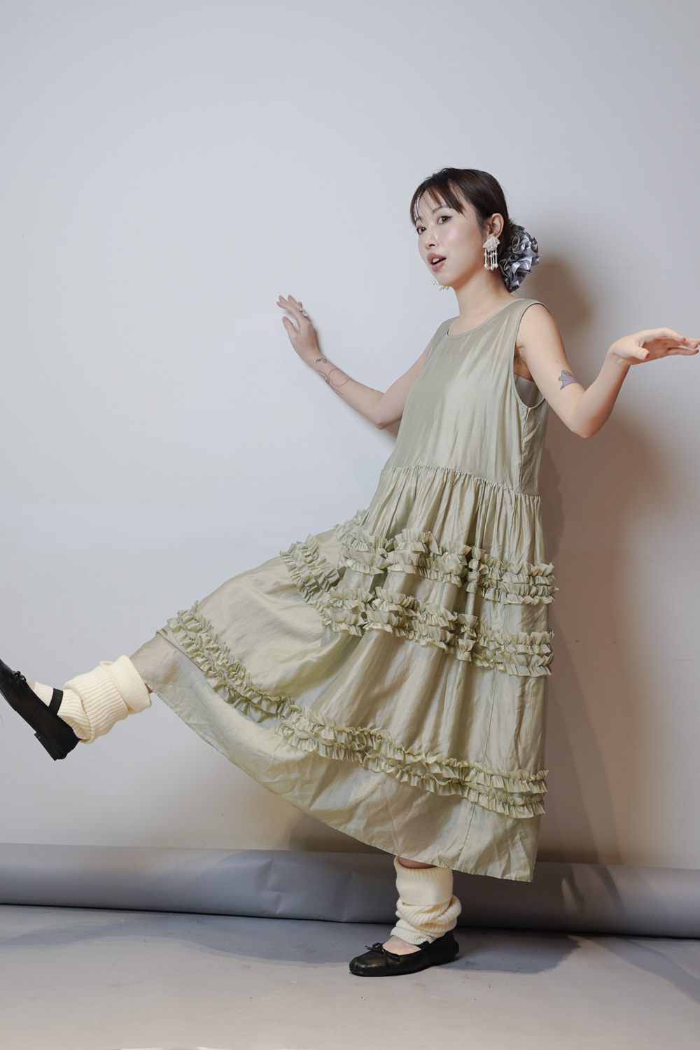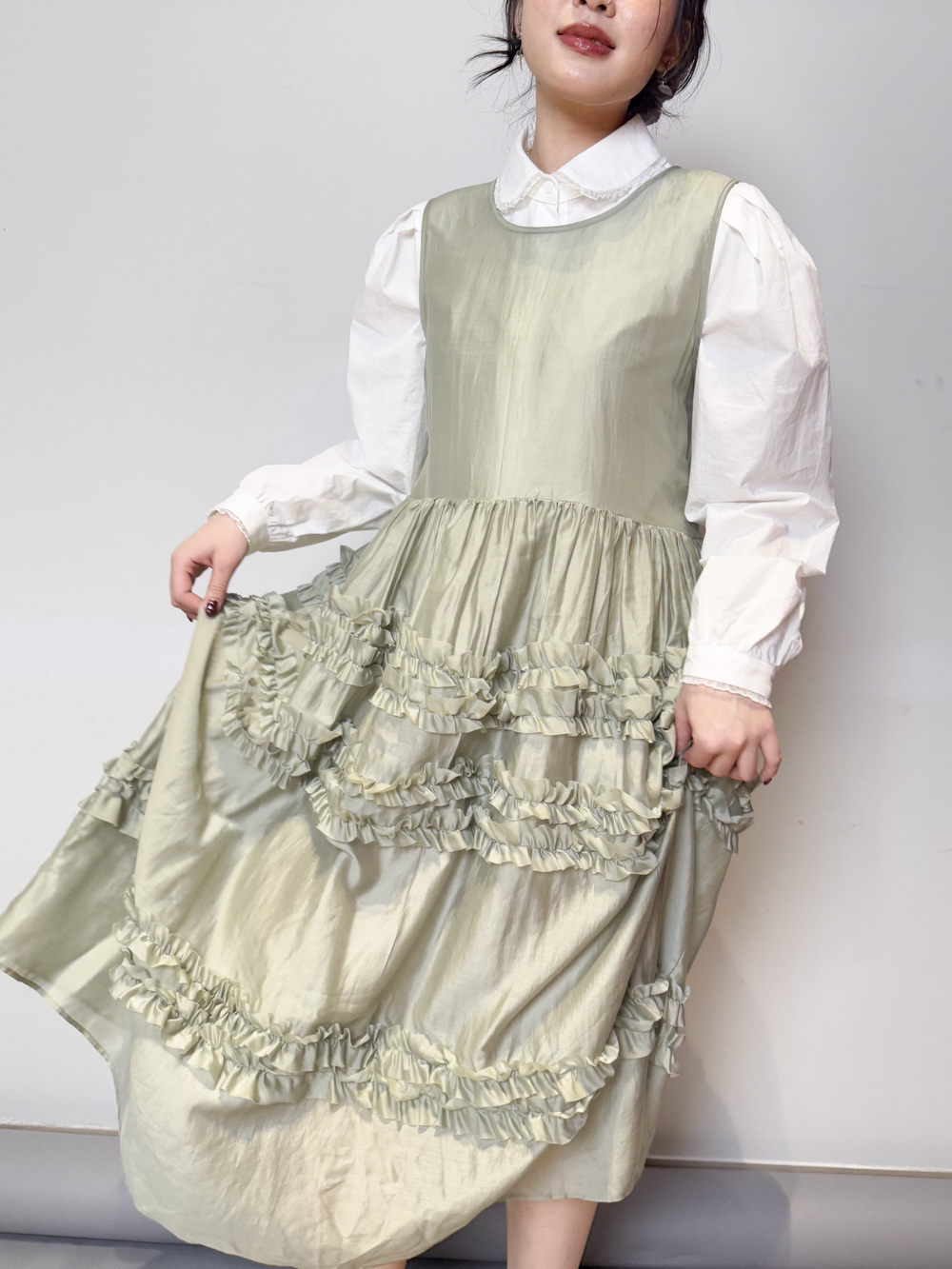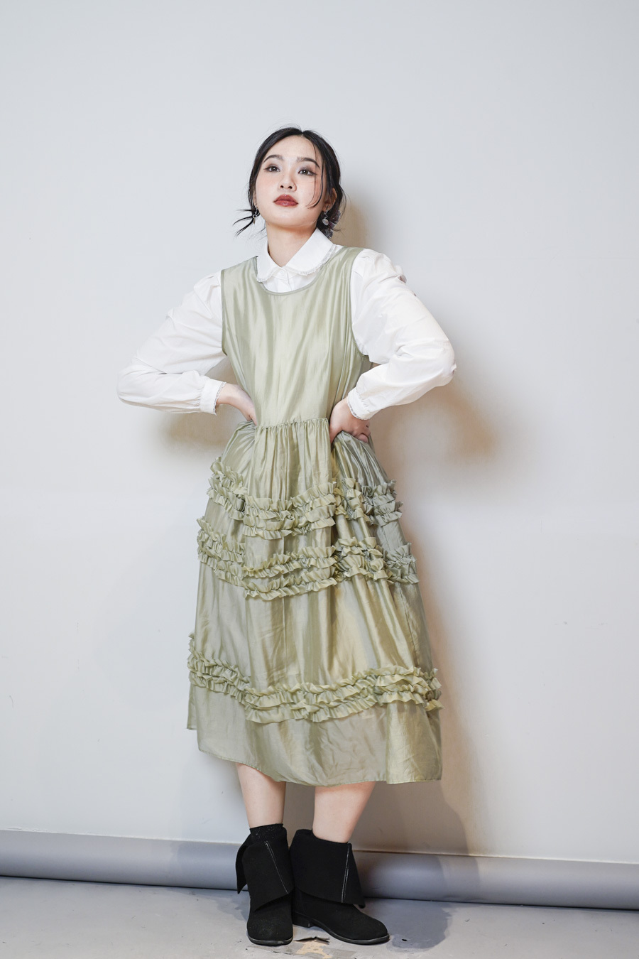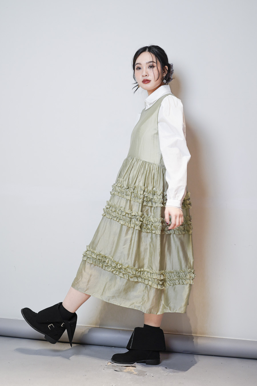 pearly ruffle Mia dress (WHITE/ GREEN)
