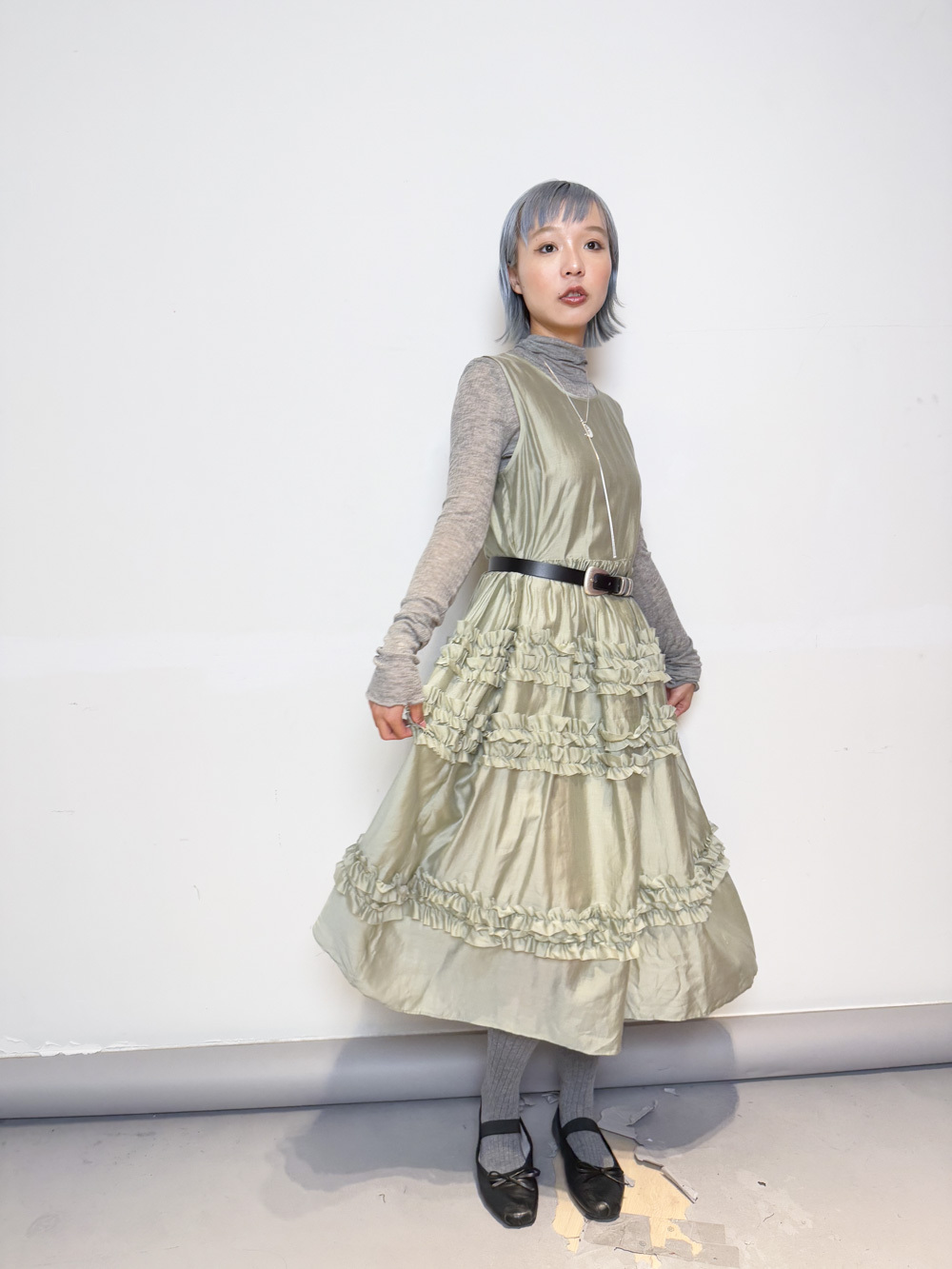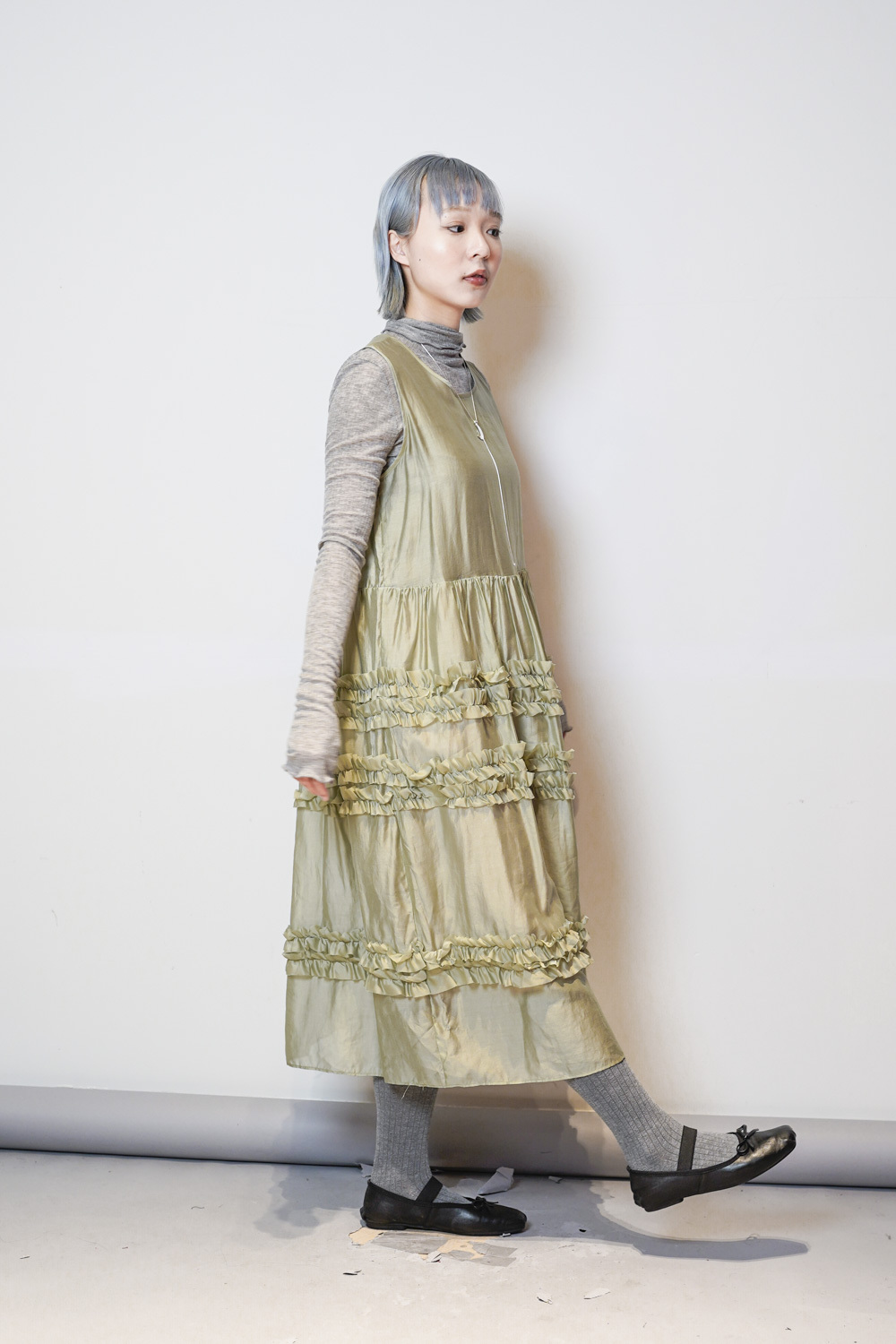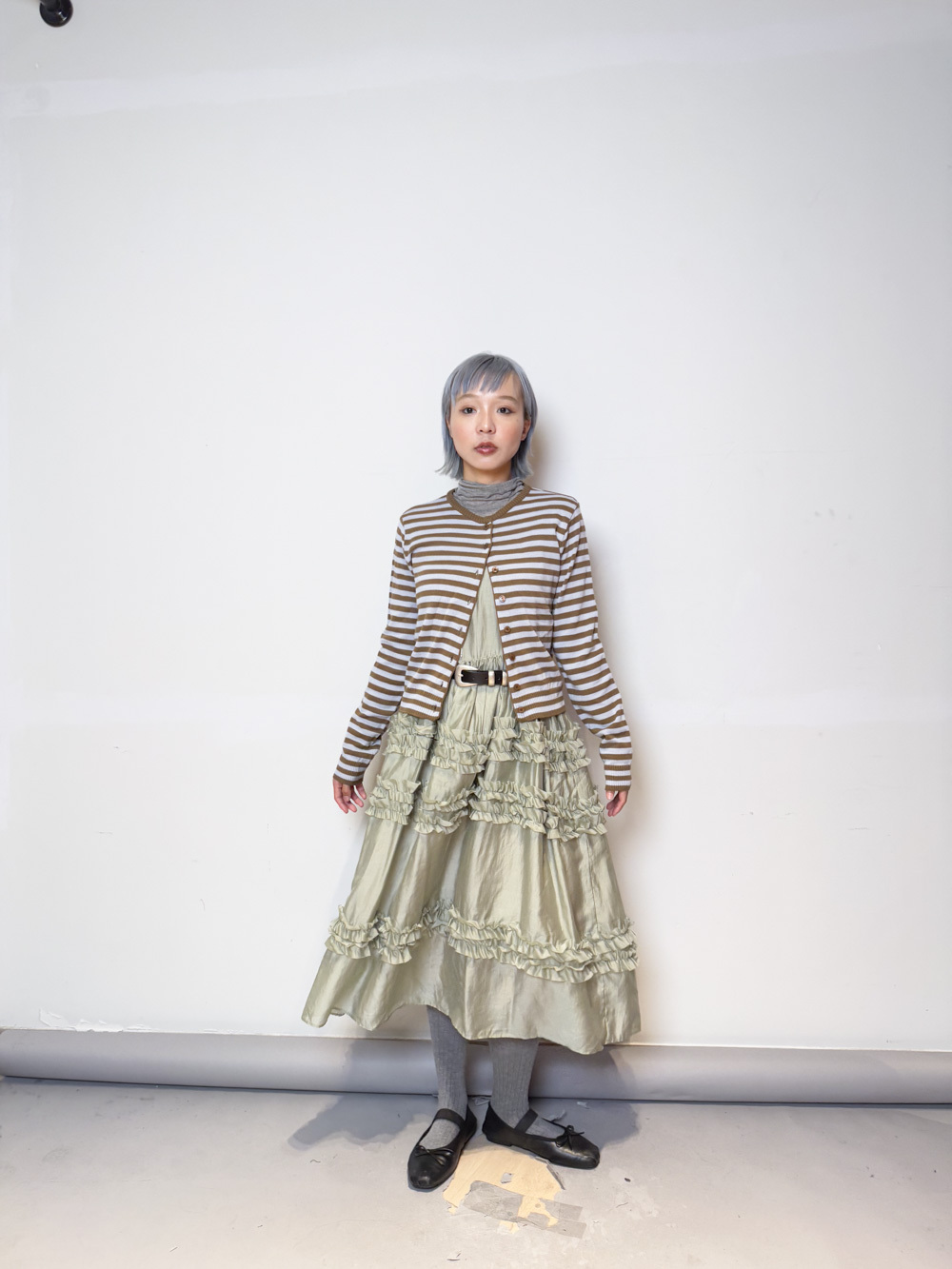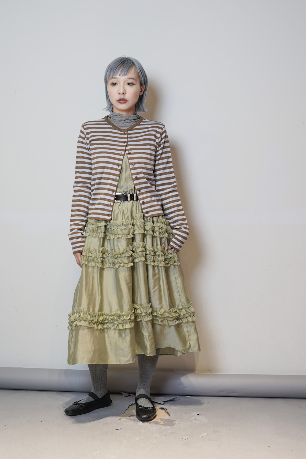 pearly ruffle Mia dress (WHITE/ GREEN)