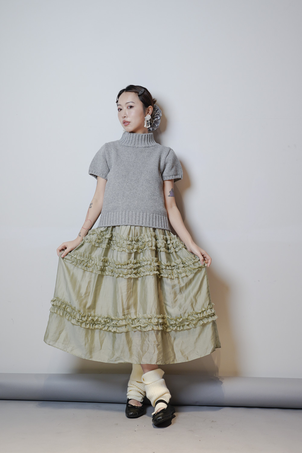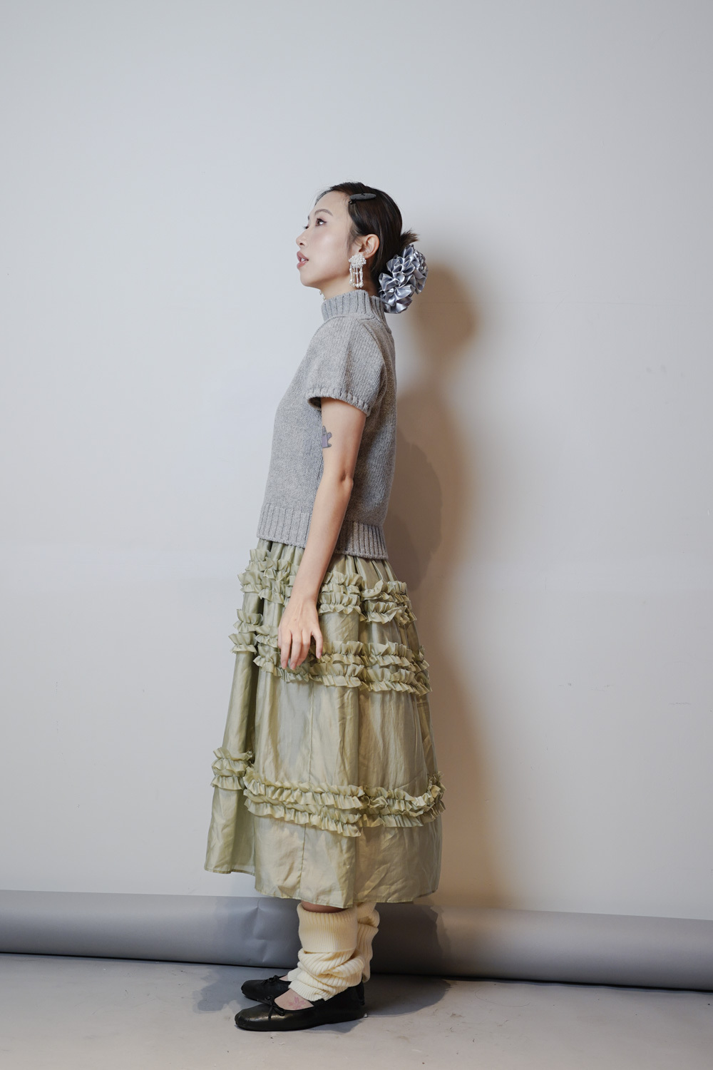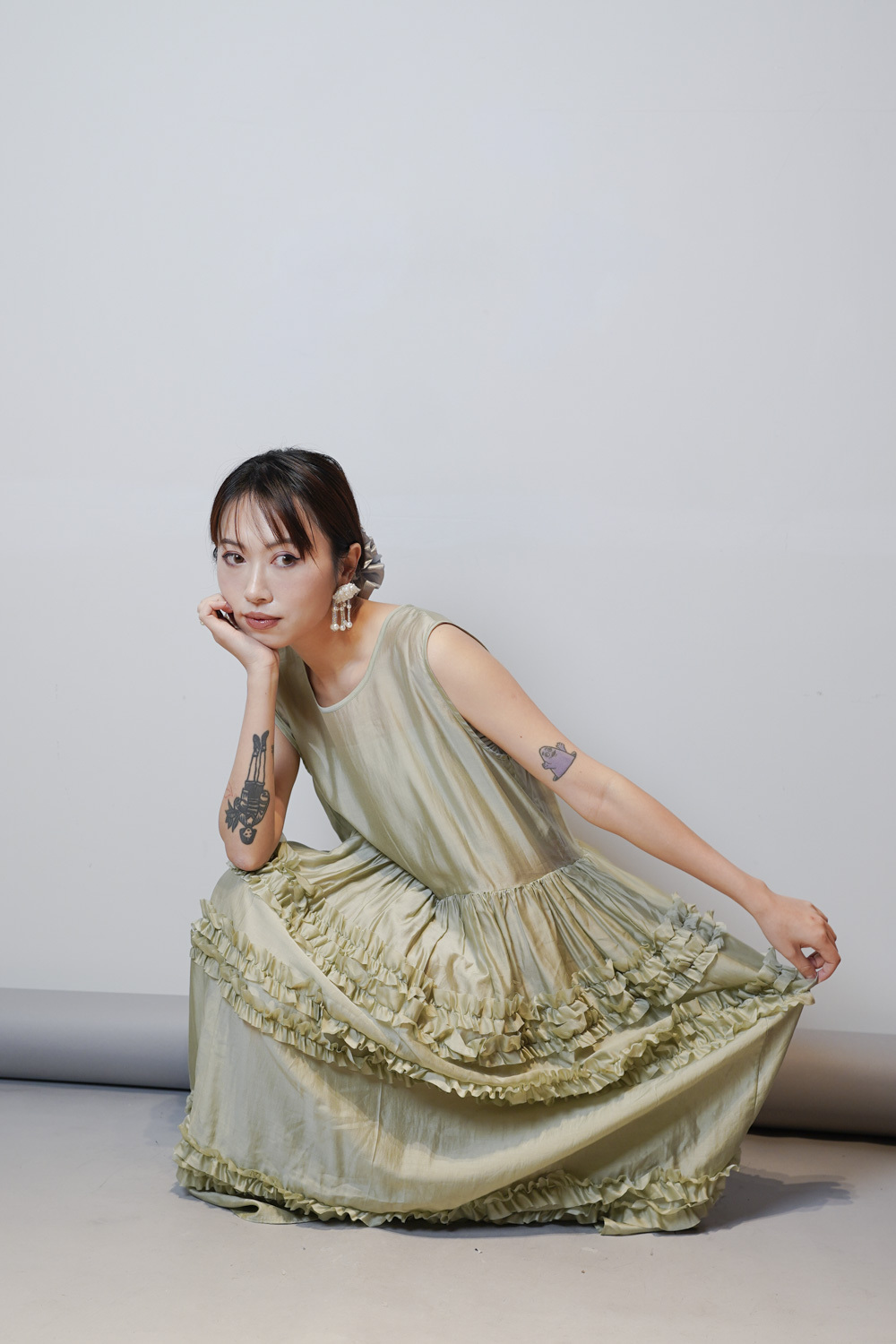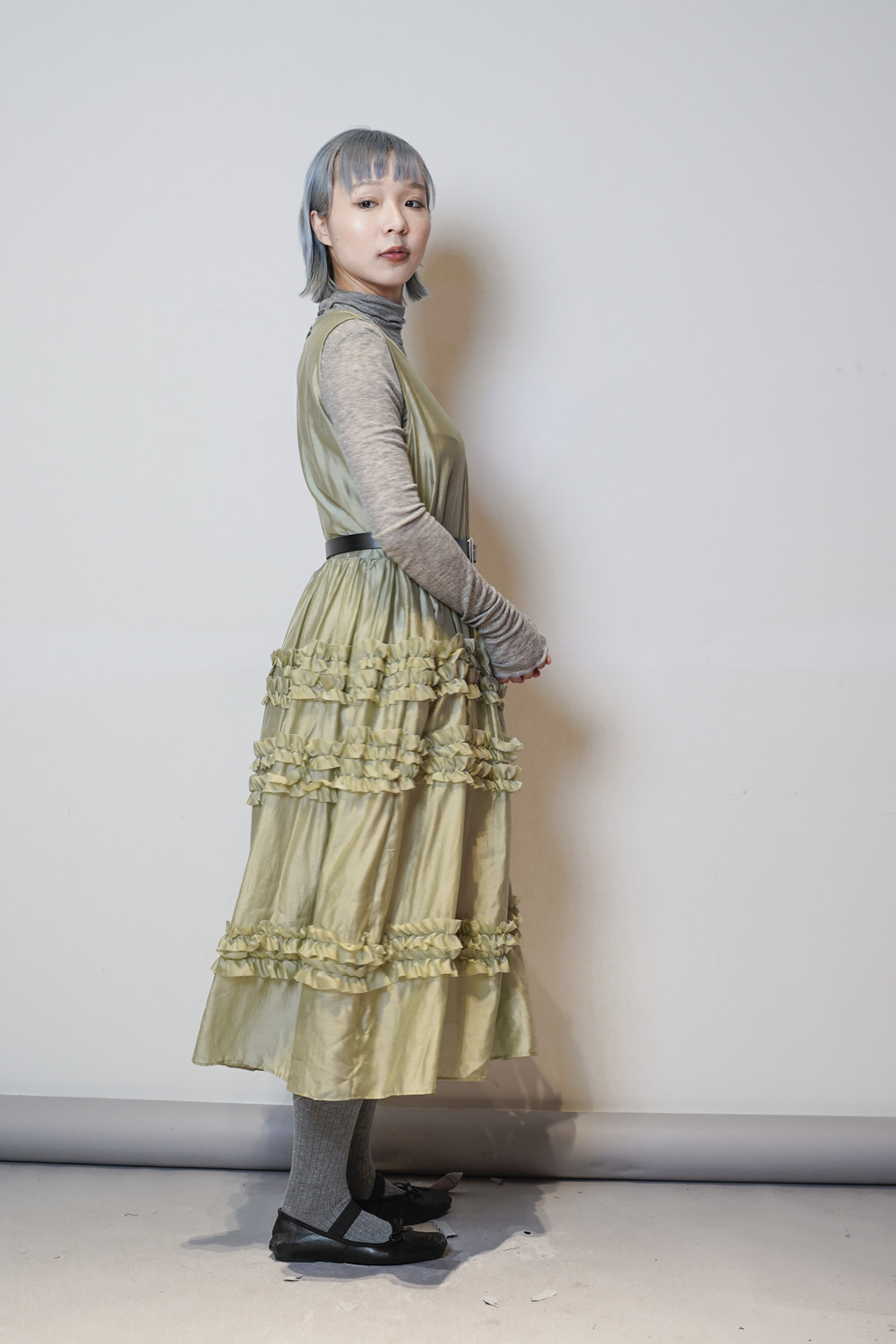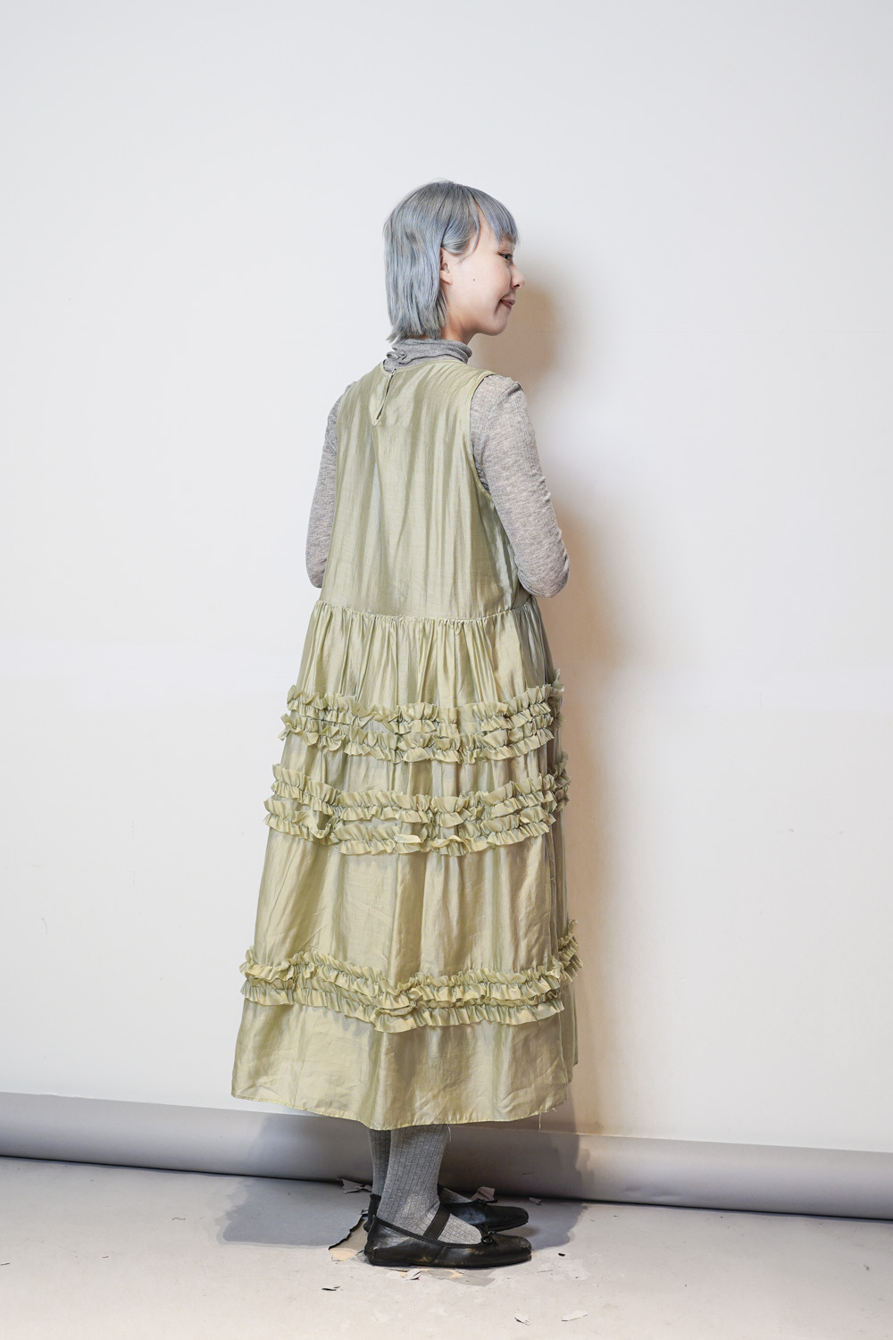 pearly ruffle Mia dress (WHITE/ GREEN)