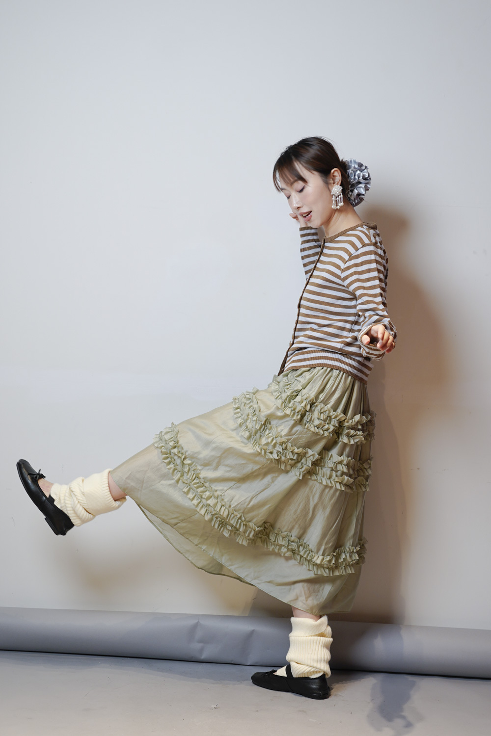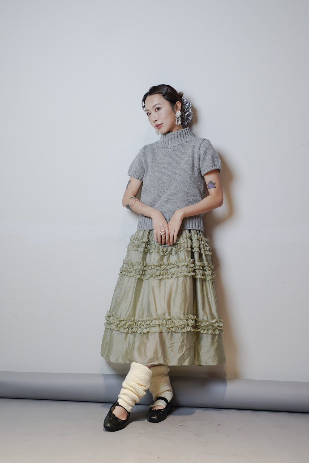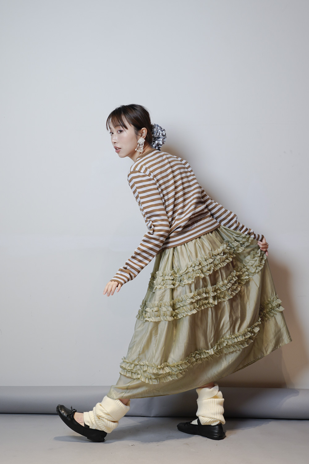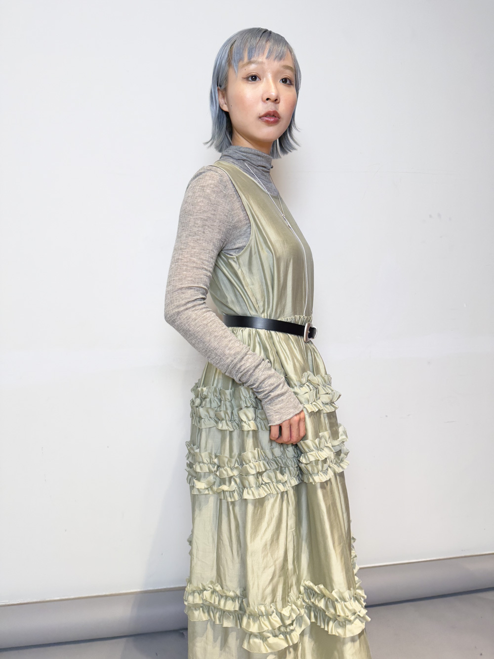 pearly ruffle Mia dress (WHITE/ GREEN)