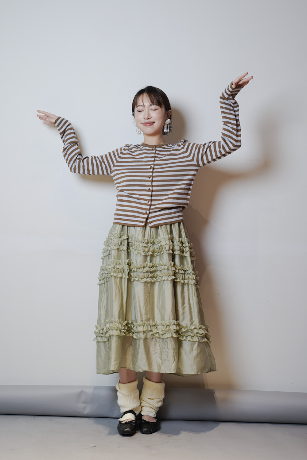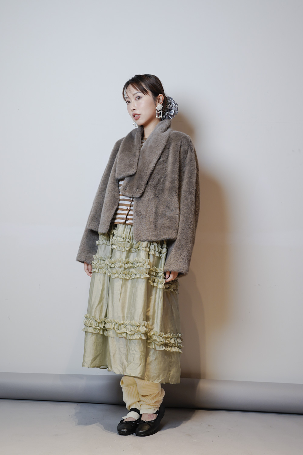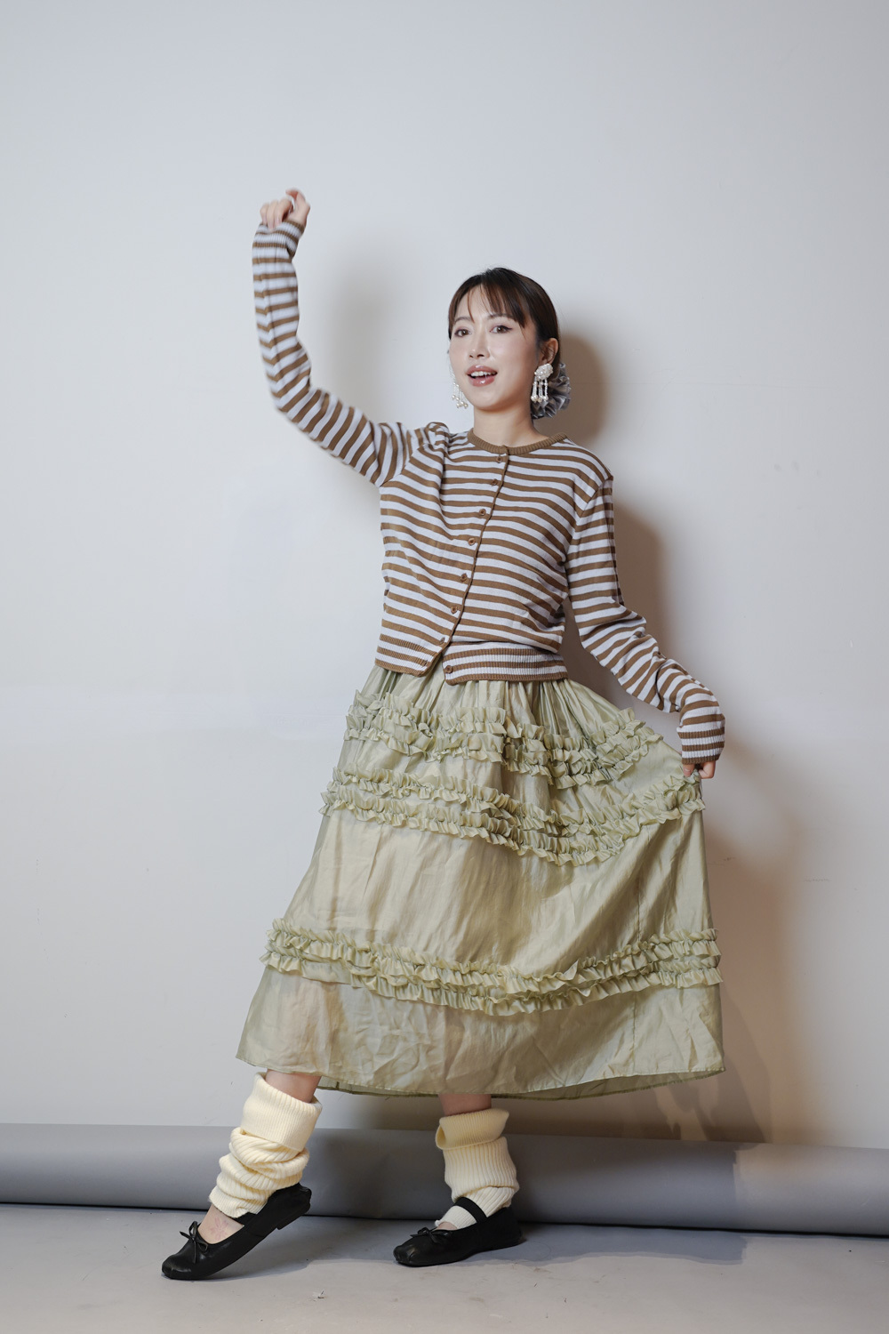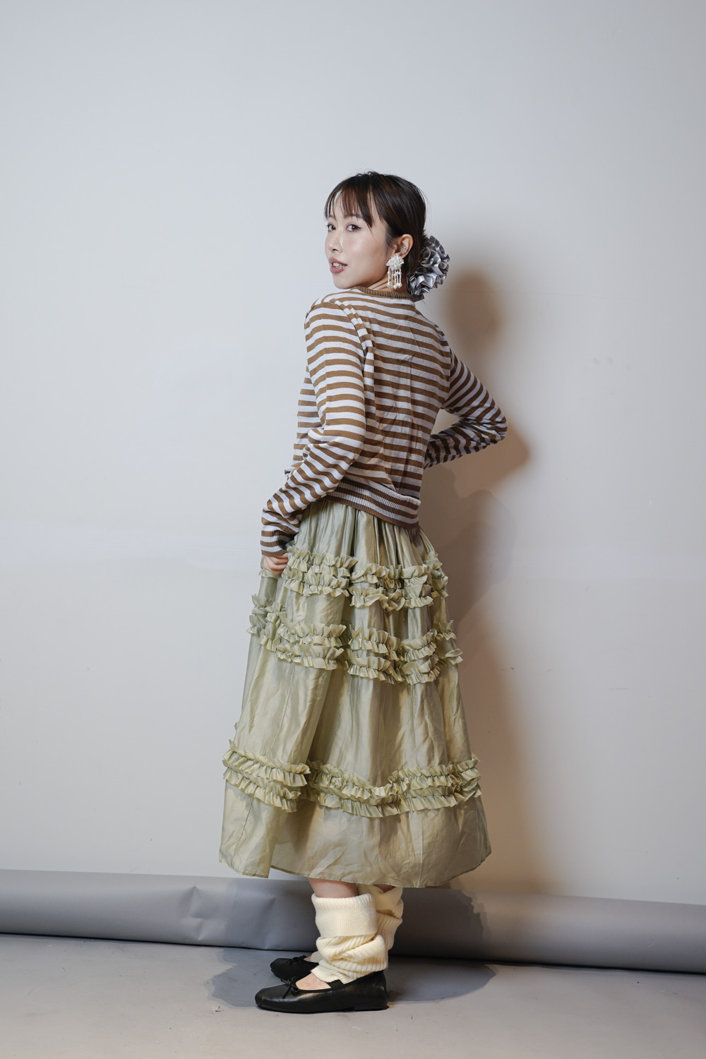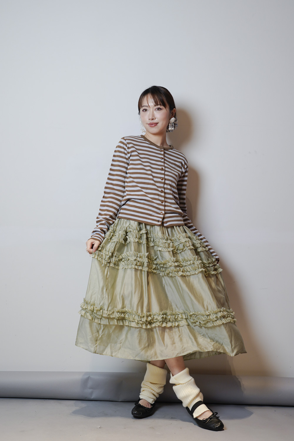 pearly ruffle Mia dress (WHITE/ GREEN)