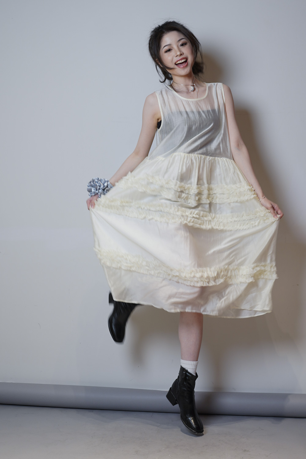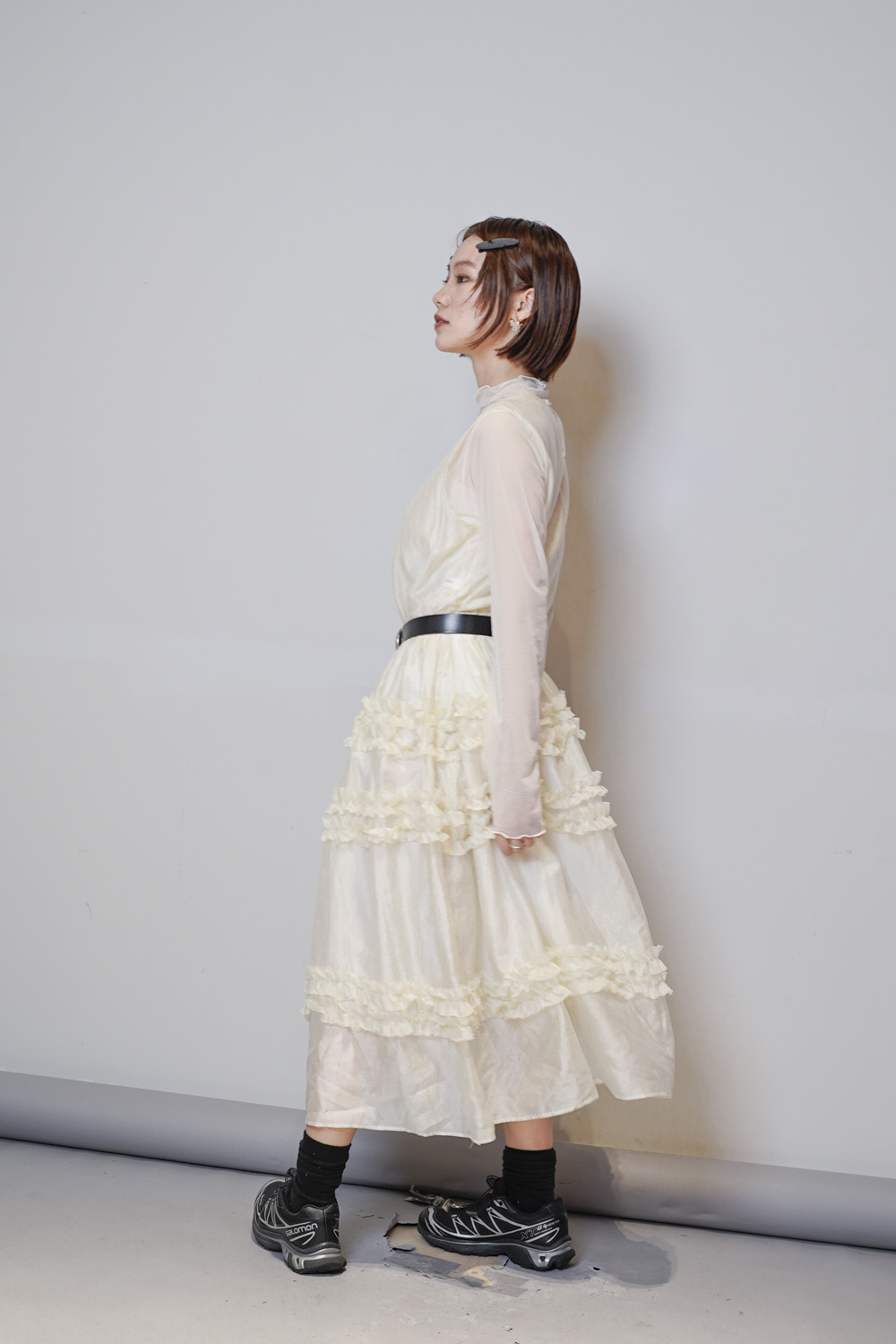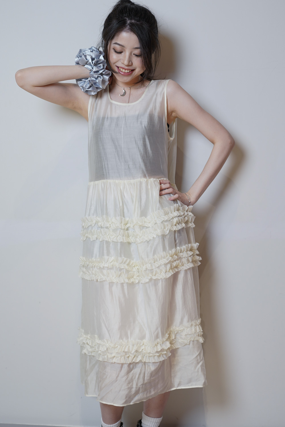 pearly ruffle Mia dress (WHITE/ SPRING)