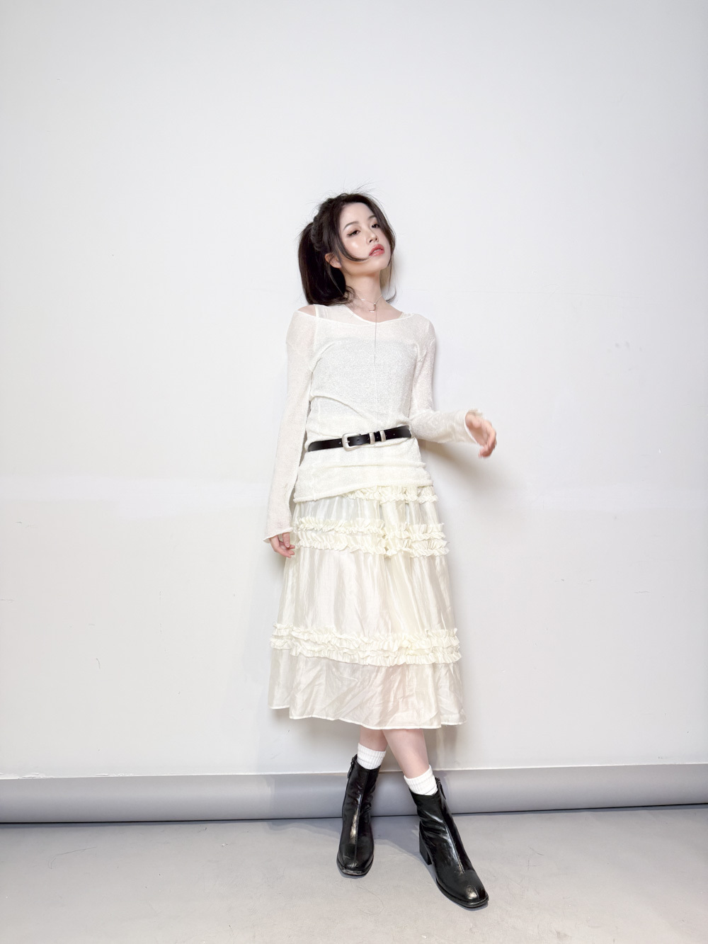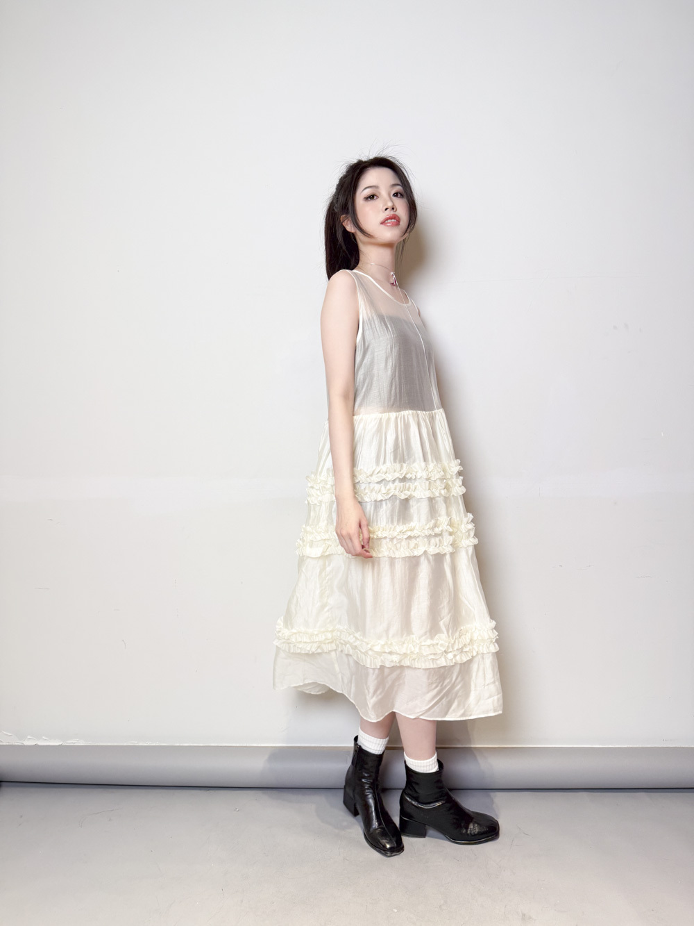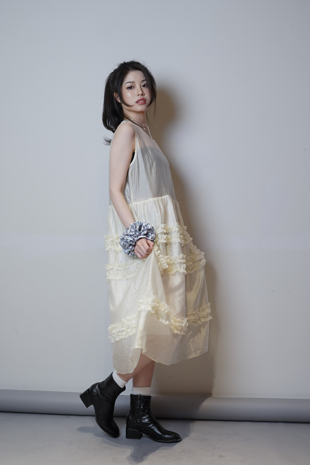 pearly ruffle Mia dress (WHITE/ SPRING)