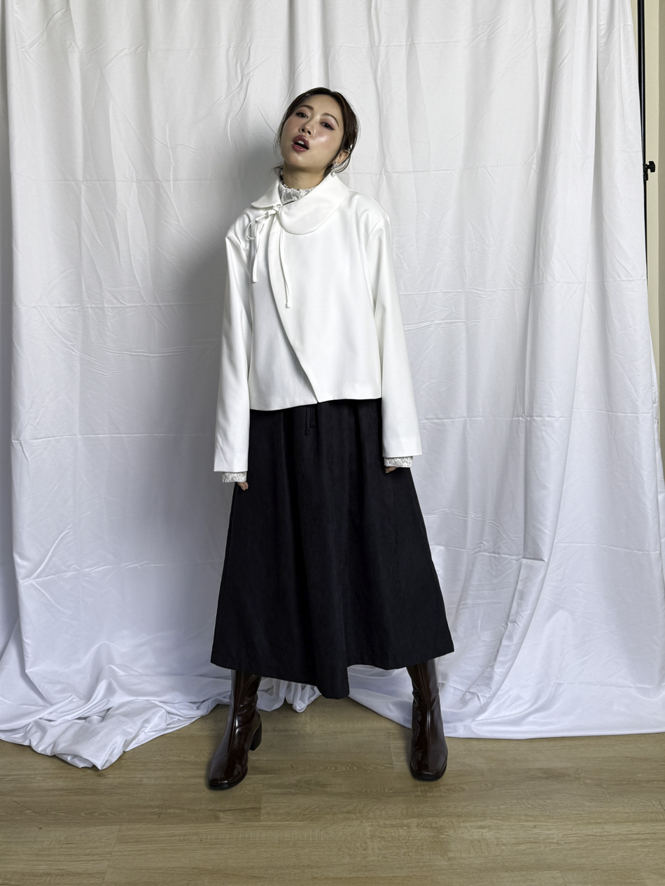 顯腰線/A字傘型裙擺/修飾胯寬/知性/文藝感/