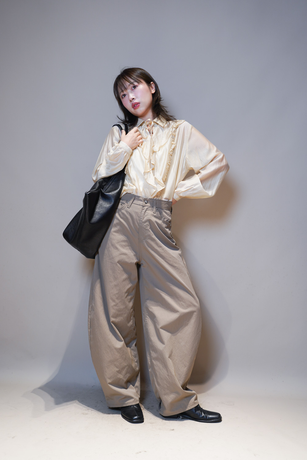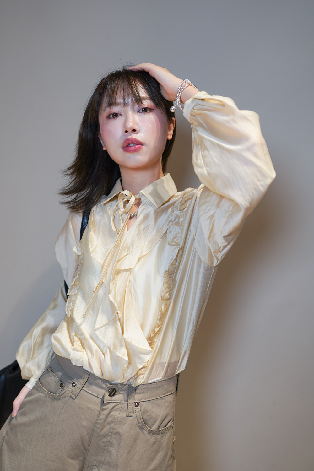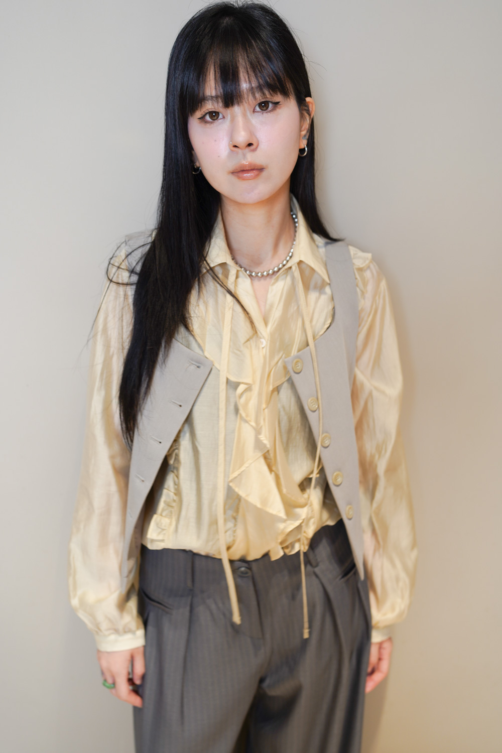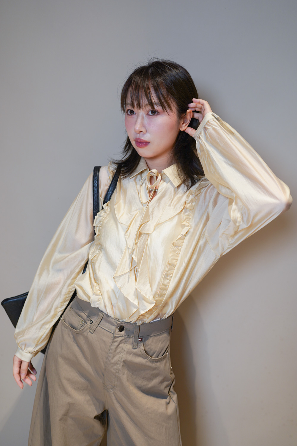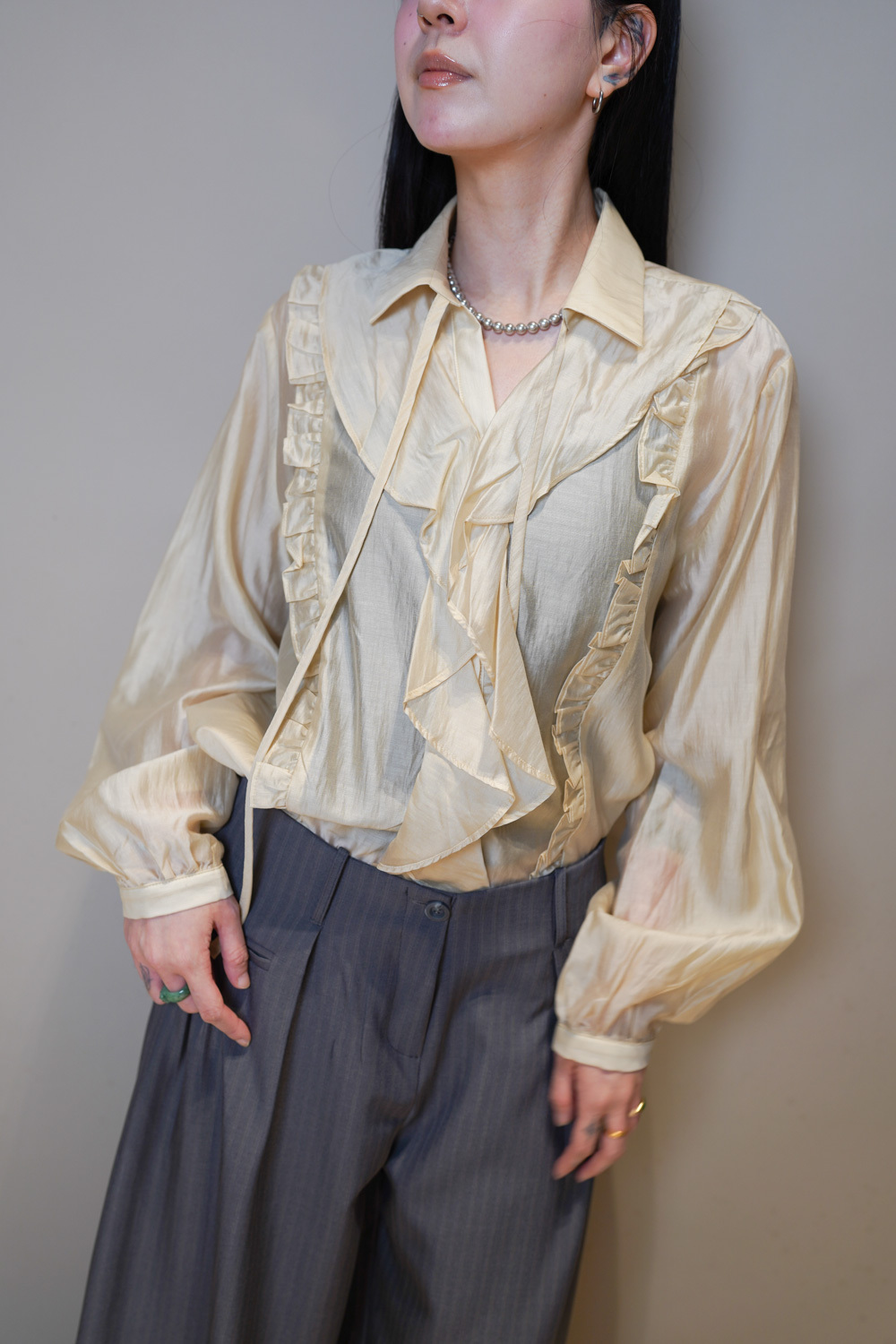 Love~ Regal Glow ruffle blouse (WHITE/BEIGE)