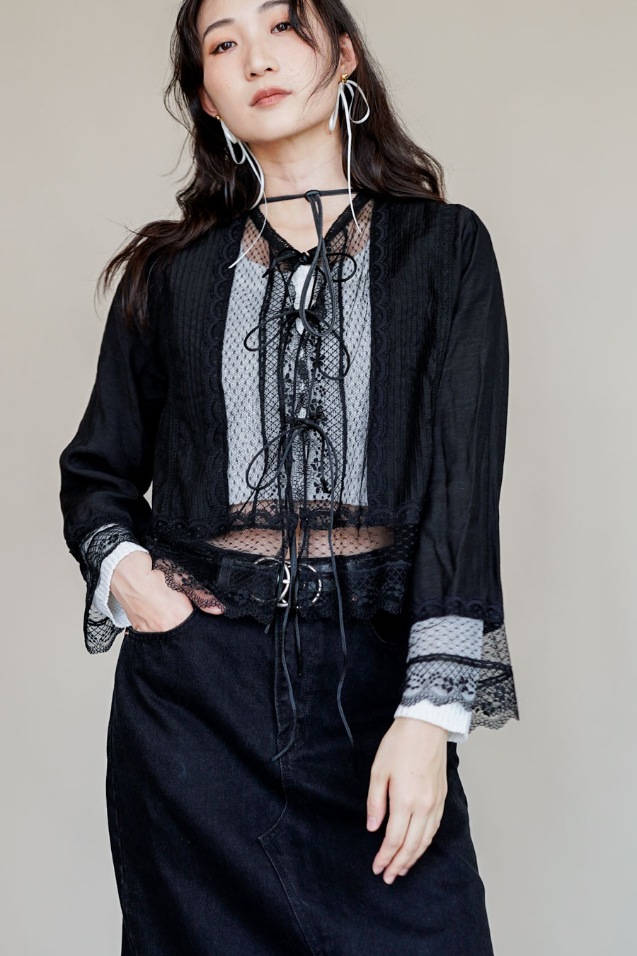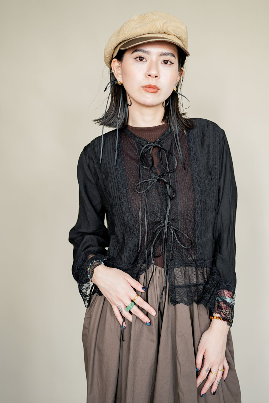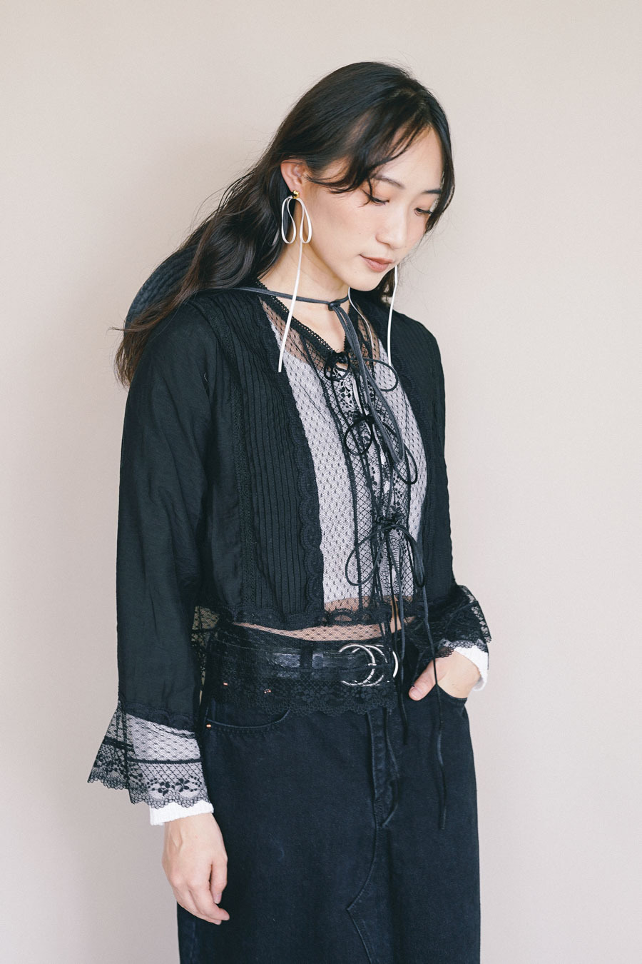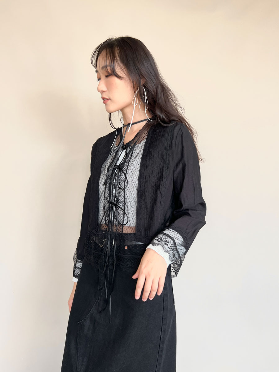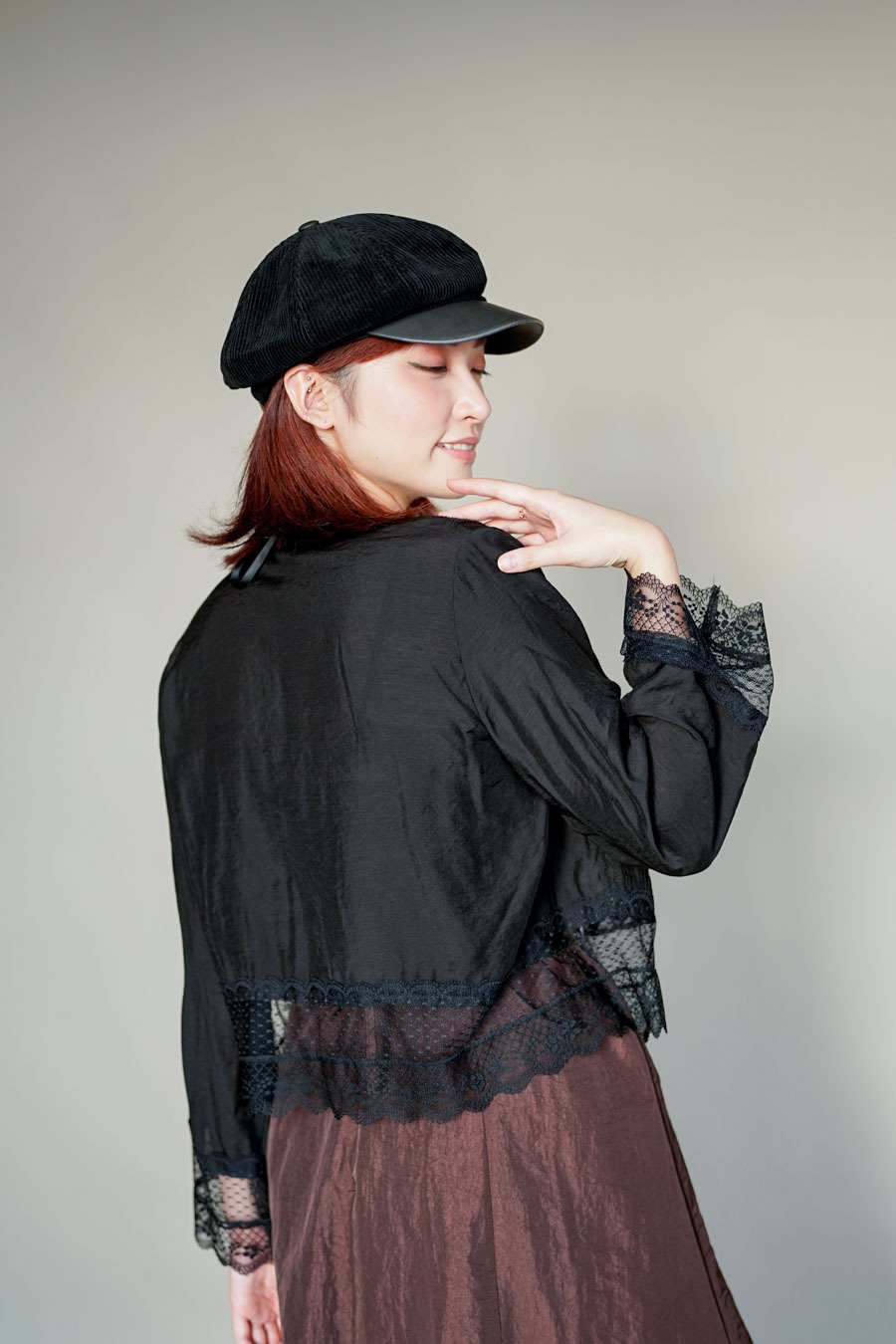 質地絲滑不刺膚/ 優雅Lace於袖口 鈕扣位點晴 有造型感但不誇張/