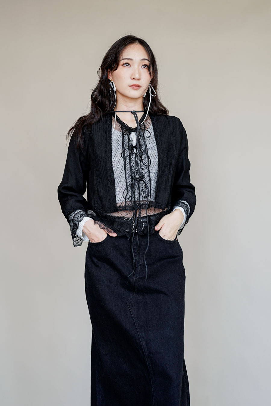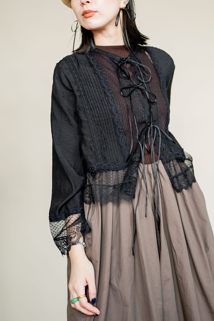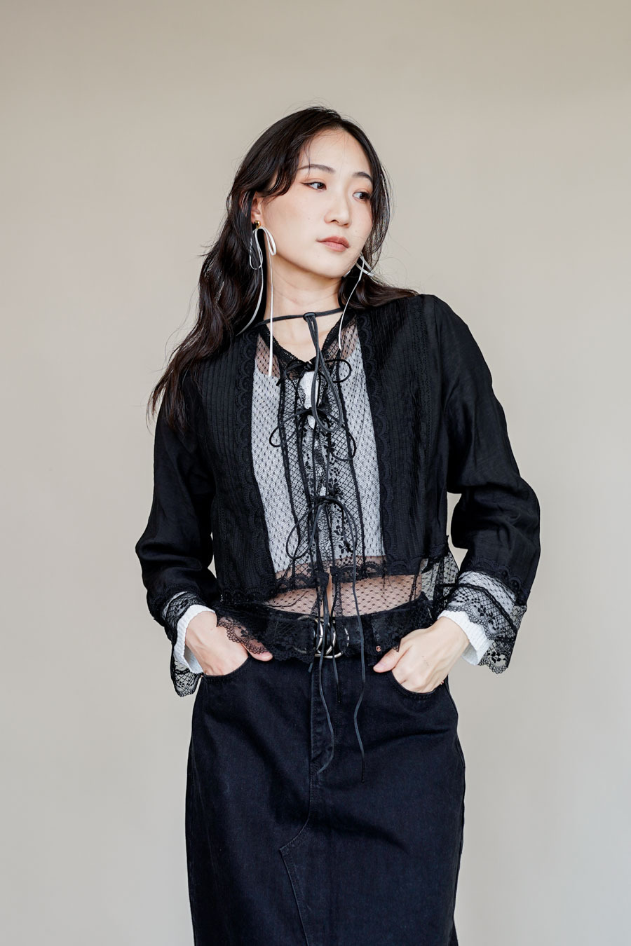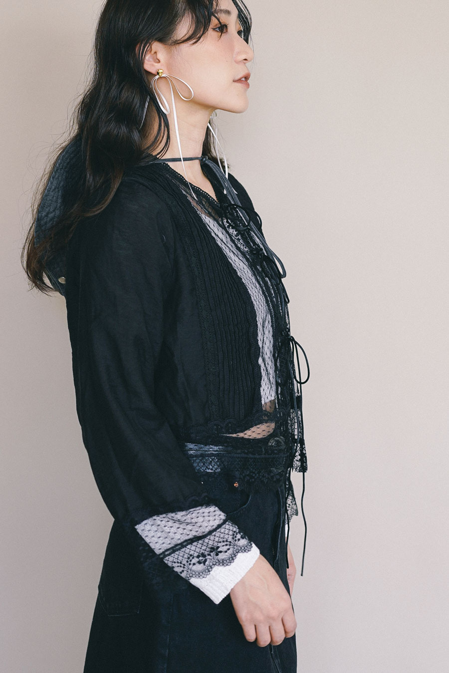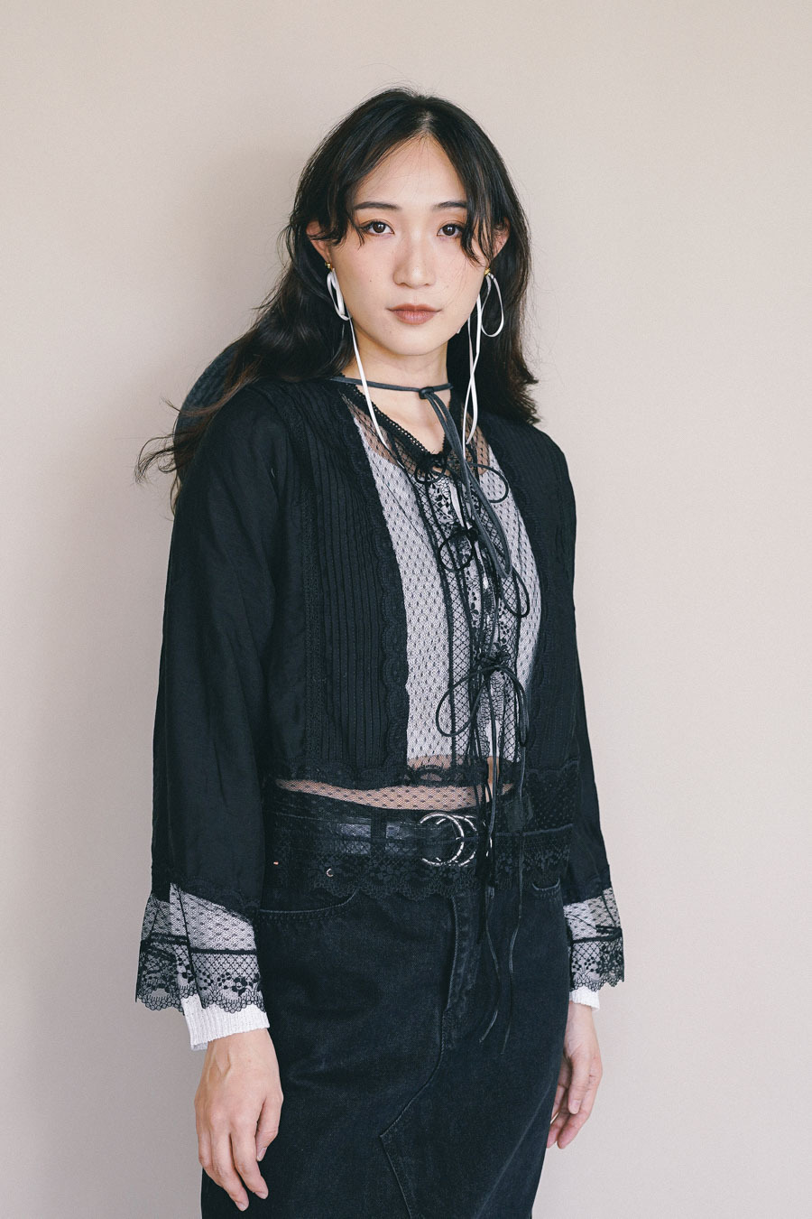 質地絲滑不刺膚/ 優雅Lace於袖口 鈕扣位點晴 有造型感但不誇張/