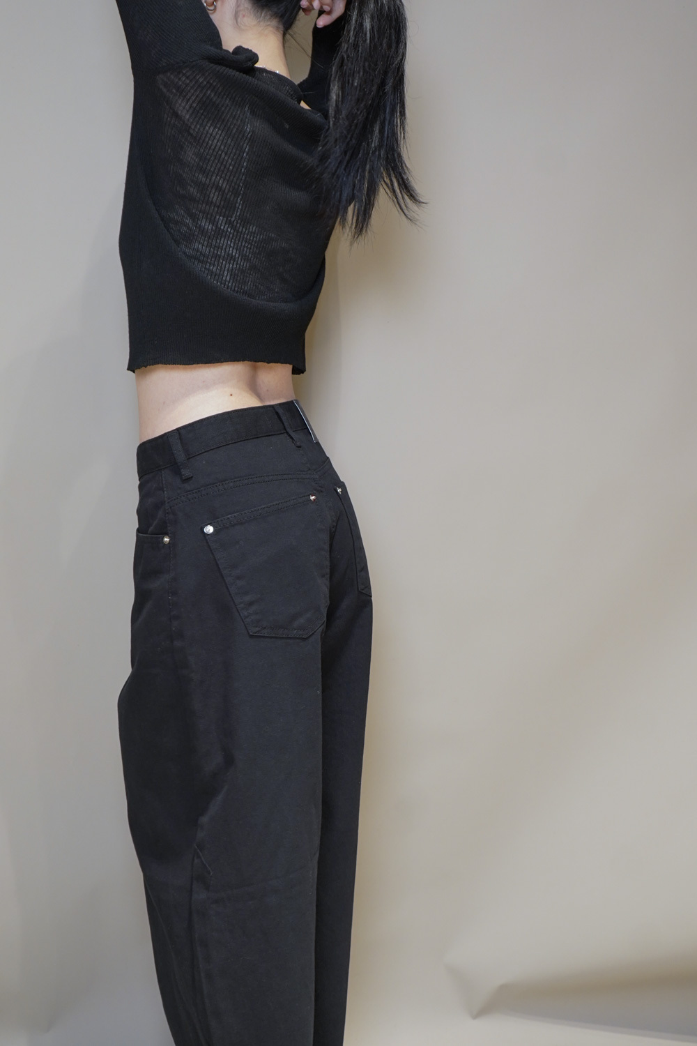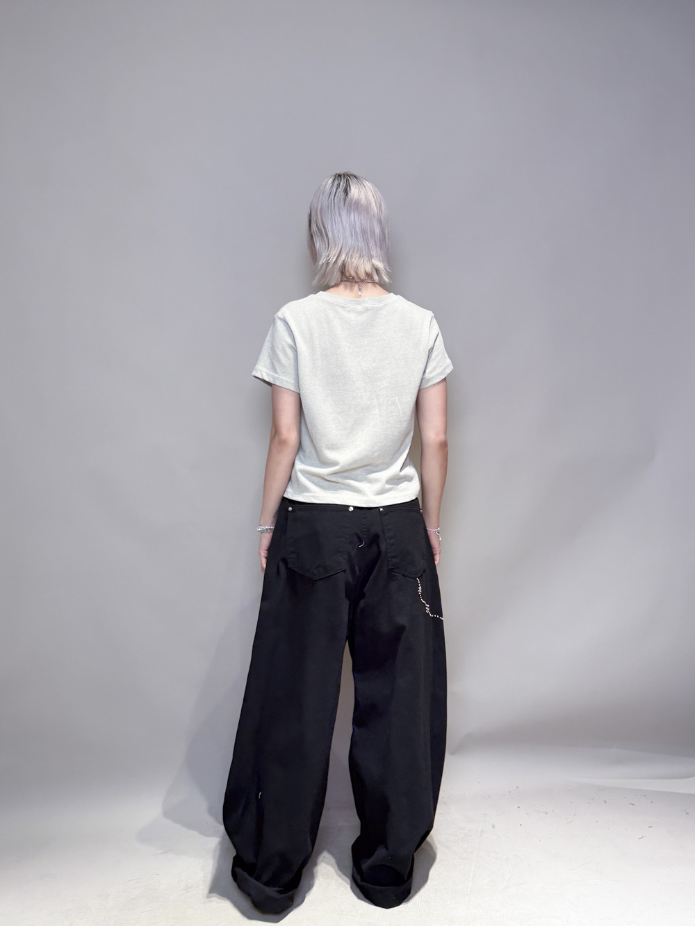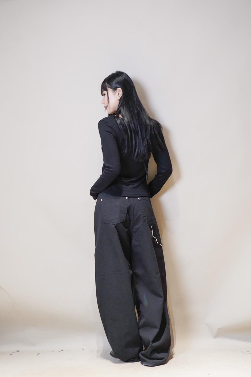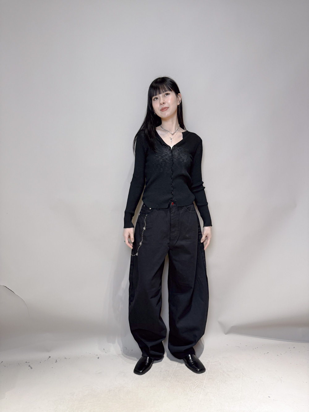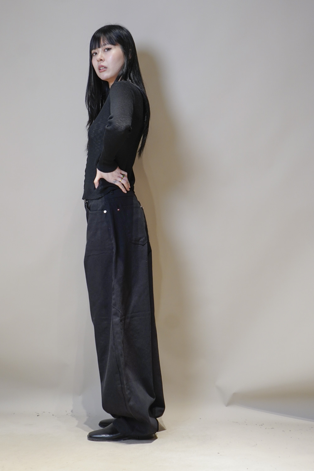 M: Waist: 75cm (29.5”) / Hip: 120cm (47”) / Rise: 37cm / Length: 111cm / Thigh: 74cm / Hem: 48cm