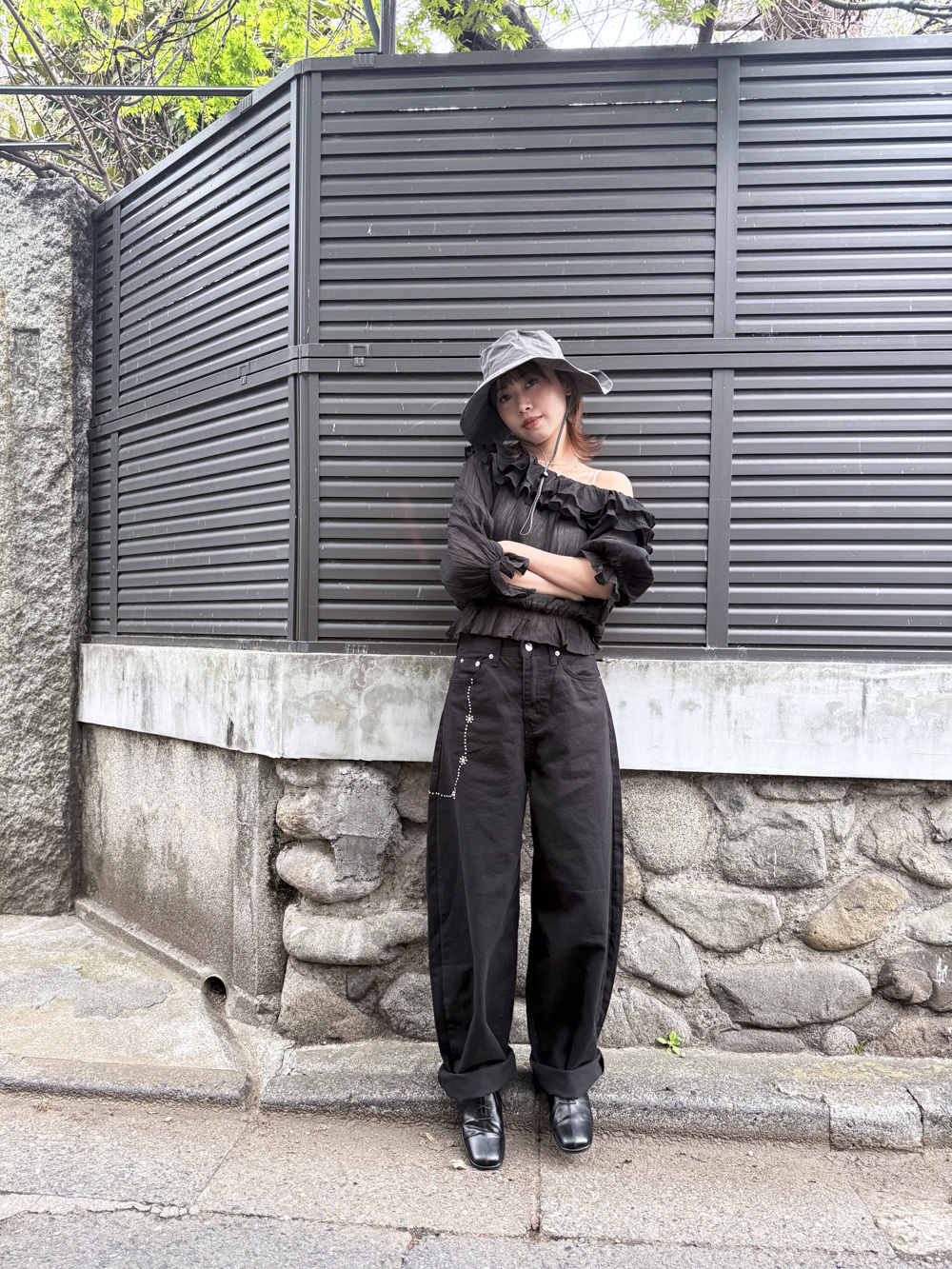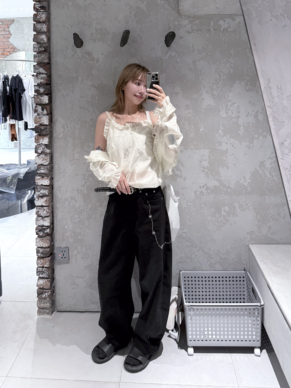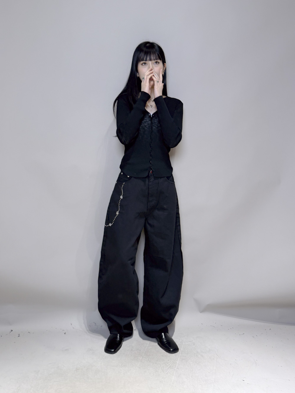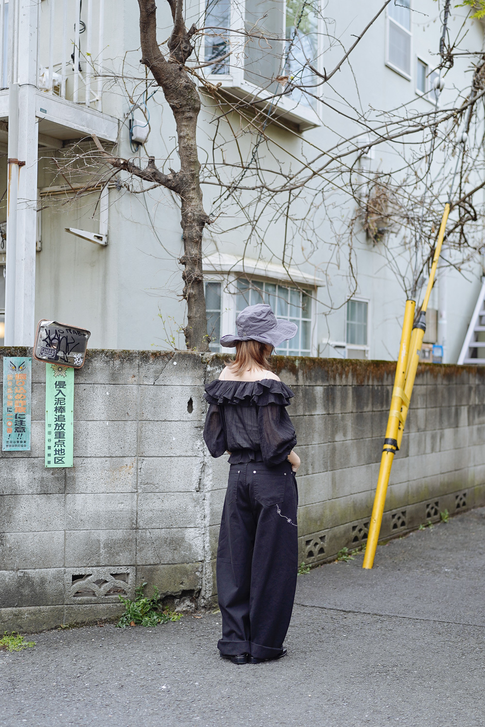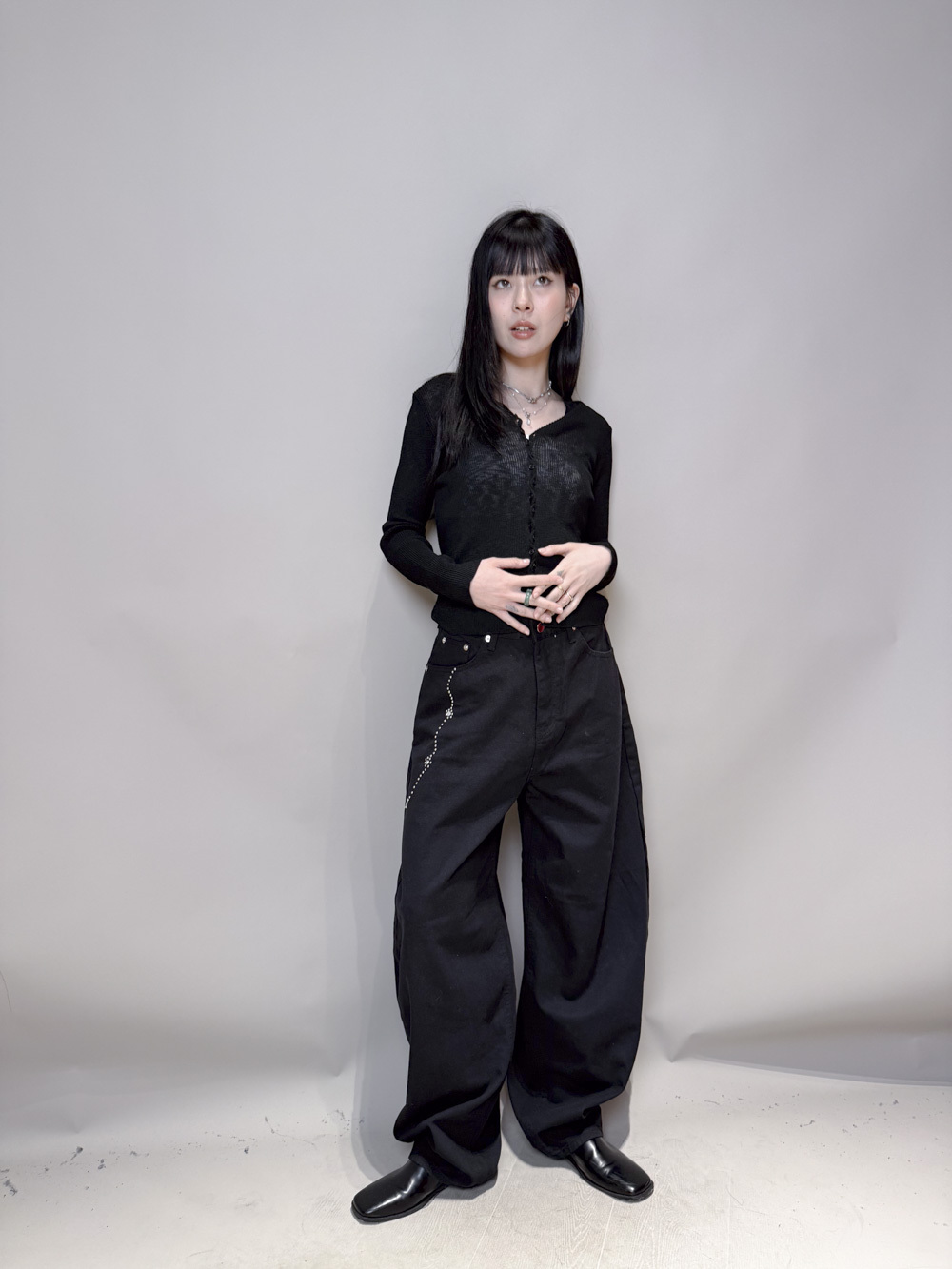 M: Waist: 75cm (29.5”) / Hip: 120cm (47”) / Rise: 37cm / Length: 111cm / Thigh: 74cm / Hem: 48cm