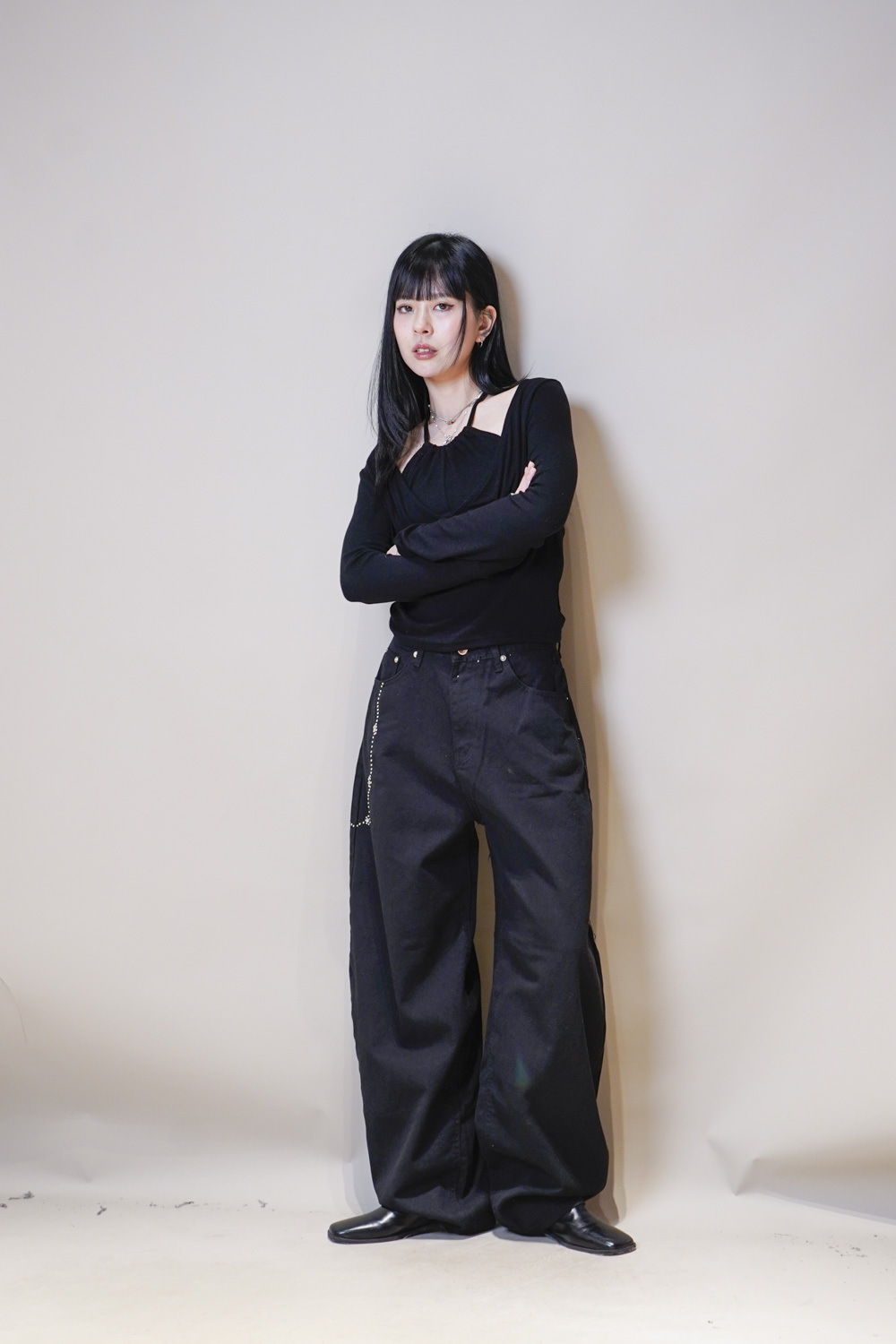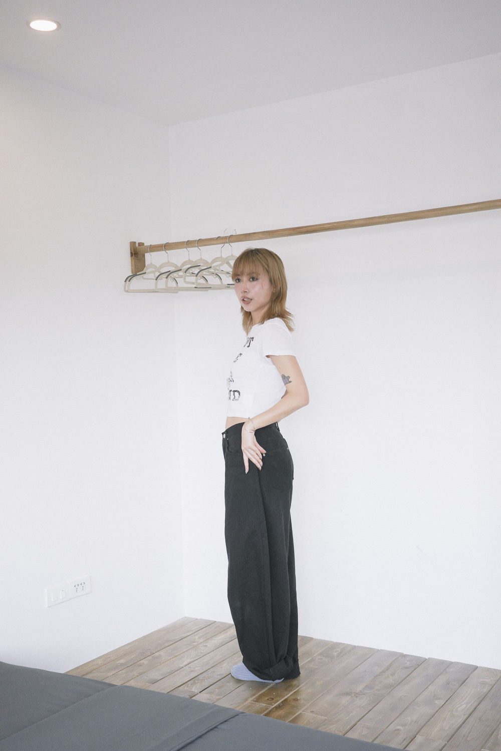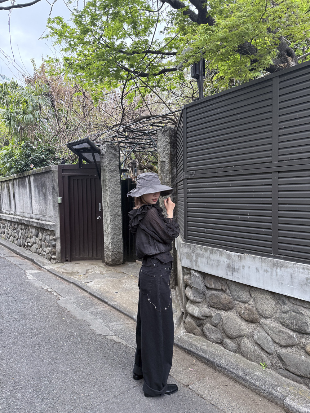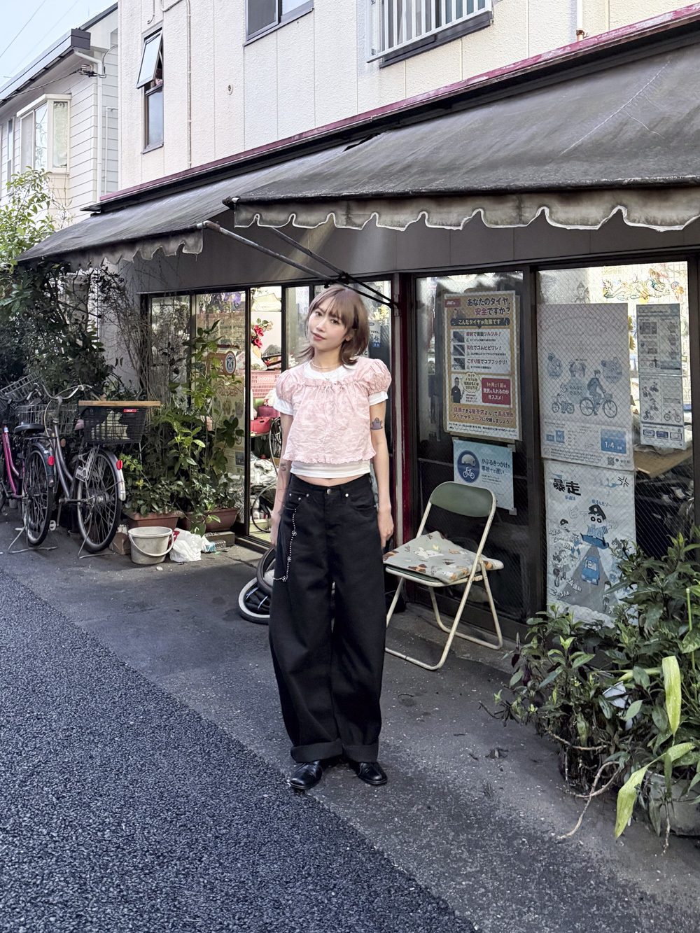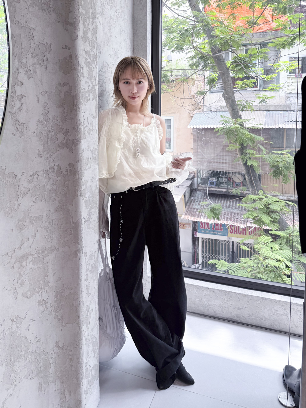 M: Waist: 75cm (29.5”) / Hip: 120cm (47”) / Rise: 37cm / Length: 111cm / Thigh: 74cm / Hem: 48cm