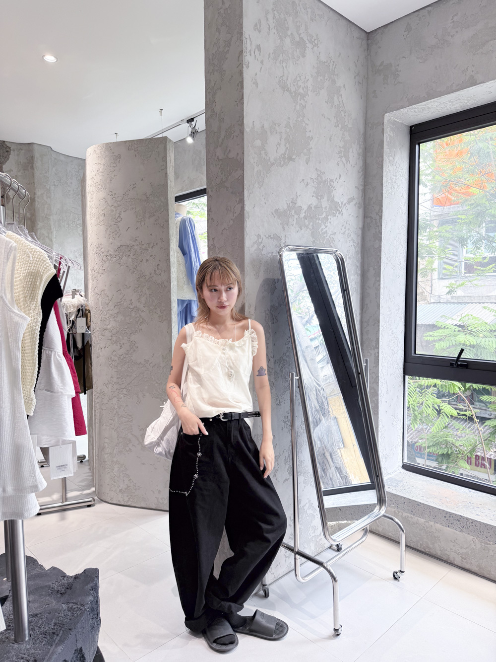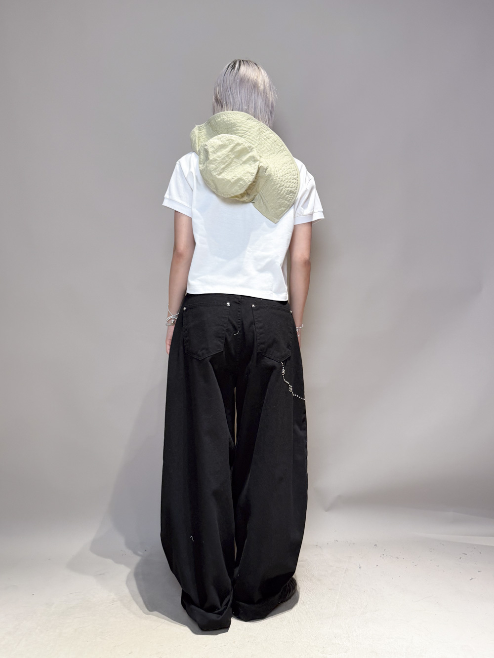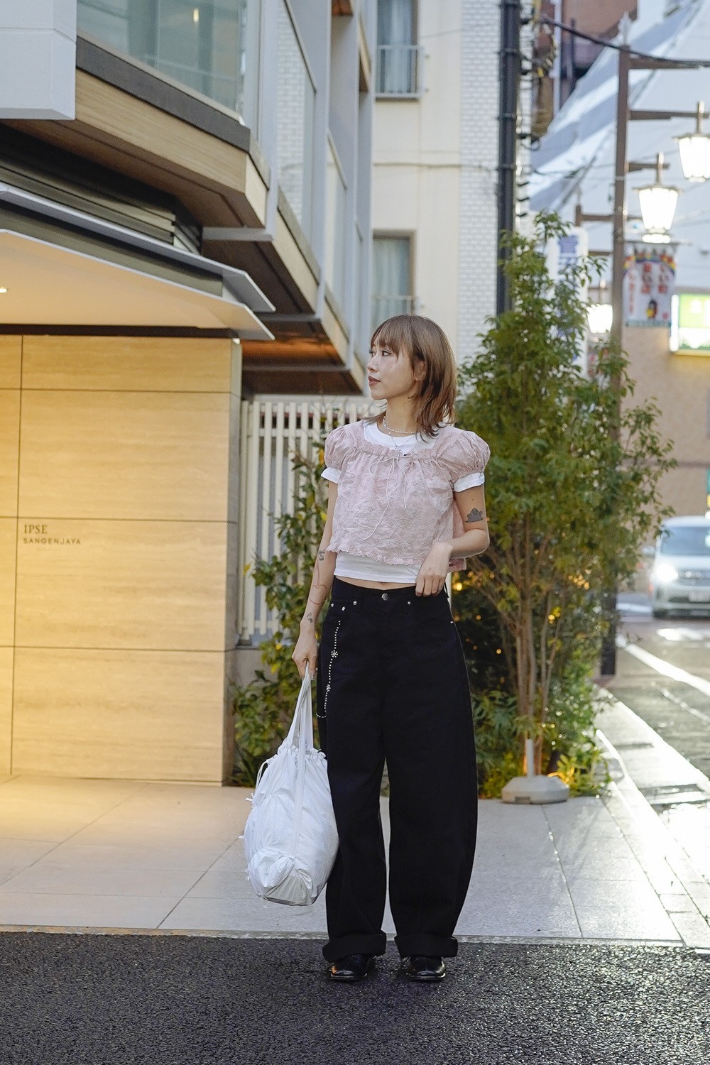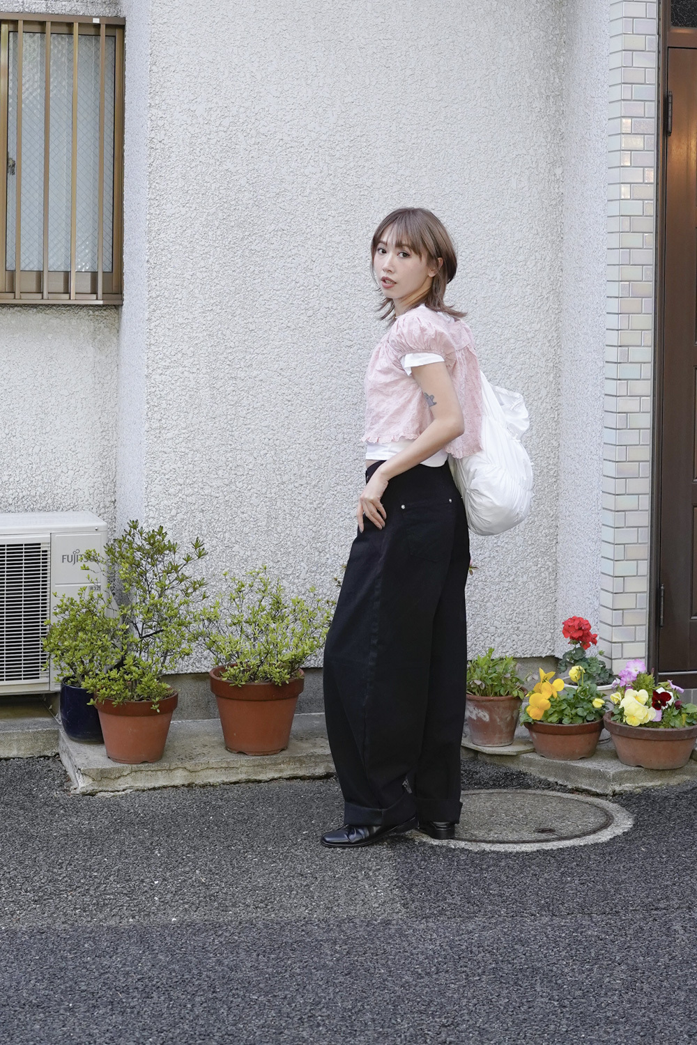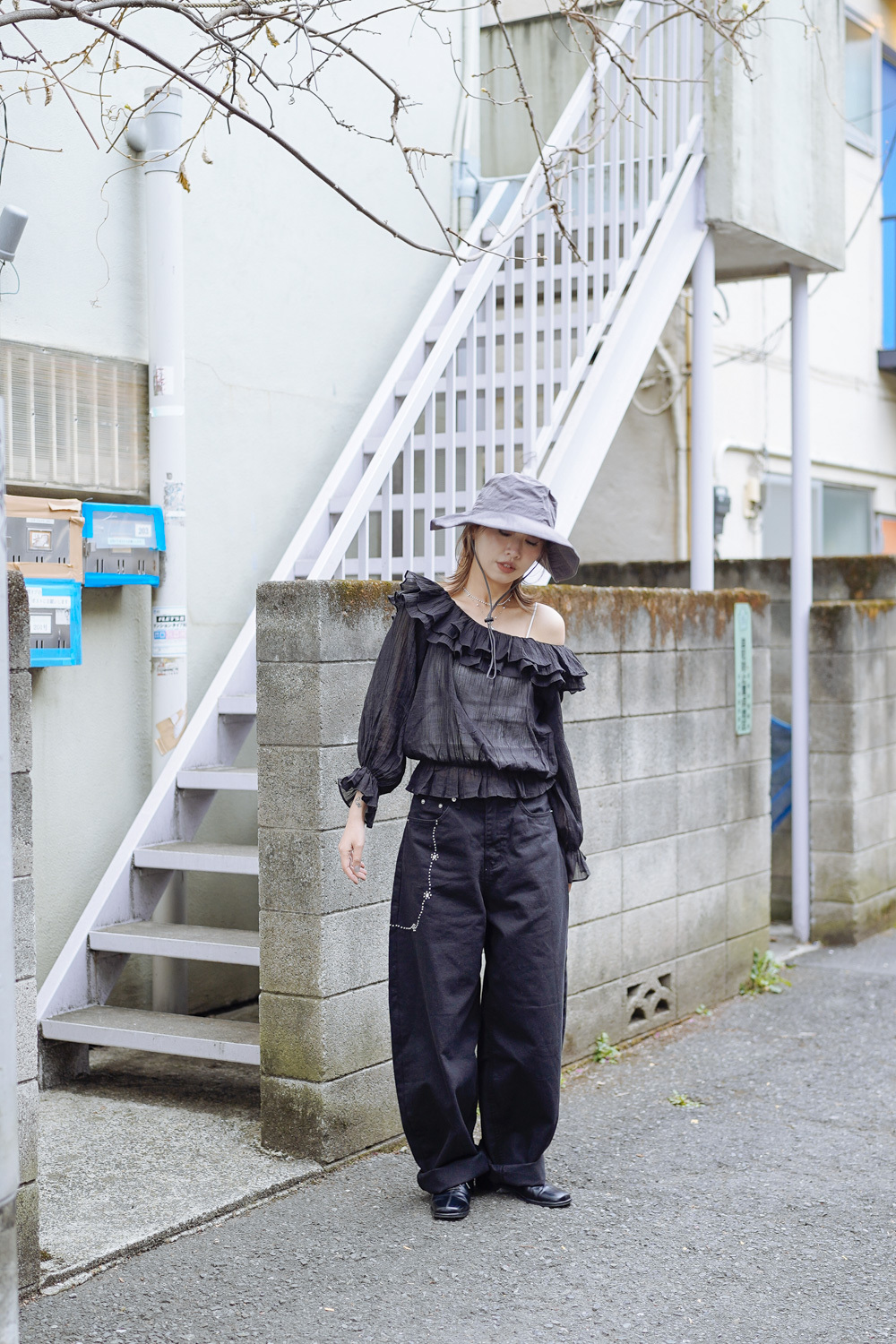 M: Waist: 75cm (29.5”) / Hip: 120cm (47”) / Rise: 37cm / Length: 111cm / Thigh: 74cm / Hem: 48cm