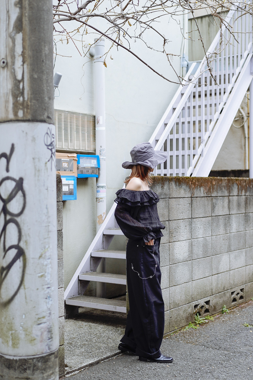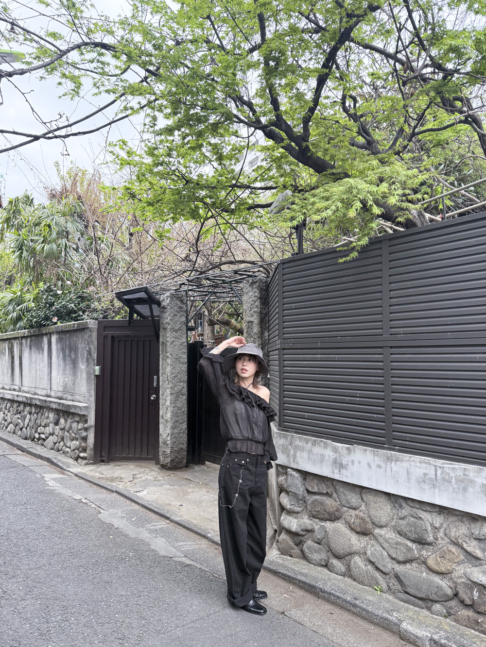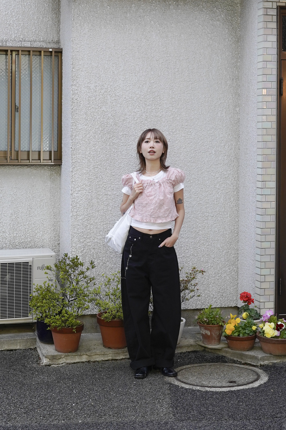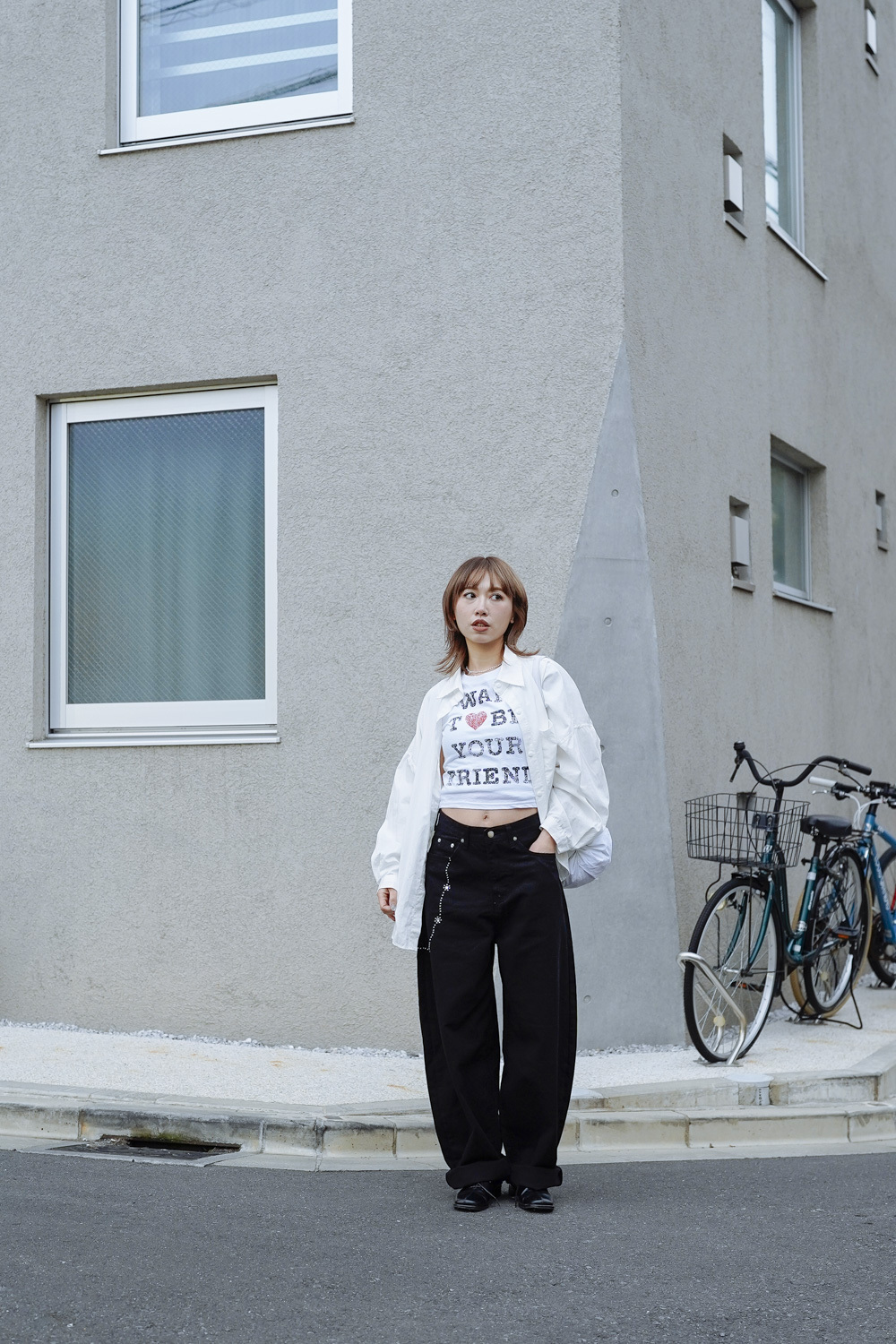 M: Waist: 75cm (29.5”) / Hip: 120cm (47”) / Rise: 37cm / Length: 111cm / Thigh: 74cm / Hem: 48cm