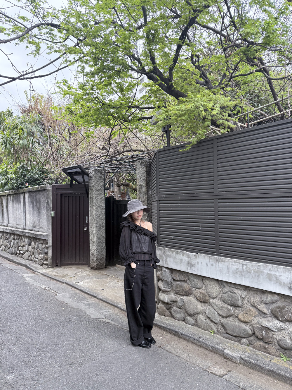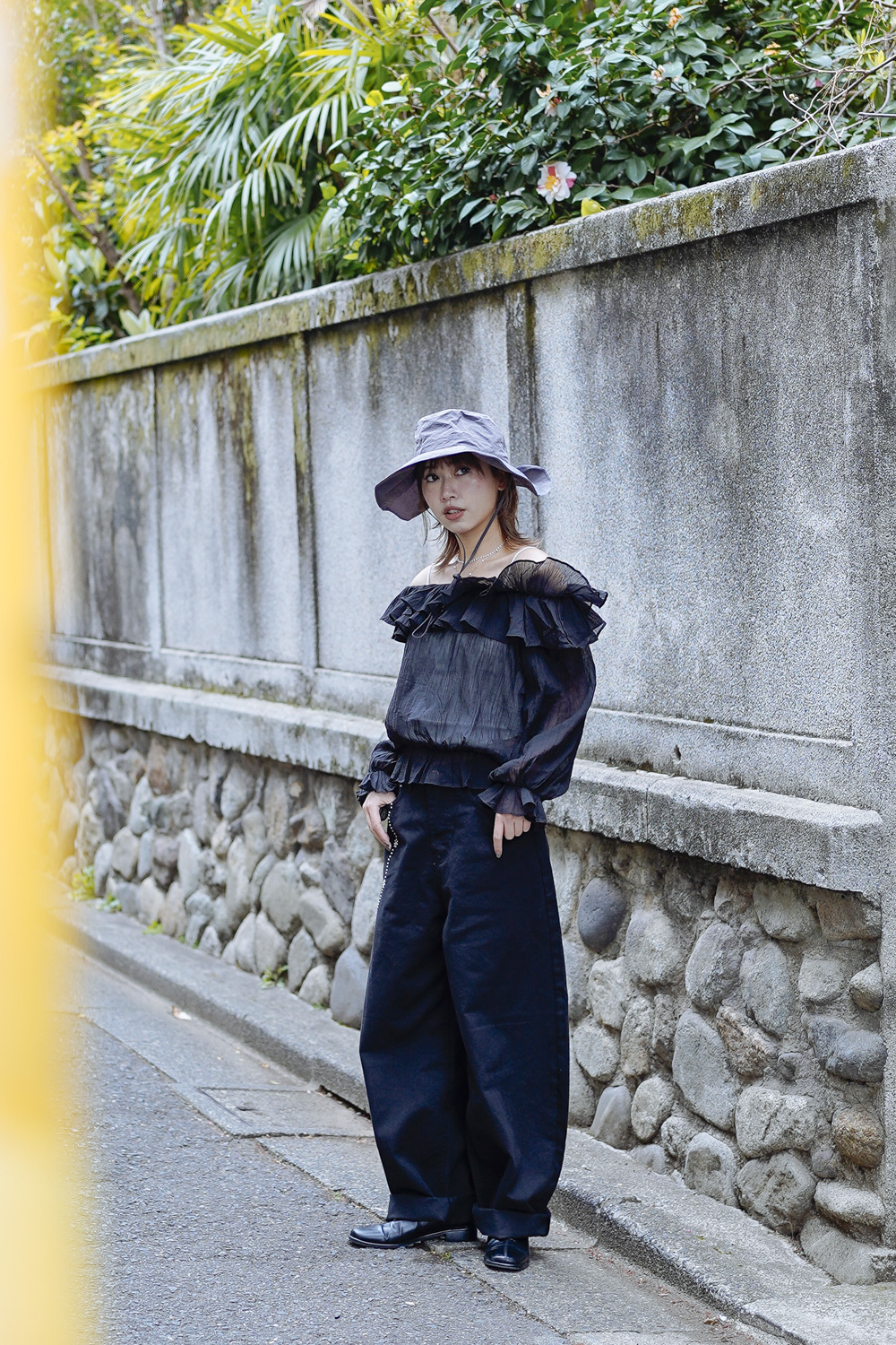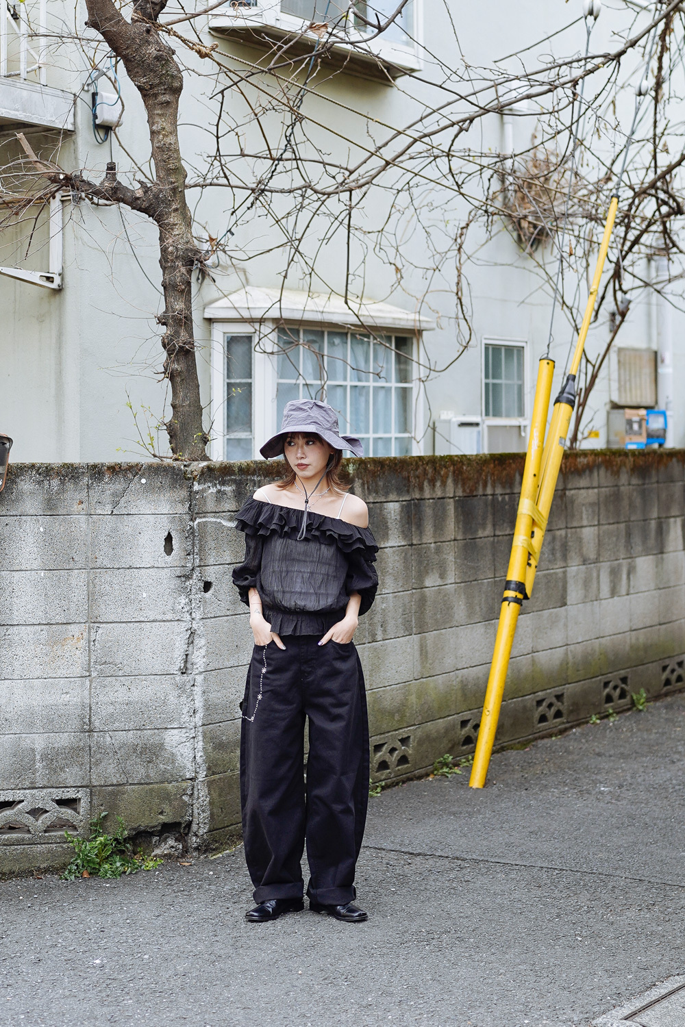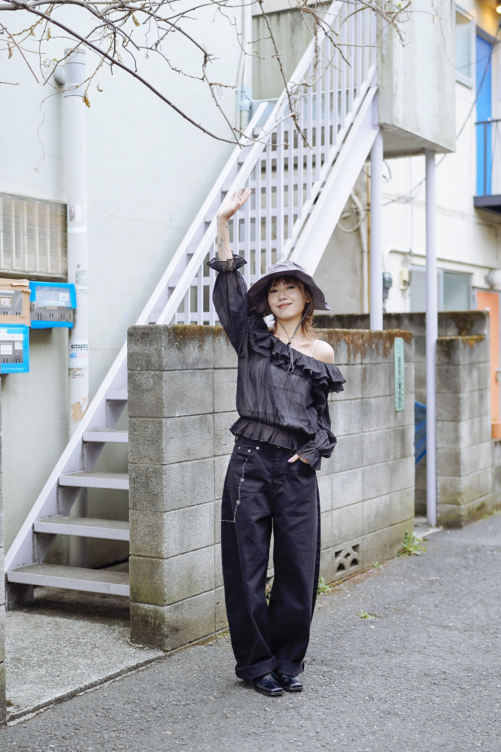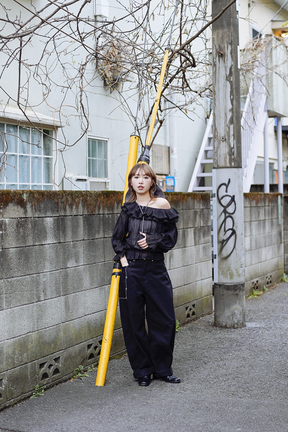 M: Waist: 75cm (29.5”) / Hip: 120cm (47”) / Rise: 37cm / Length: 111cm / Thigh: 74cm / Hem: 48cm